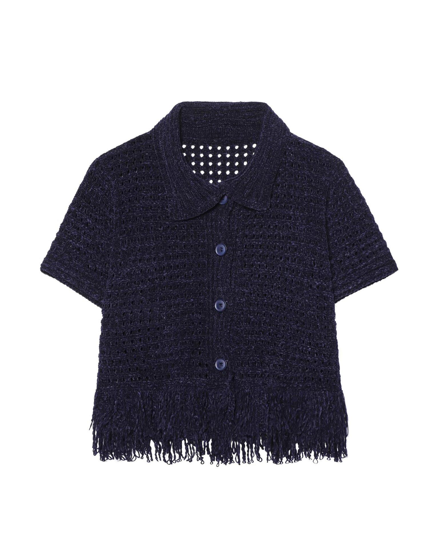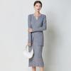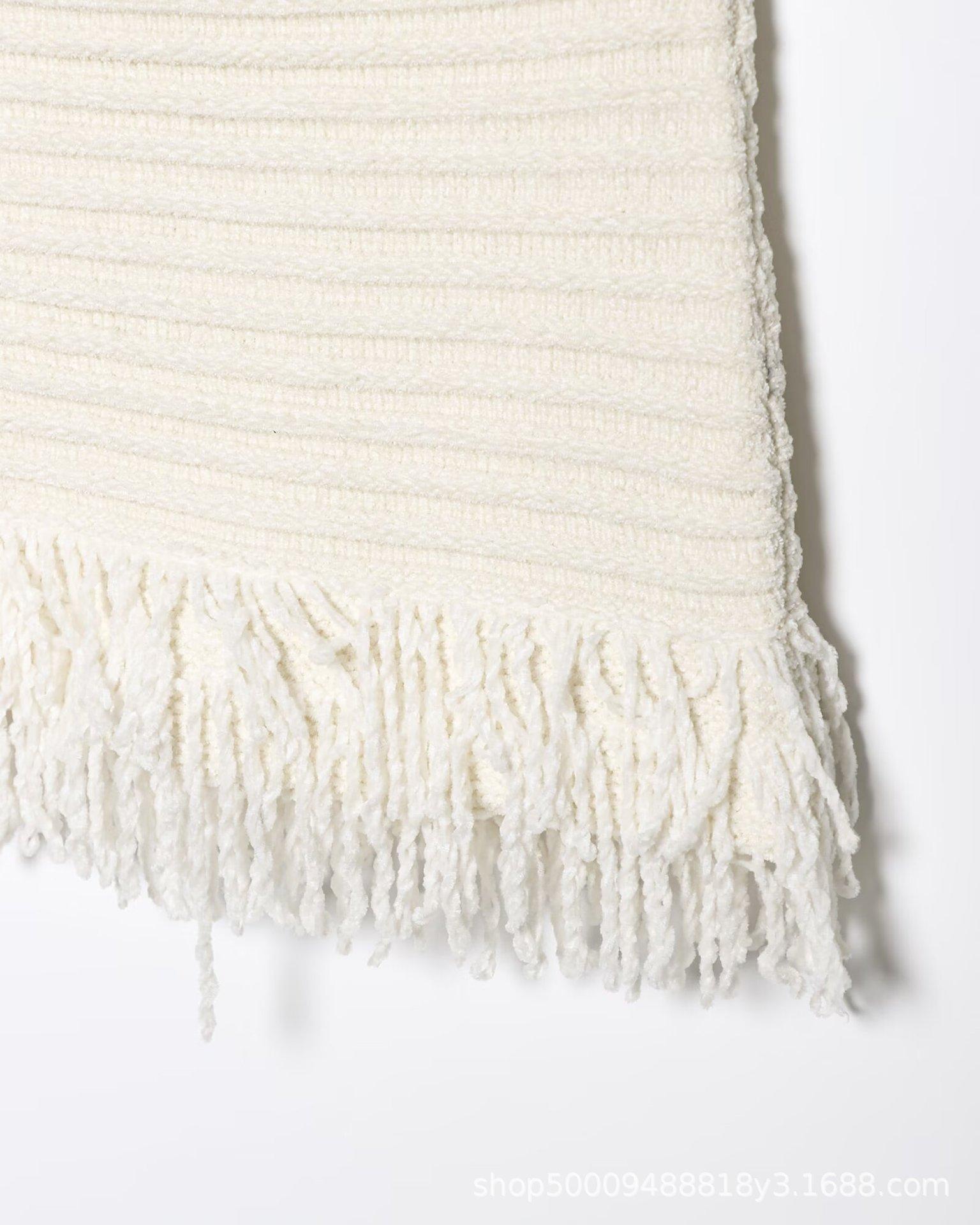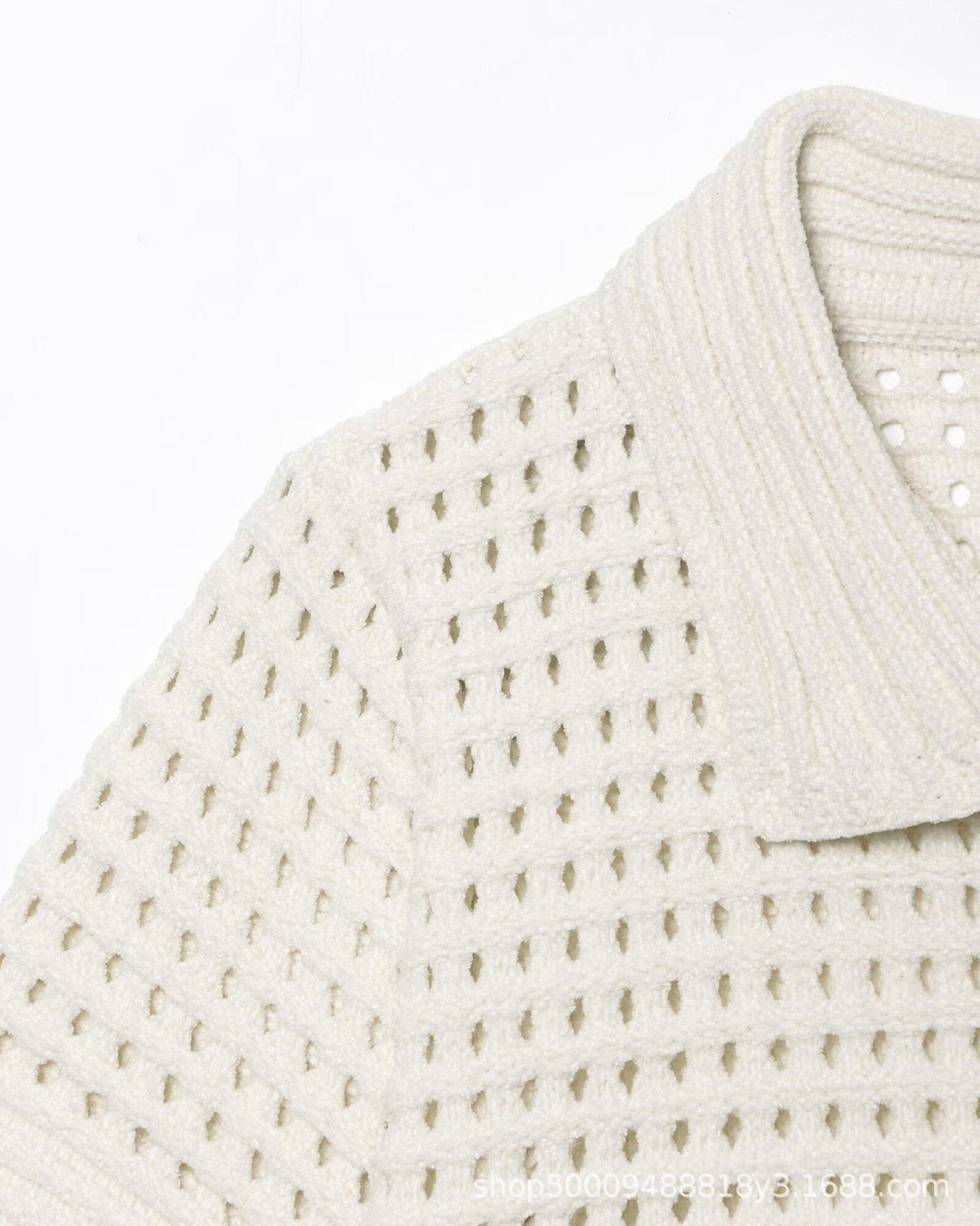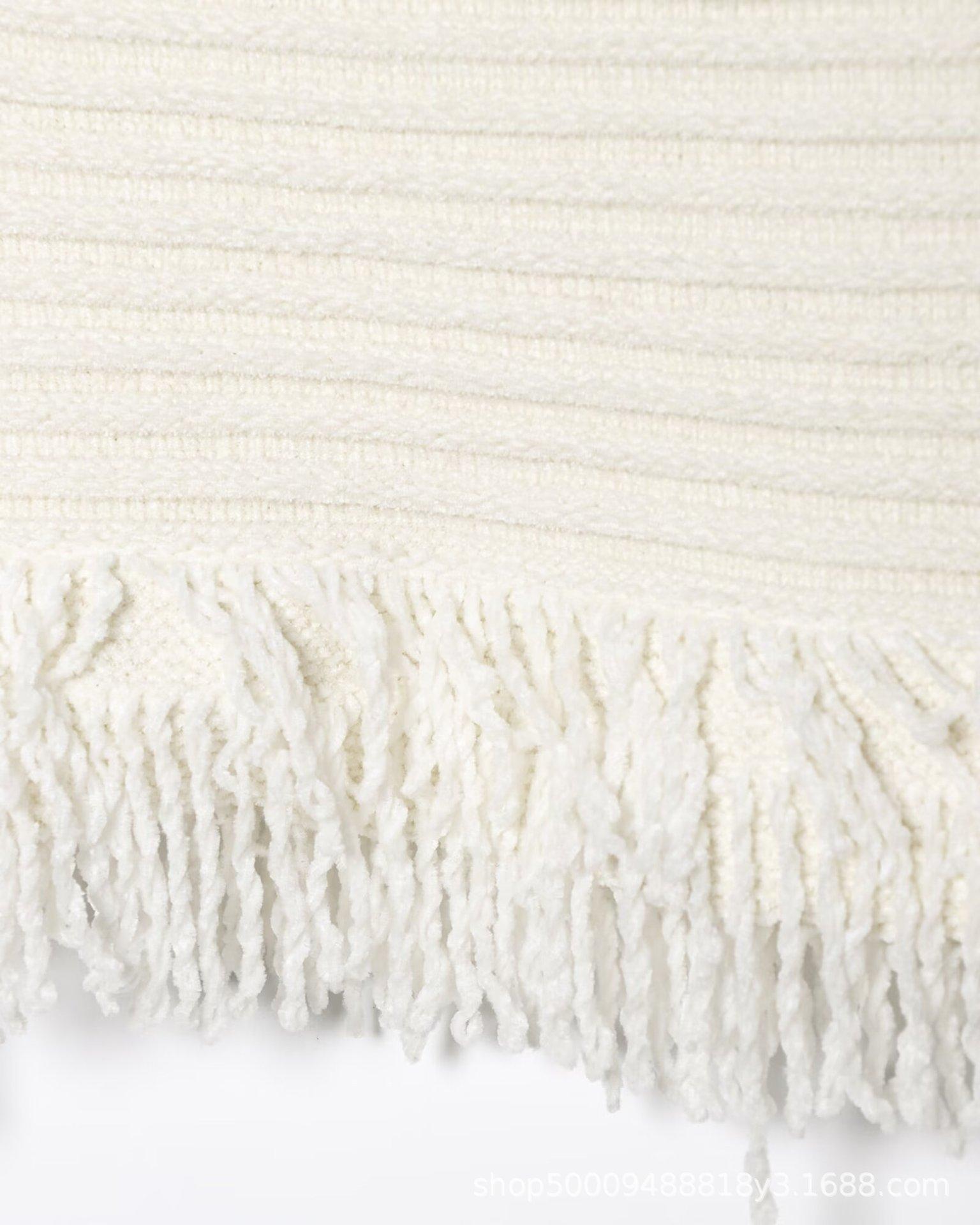 Comercio Exterior Mujeres Primavera y Verano Estilo Europeo y Americano Chaqueta Tejida de Solapa de Manga Corta Decorada con Flecos + Traje de Falda Tejida