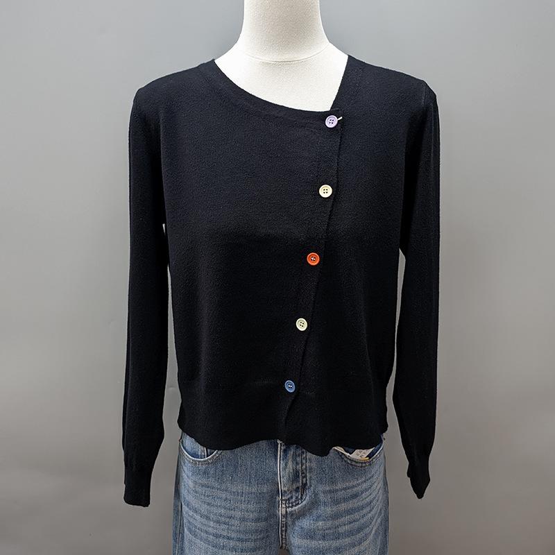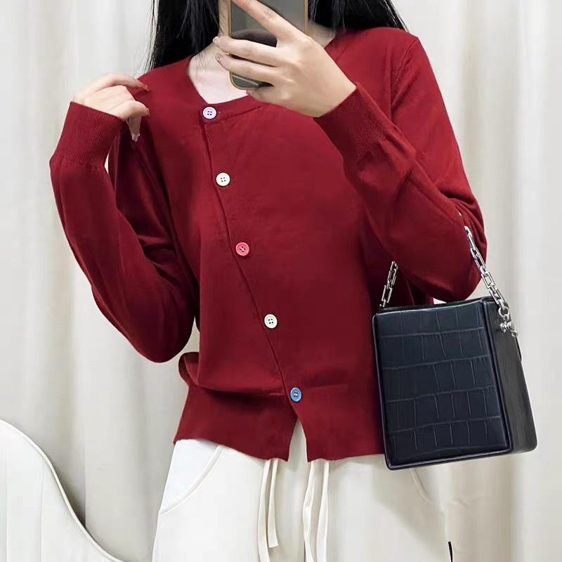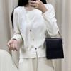 Suéter de Punto Andy de Terciopelo de Manga Larga Estilo Coreano para Primavera y Otoño para Mujer, Diseño Corto con Sentido, Cárdigan de Punto Irregular, Chaqueta Pequeña