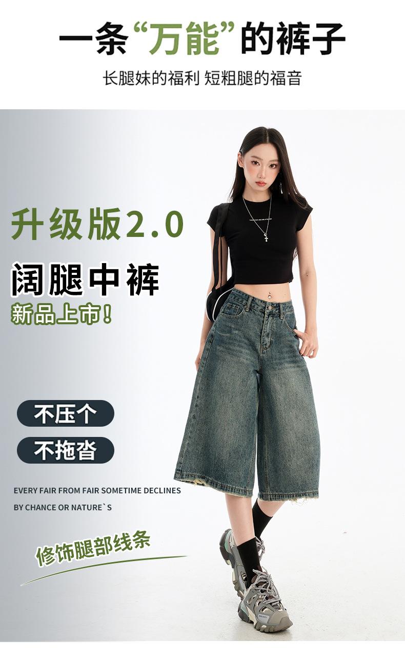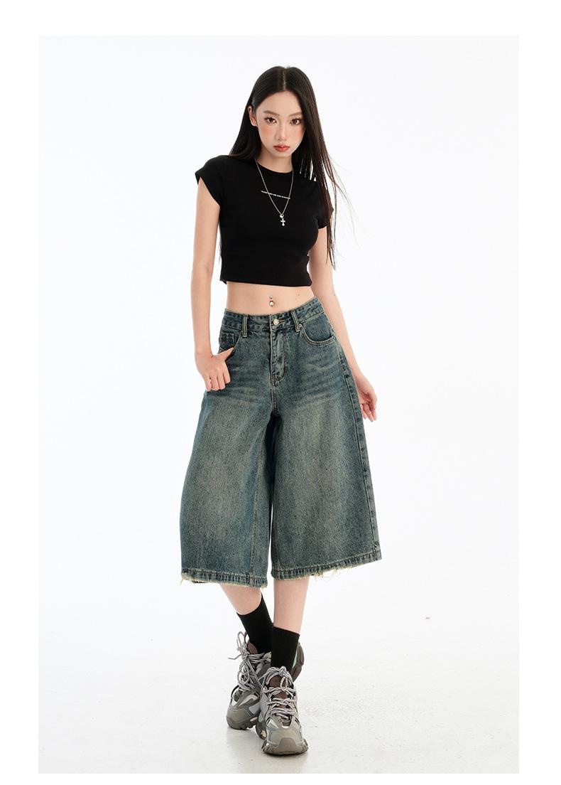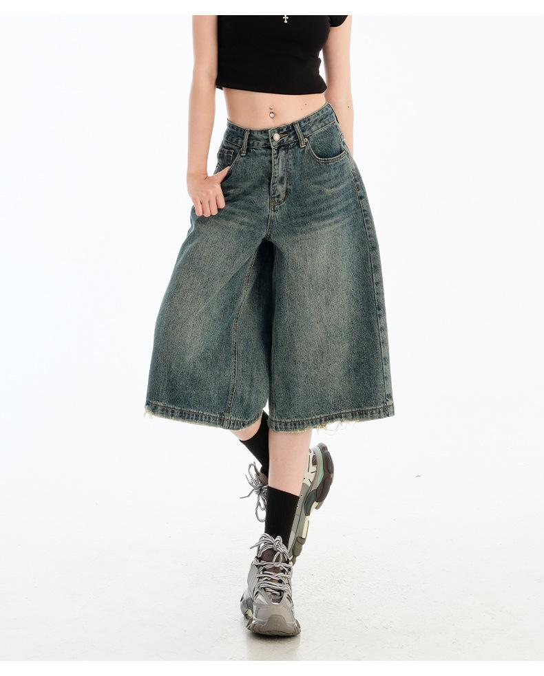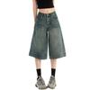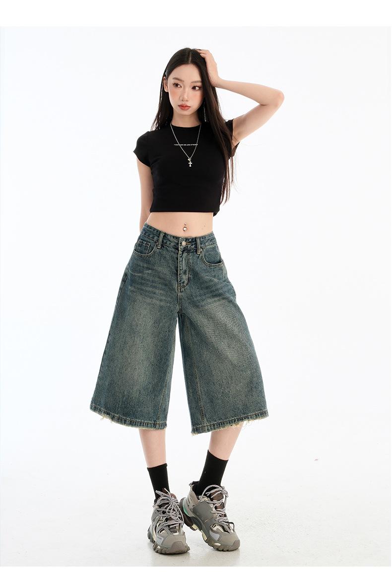 Jeans de Cinco Puntos de Pierna Ancha Primavera y Verano 2025 Nuevo Retro Lavado Drapeado Suelto Recto Mezclilla Pantalones Medios Shorts de Mujer