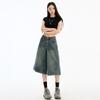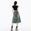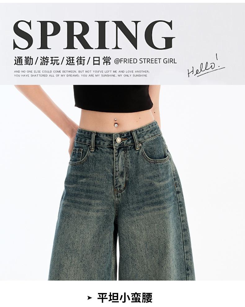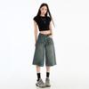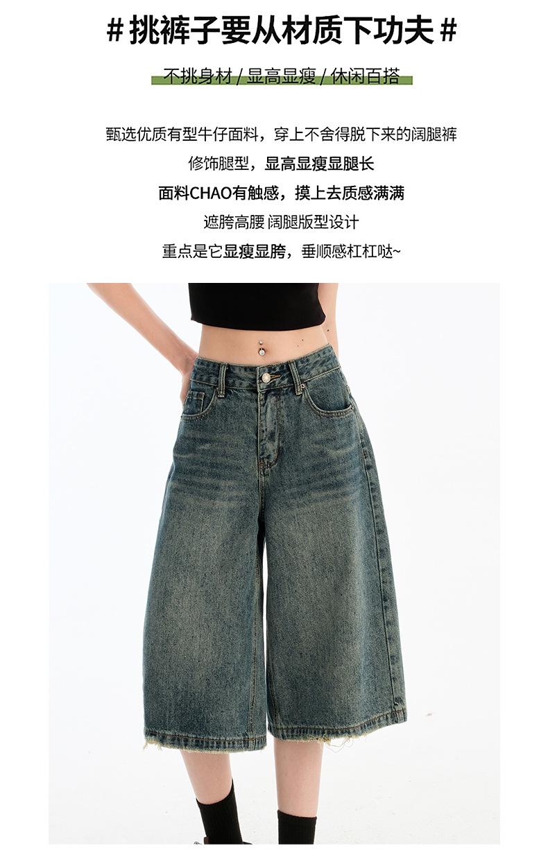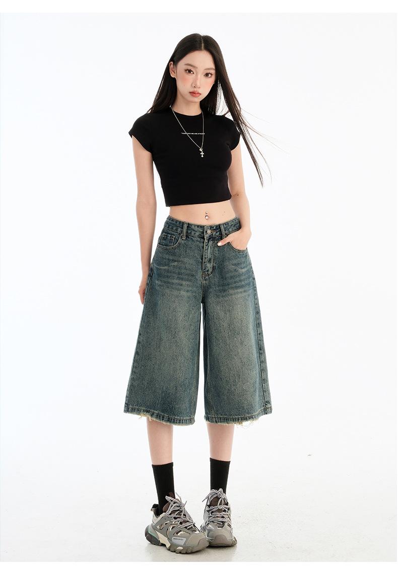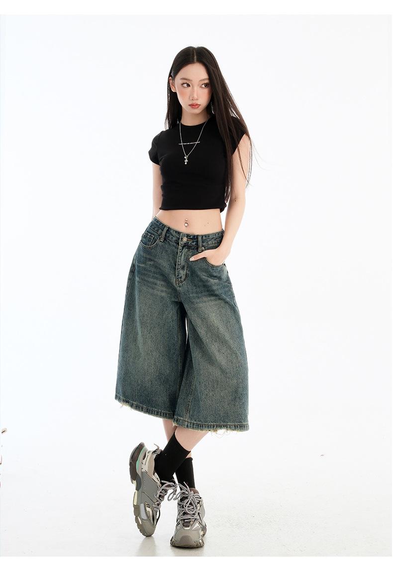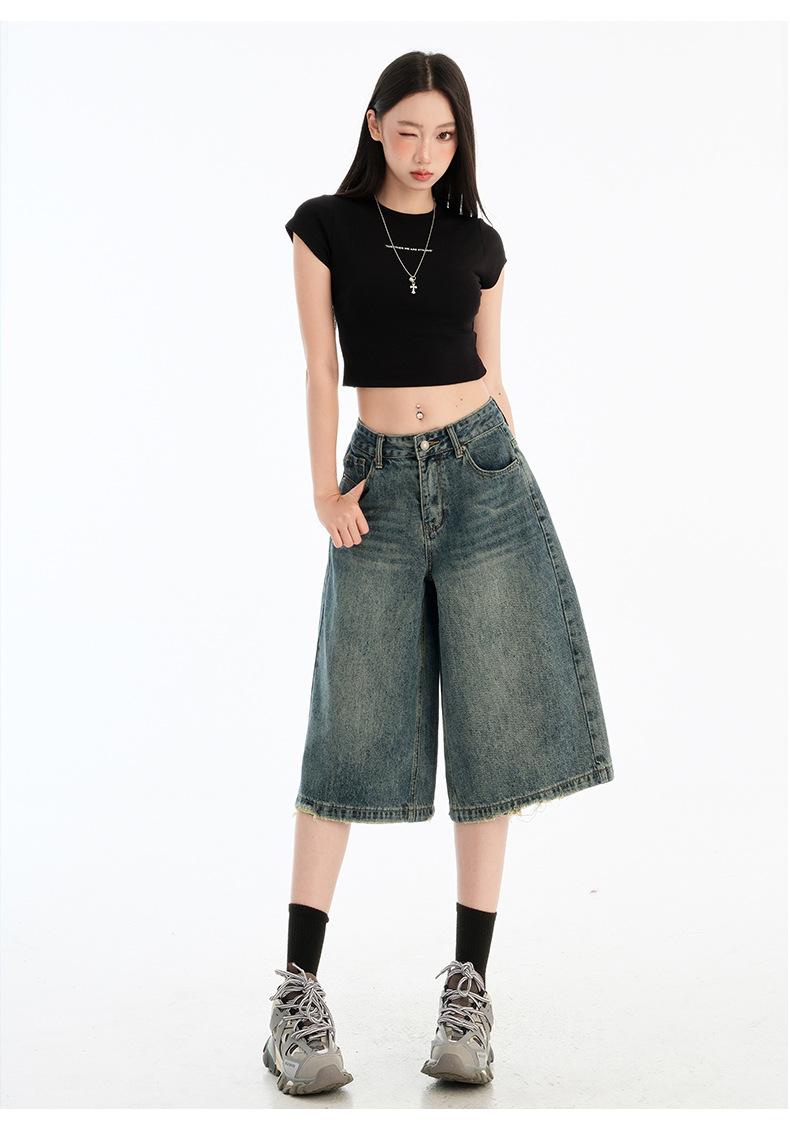 Jeans de Cinco Puntos de Pierna Ancha Primavera y Verano 2025 Nuevo Retro Lavado Drapeado Suelto Recto Mezclilla Pantalones Medios Shorts de Mujer