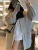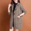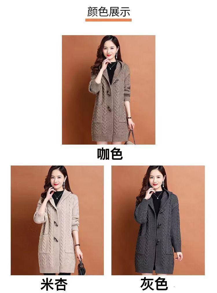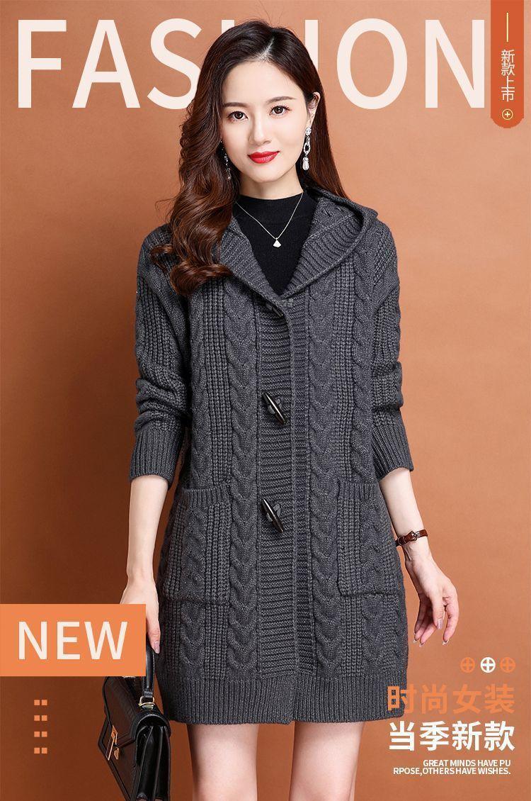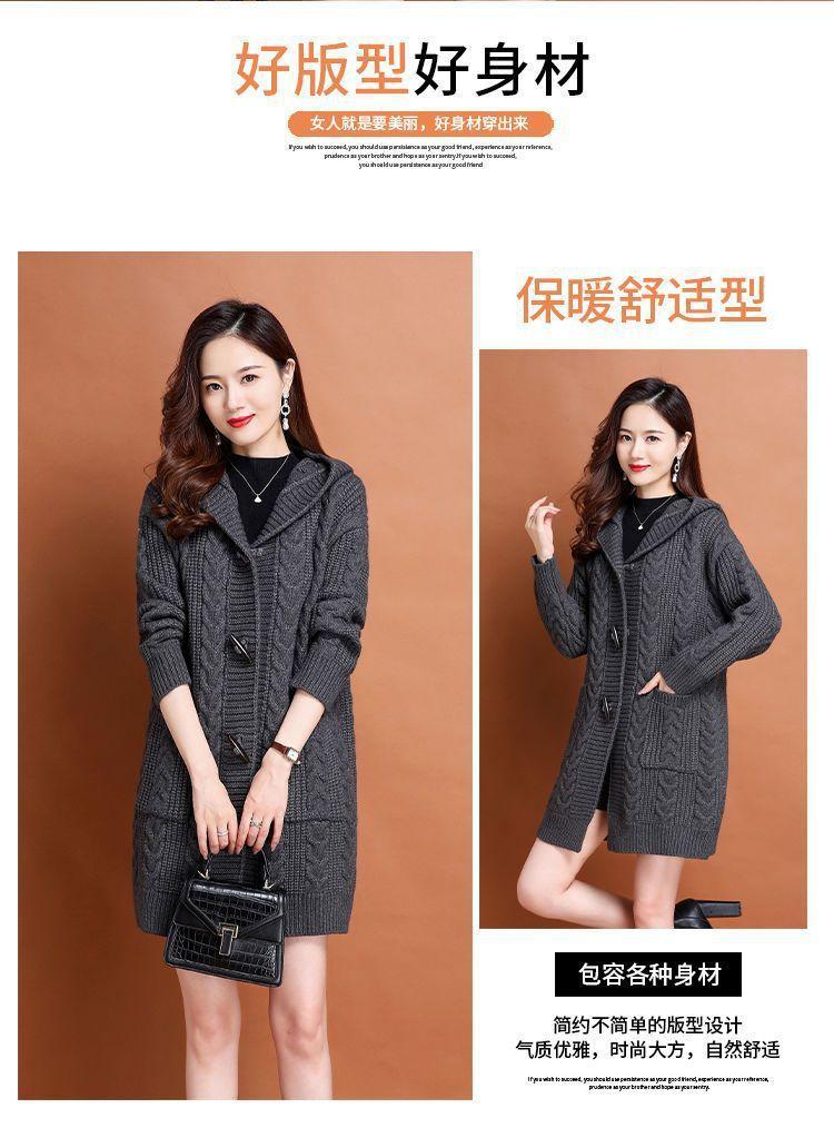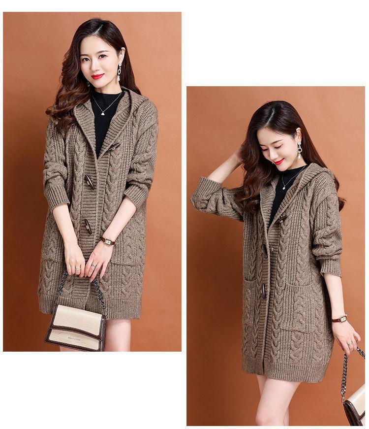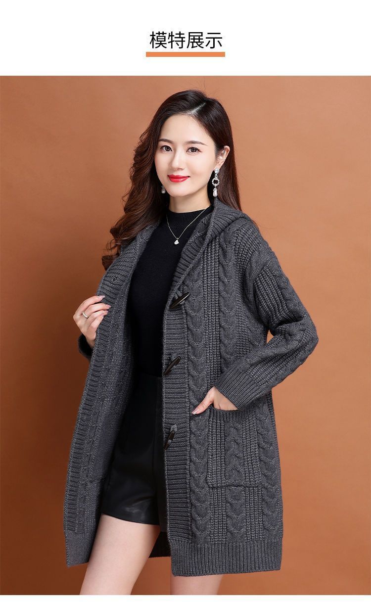Suéter Chaqueta con Capucha de Línea Gruesa de Moda Cárdigan de Largo Medio Estilo Holgado Perezoso Talla Grande Tejido Grueso Trenzado Chaqueta
