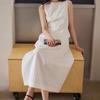 Vestido Blanco sin Mangas Estilo Francés para Mujer Verano Costuras Cintura Negro Certificado Vestido de Vacaciones