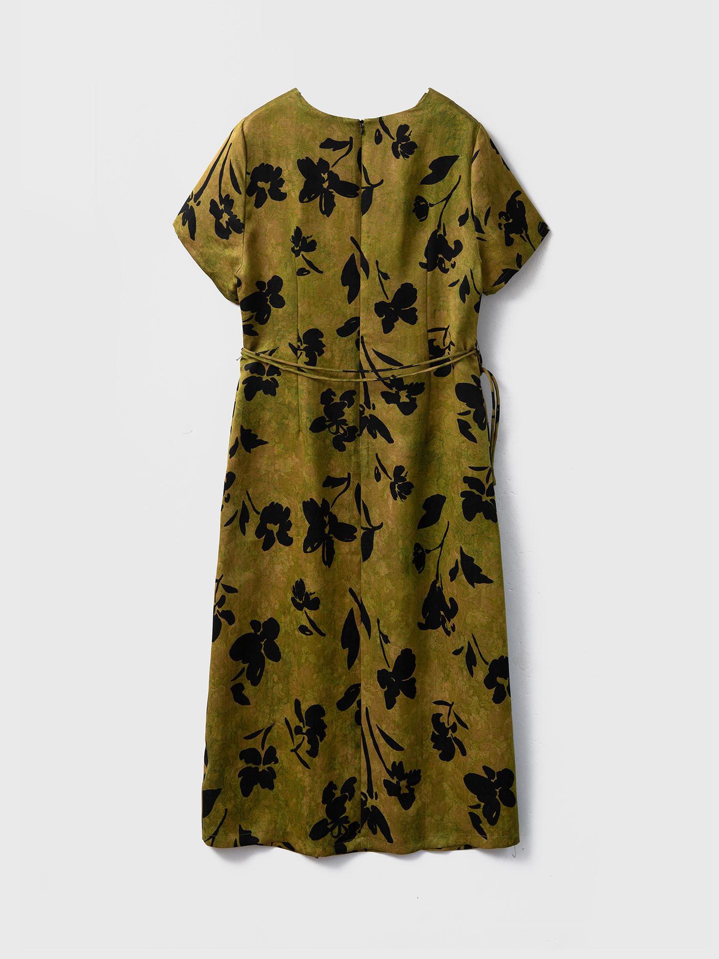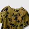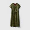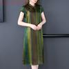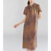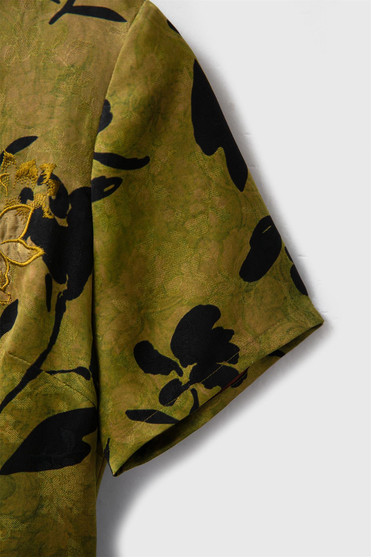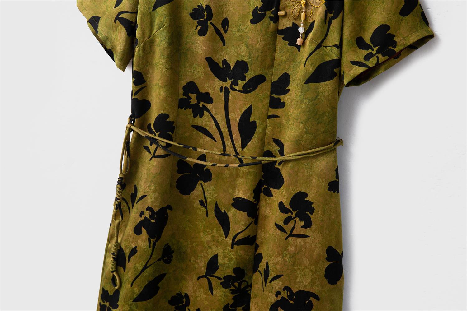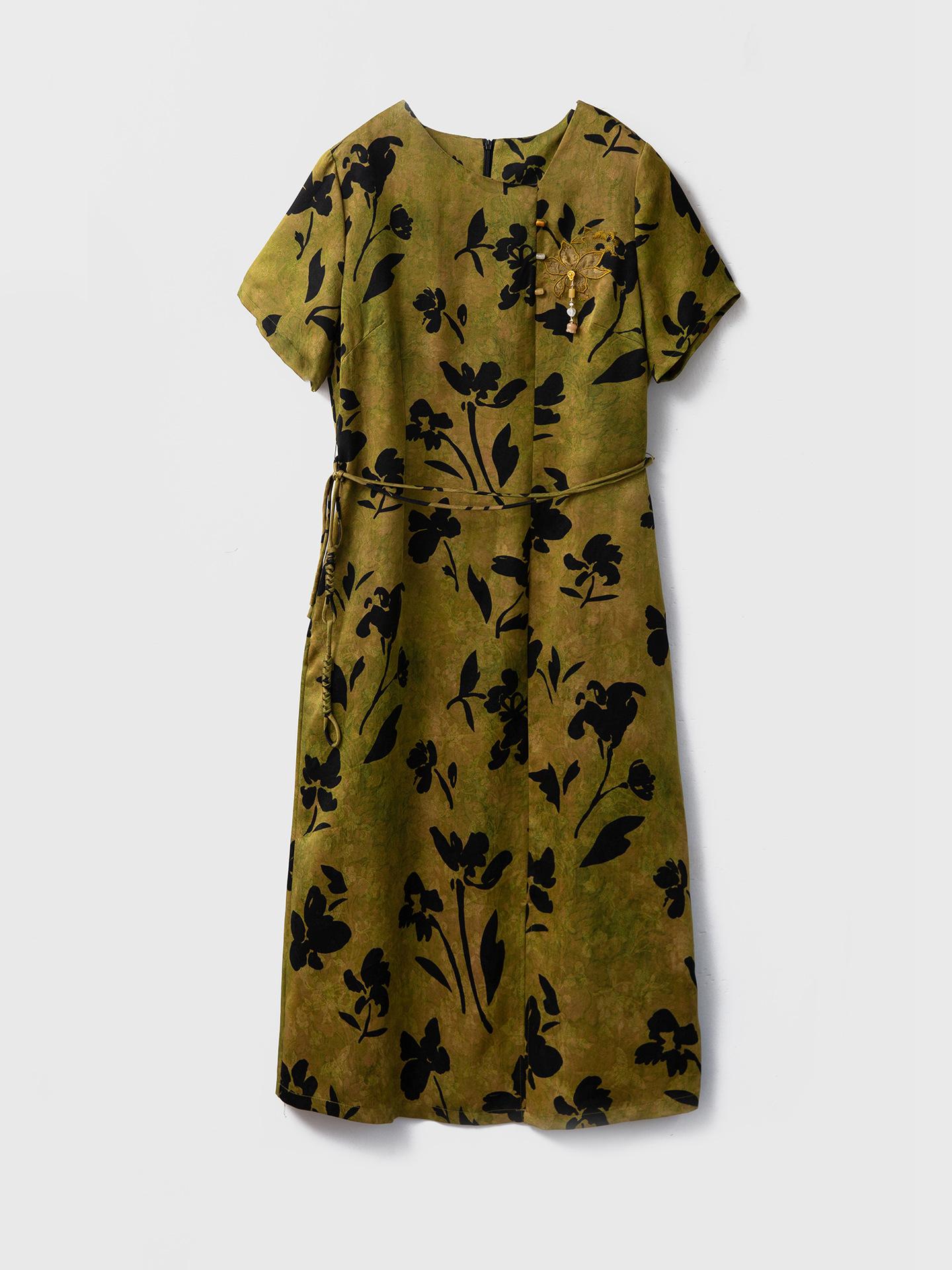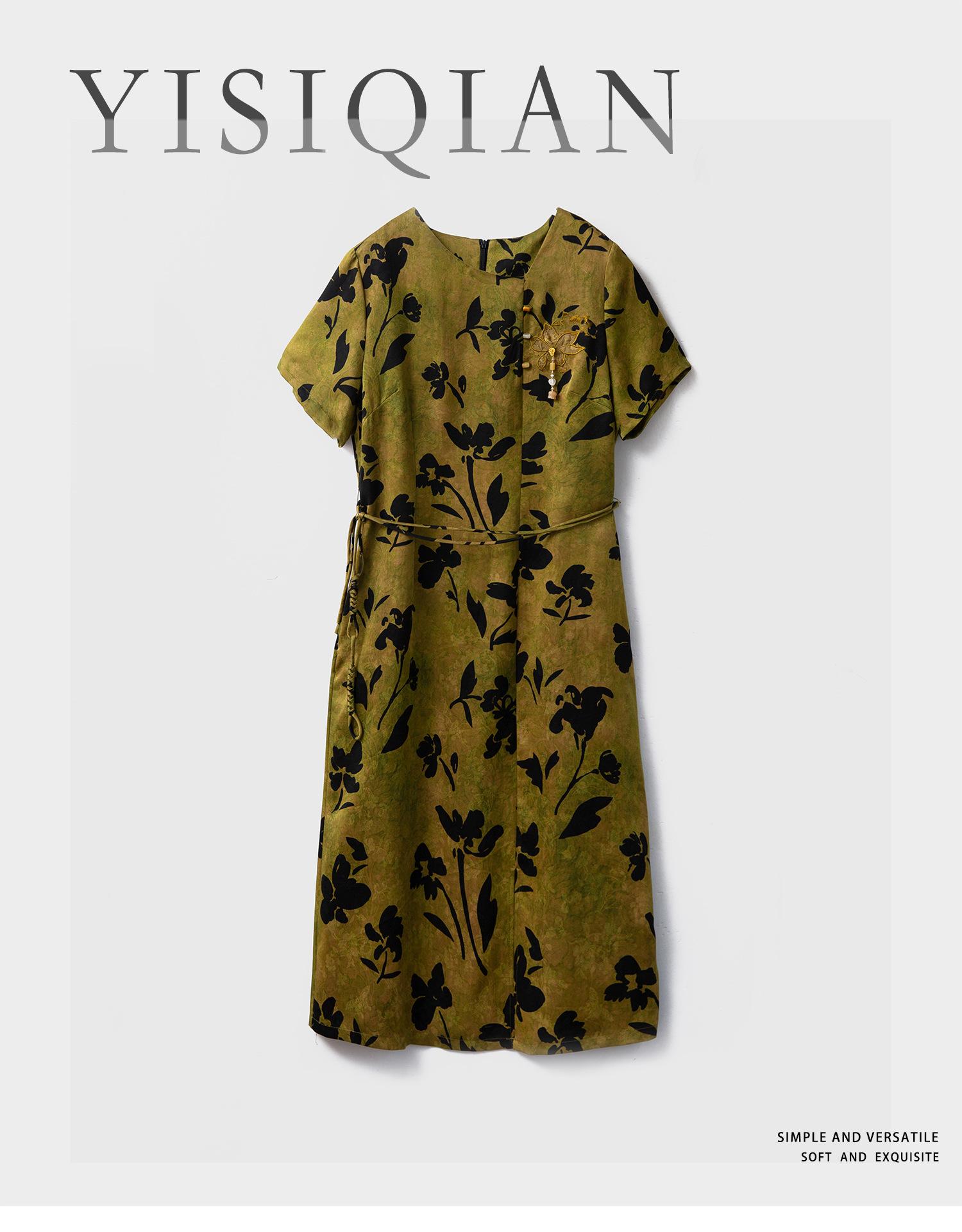 Vestido de Manga Corta de Seda Xiangyunsha Flor Luo Estilo Nacional Bordado 100 Seda de Morera Cuello Redondo Estilo Chino Nuevo Vestido Largo Verano