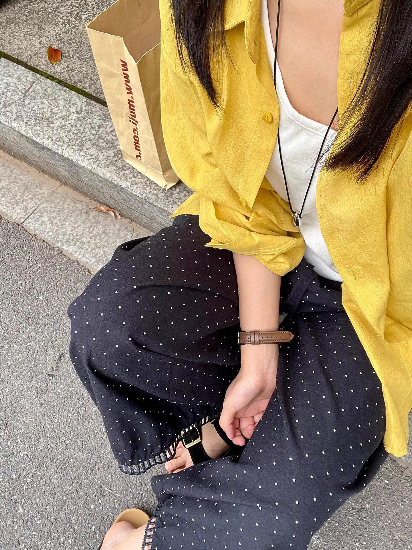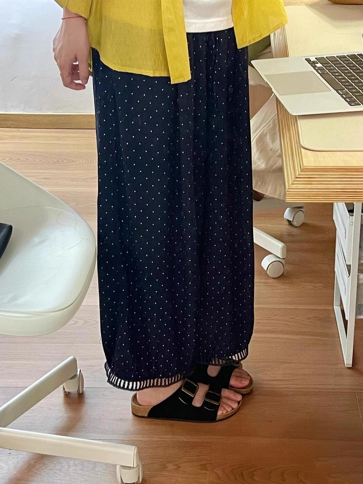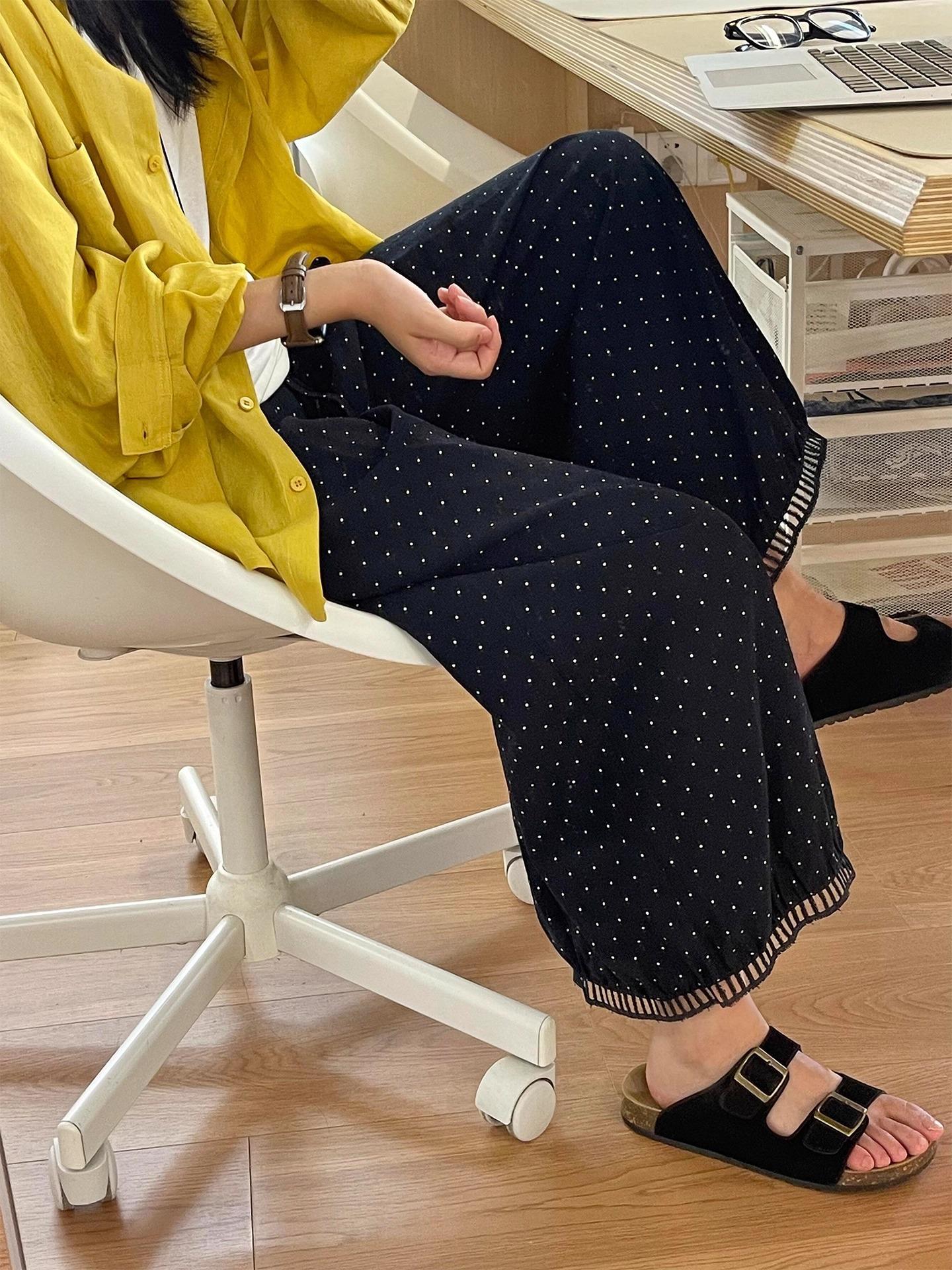 Pantalones Casuales Huecos de Lunares para Mujer 2025 Verano Delgados de Cintura Alta Sueltos con Caída Adelgazantes Versátiles Recortados de Pierna Ancha