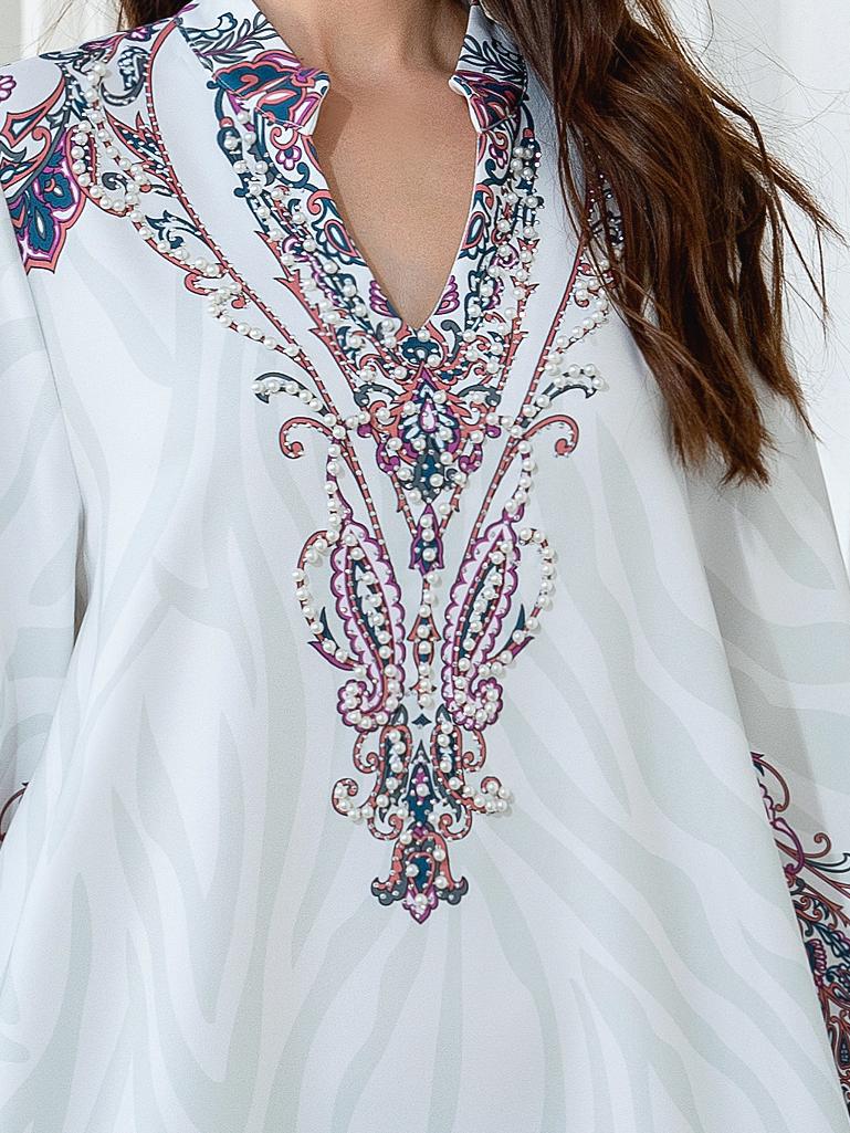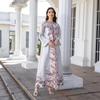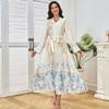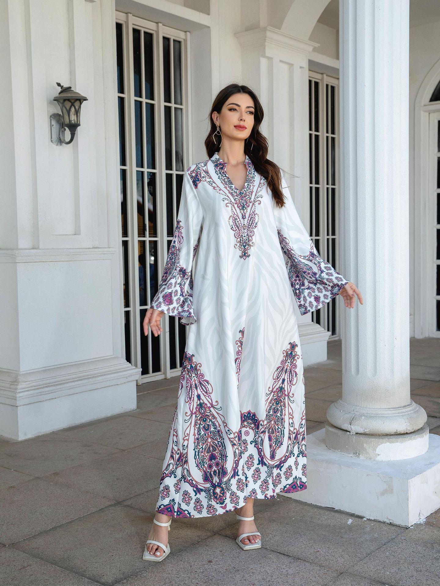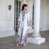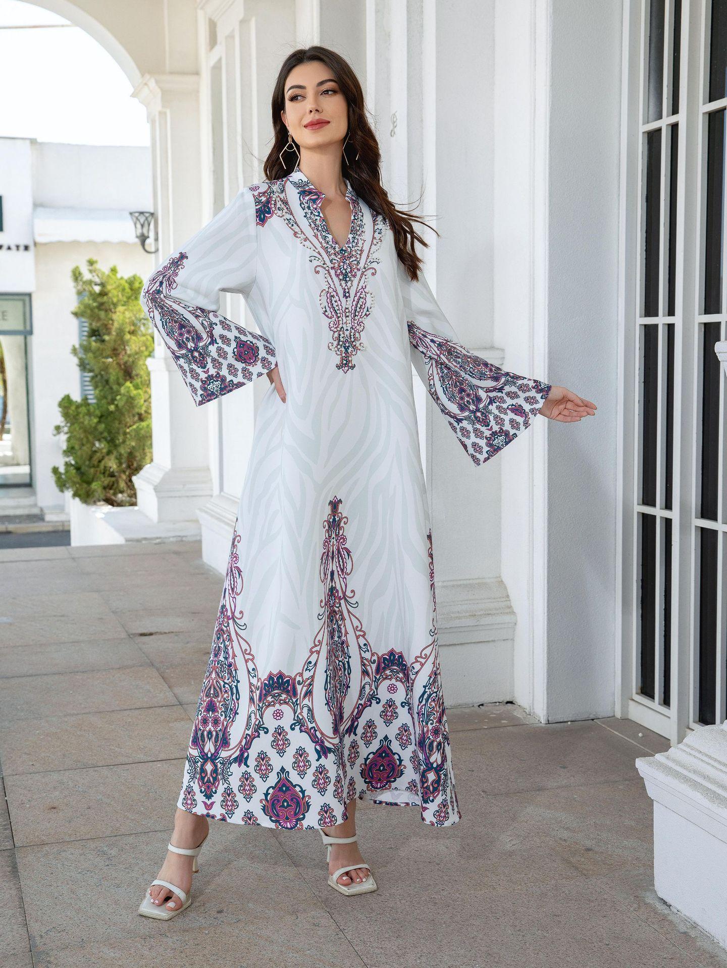 SW1102 Bata Nueva para Mujer del Medio Oriente Cuello Mao Transfronteriza Moda Musulmana Temperamento Abaya Estampado de Perlas Termoadheridas Bata Larga