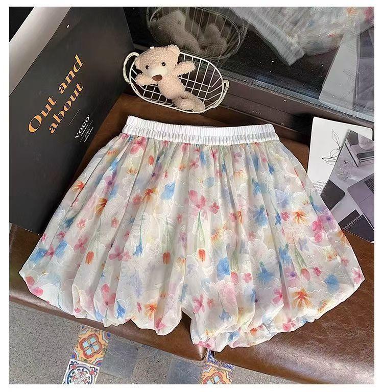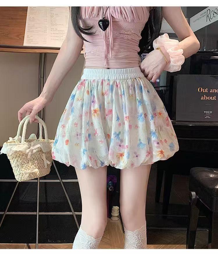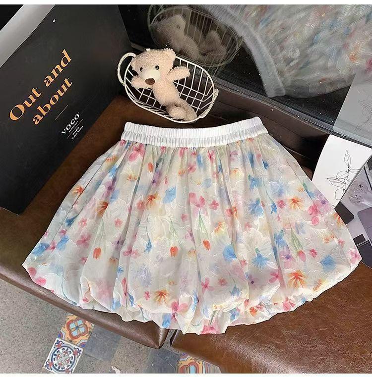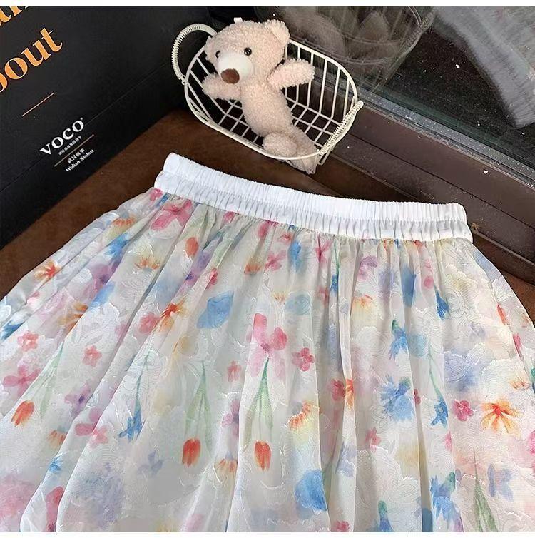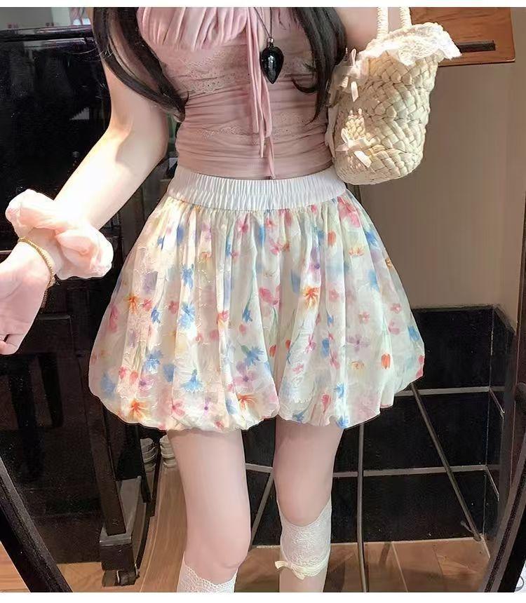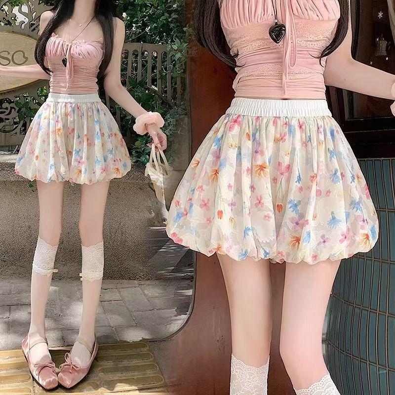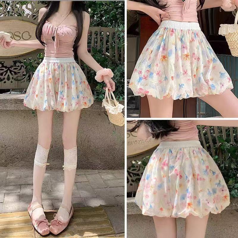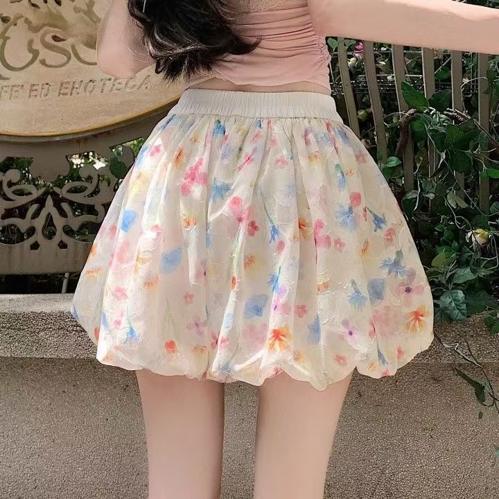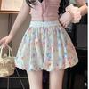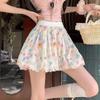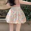 Falda midi de pierna ancha abullonada floral colorida estilo coreano para mujer verano 2025 cintura alta casual versátil línea A tulipán pantalones falda