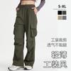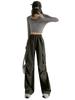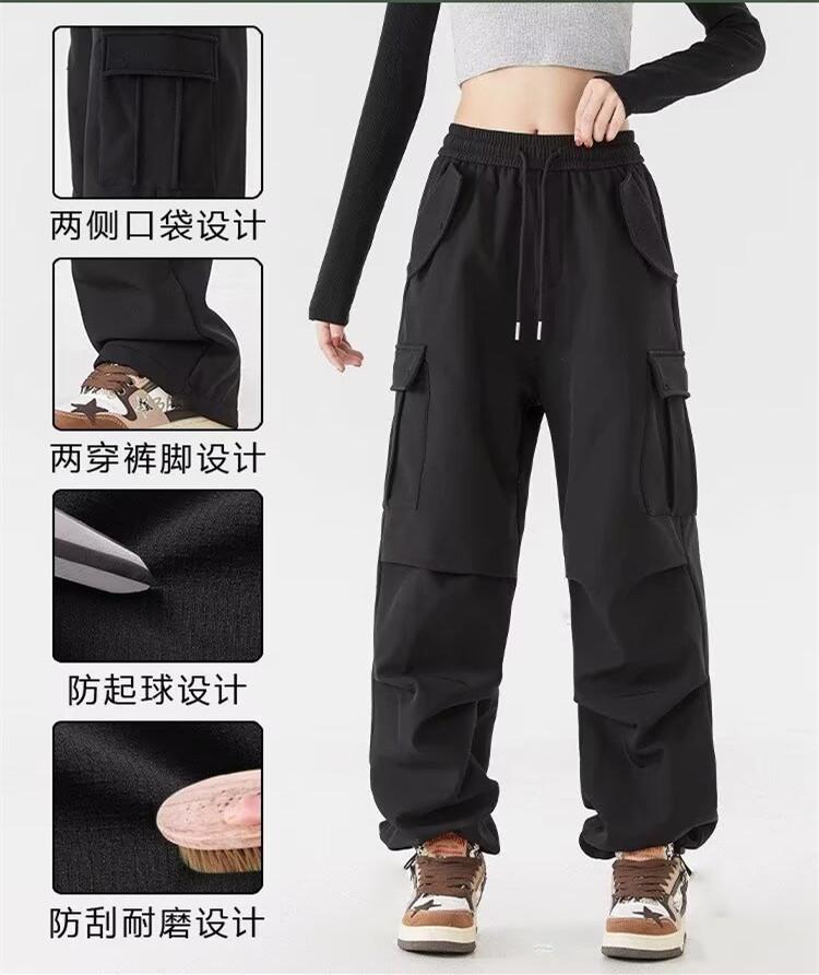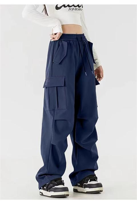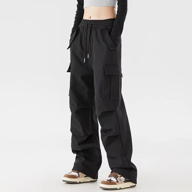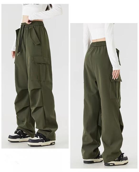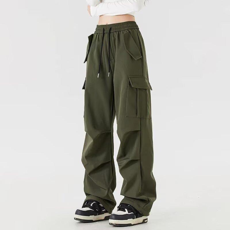 Pantalones Cargo de Estilo Americano para Mujer, Verano 2025 Nuevo Adelgazante de Cintura Alta Deportivo Casual Pierna Ancha Petite Pantalones Paracaídas