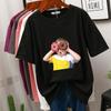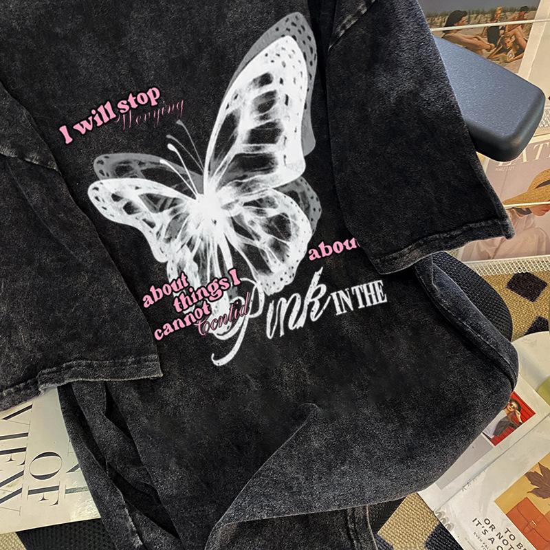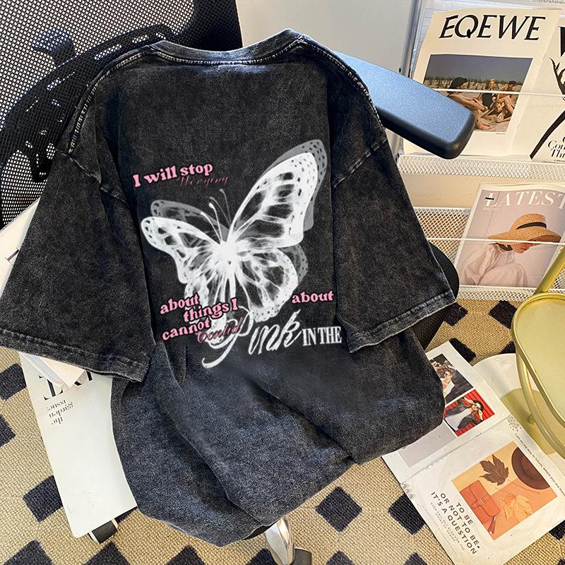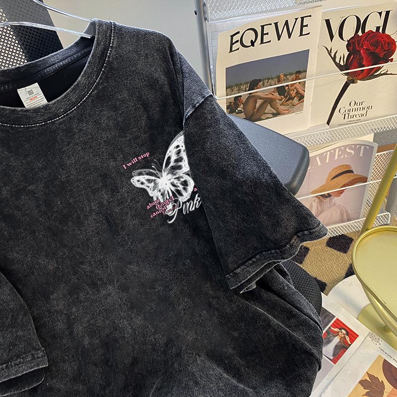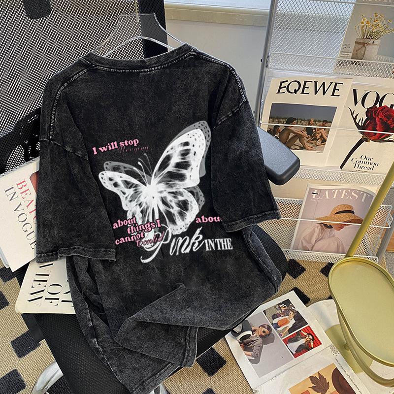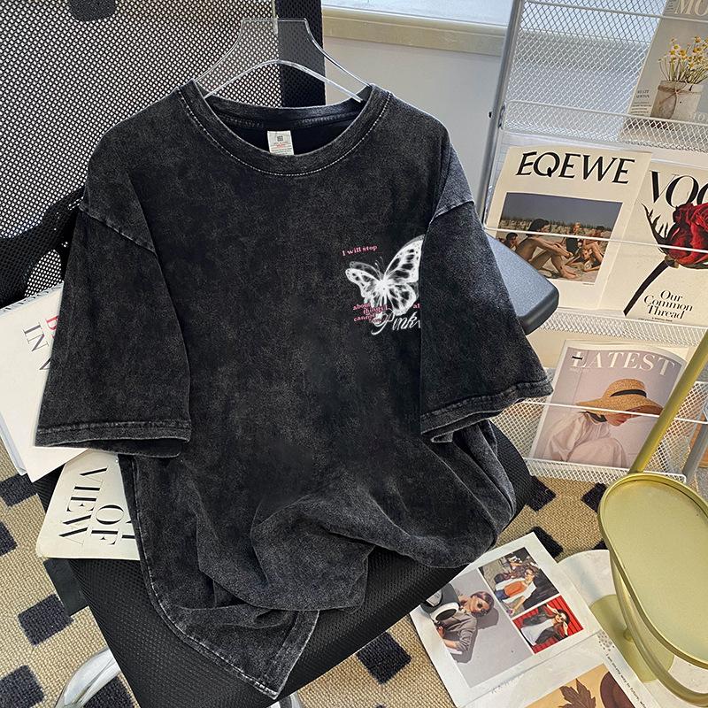 Playera de Manga Corta para Mujer Talla Grande Estilo Retro Americano Estilo Hong Kong para Mujer Nuevo Verano Único y Chic Desgastado Holgado