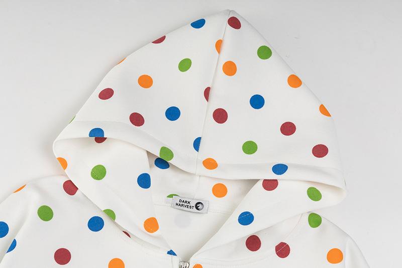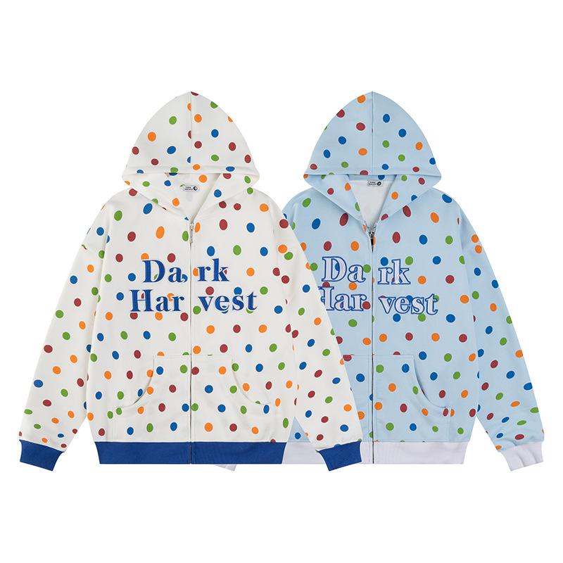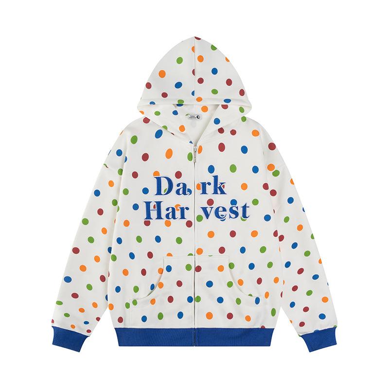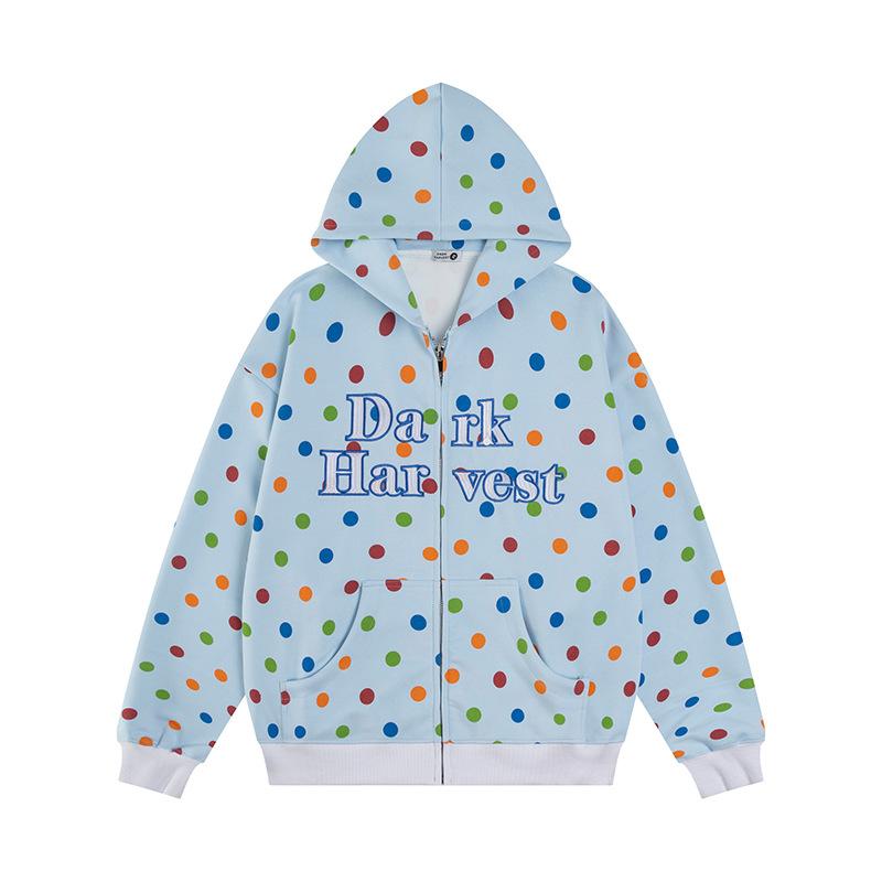 Sudadera con capucha para mujer estilo pareja holgada otoño 2025 Nuevo Retro Americano Lunares Letra Bordada