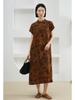 Hilo Nube Fragante de Seda Vestido Cheongsam Mejorado 100% Seda de Morera Cuello Mao Cintura Manga Corta Falda Larga Verano