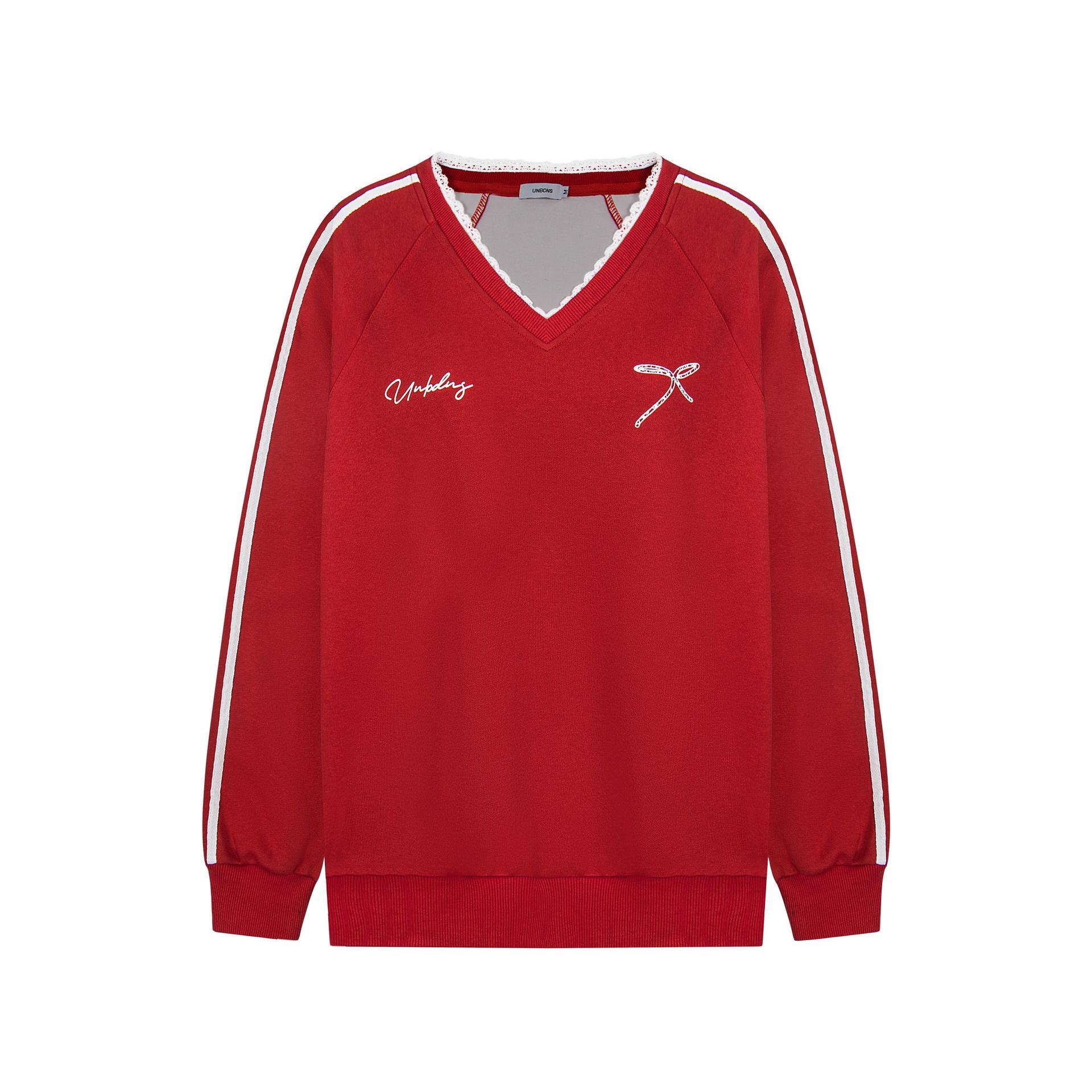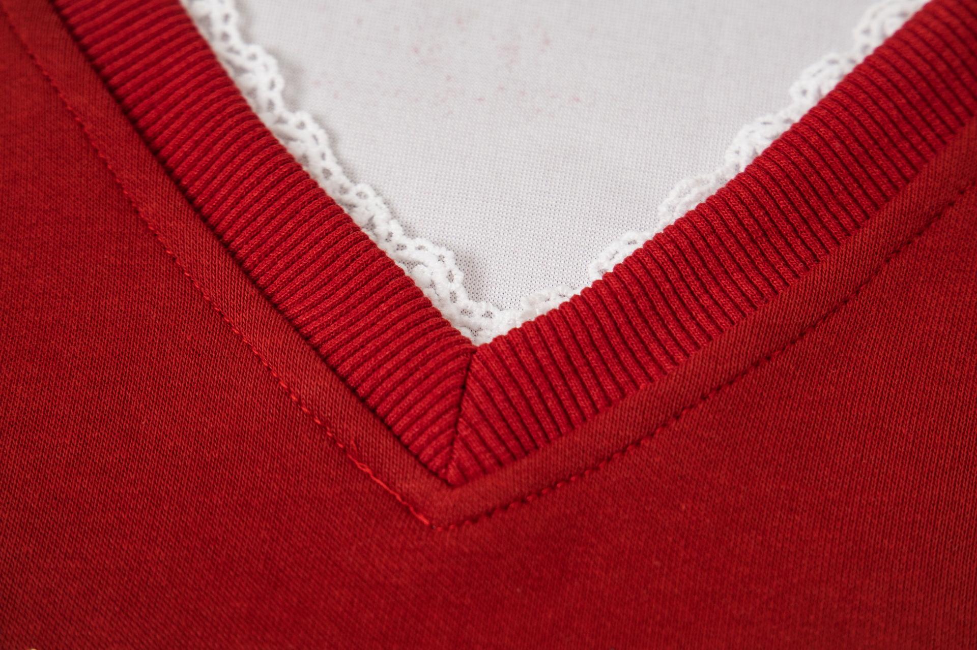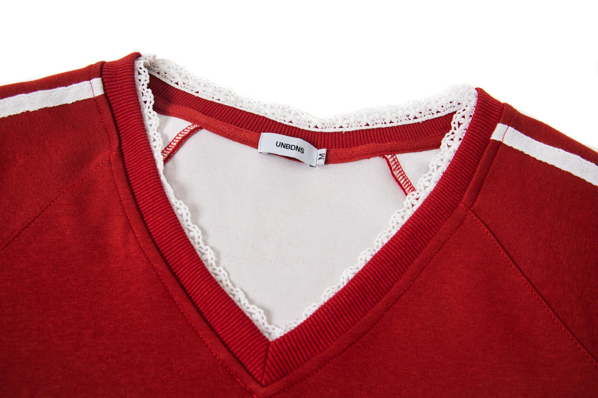 184 chica callejera de alta gama caliente retro americana para mujer sudadera holgada moderna con diseño de bordado de lazo y encaje con cuello en V
