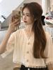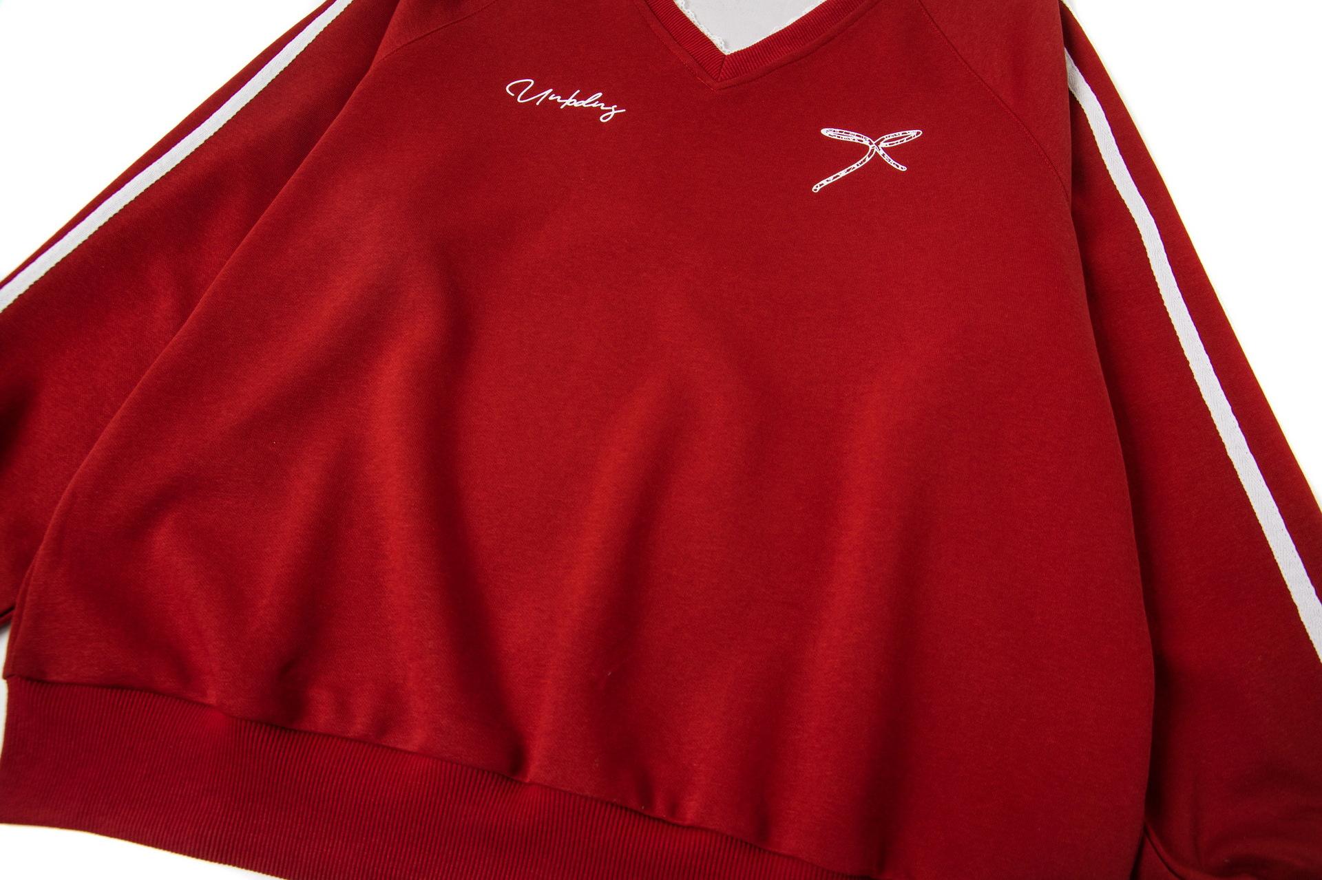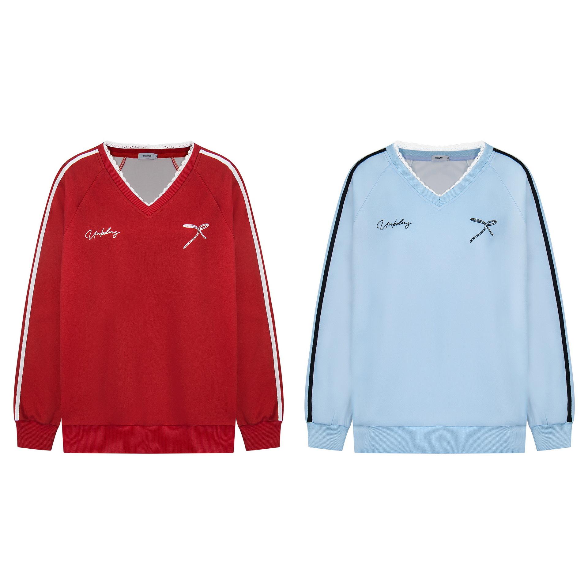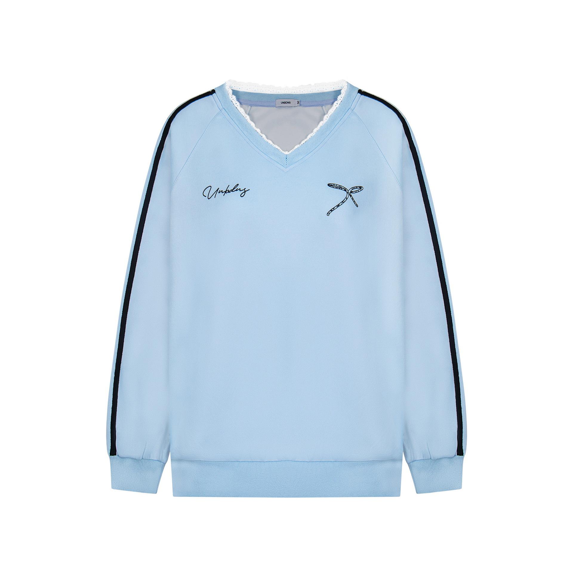 184 chica callejera de alta gama caliente retro americana para mujer sudadera holgada moderna con diseño de bordado de lazo y encaje con cuello en V