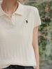 Hanyuan Apparel / Camiseta de Punto Manga Corta Cuello Polo Color Blanco Crudo para Mujer Verano 2025 Nuevo Top Delgado Bordado