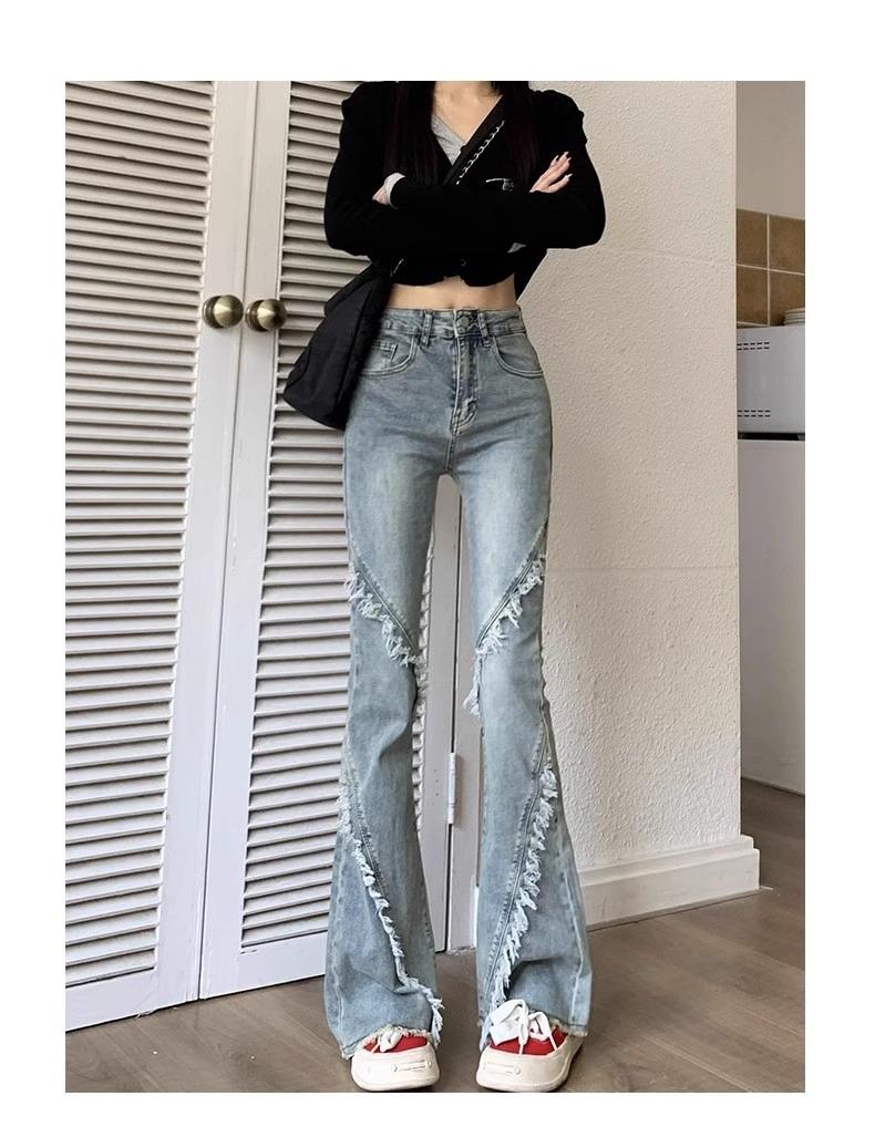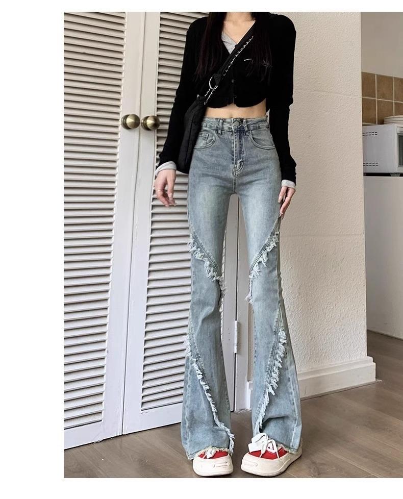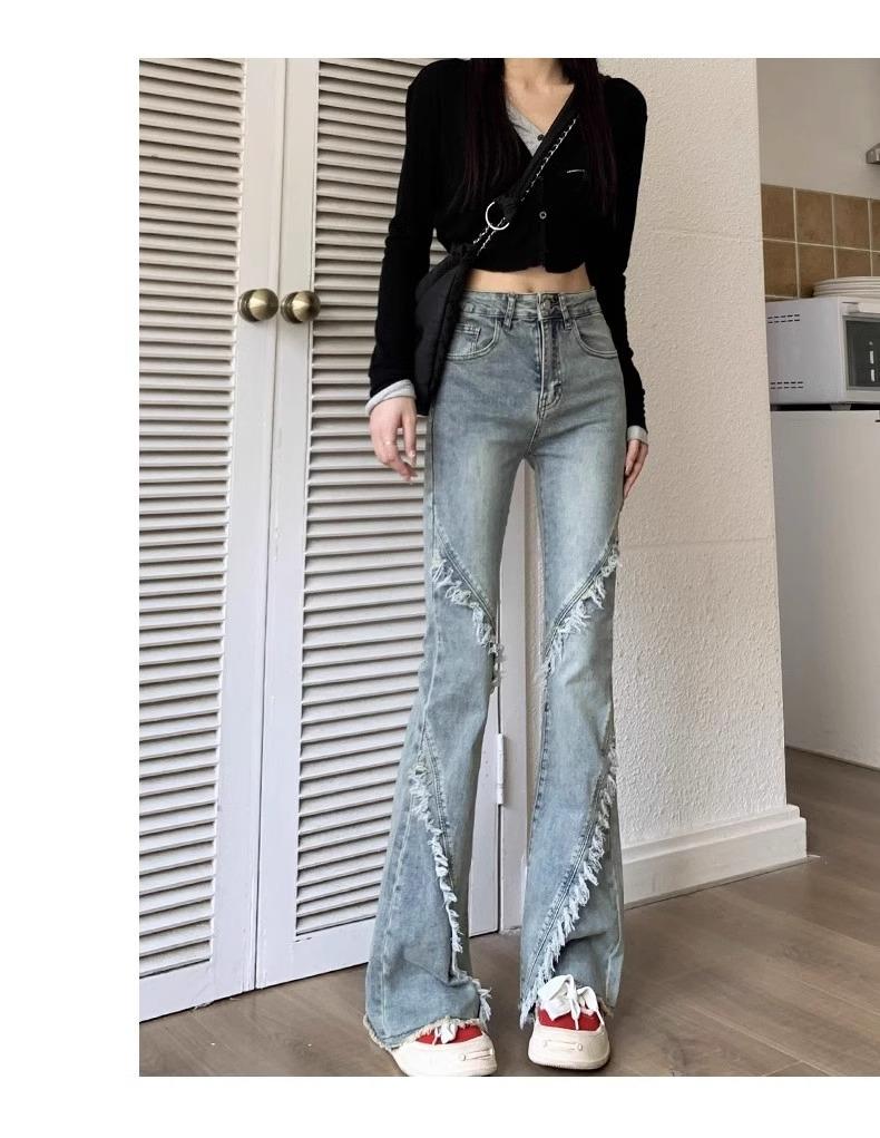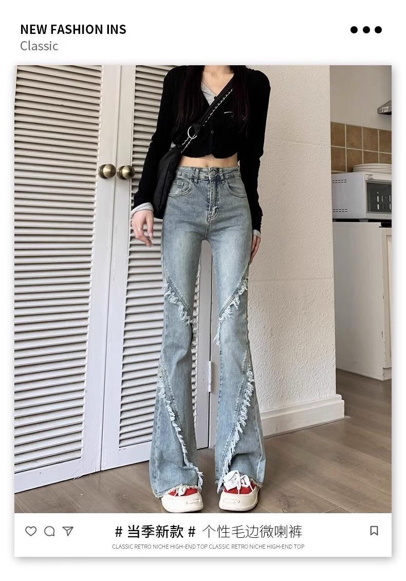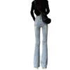 Jeans Micro-acampanados Vintage para Mujer Otoño Moderno Combinable Elástico Ajustado Pantalones de Herradura Cintura Alta con Bordes de Piel Pantalones Largos de Campana