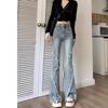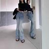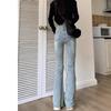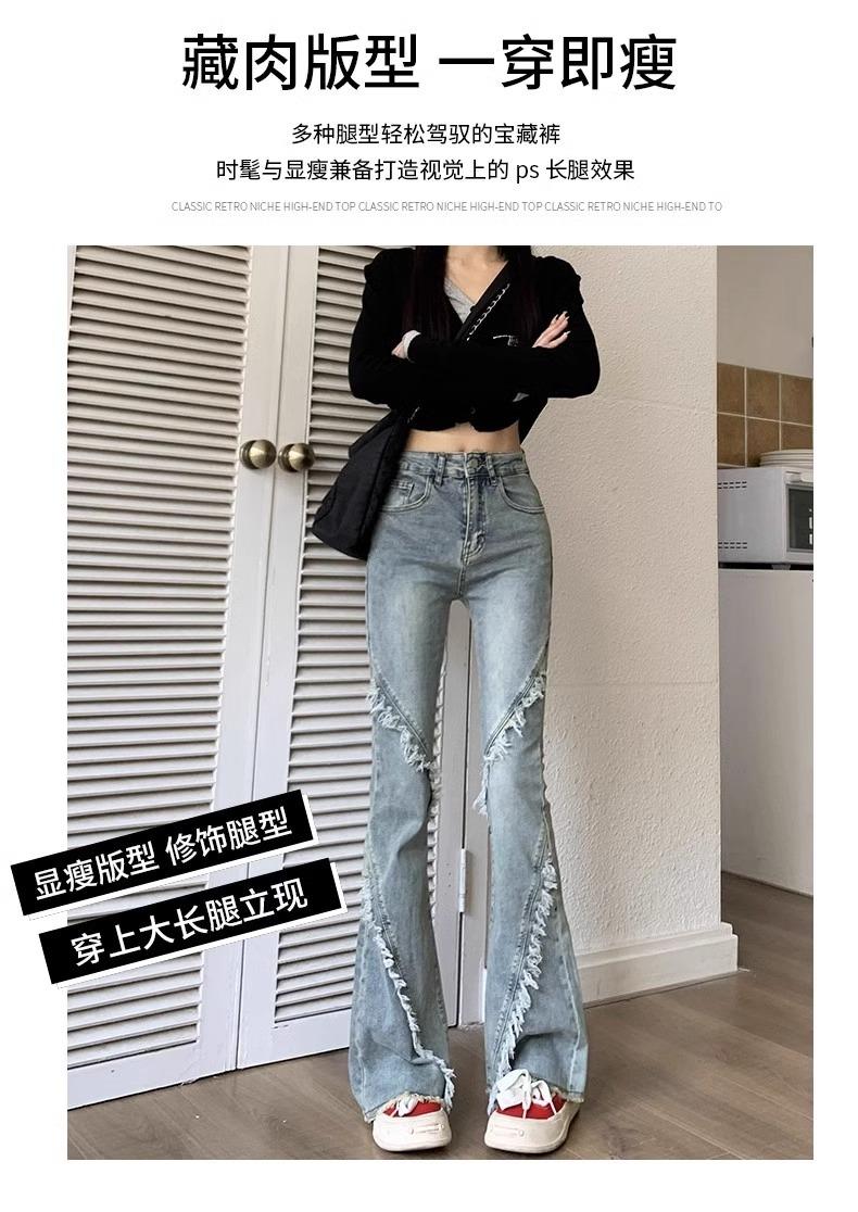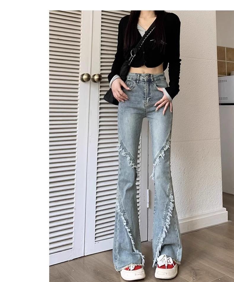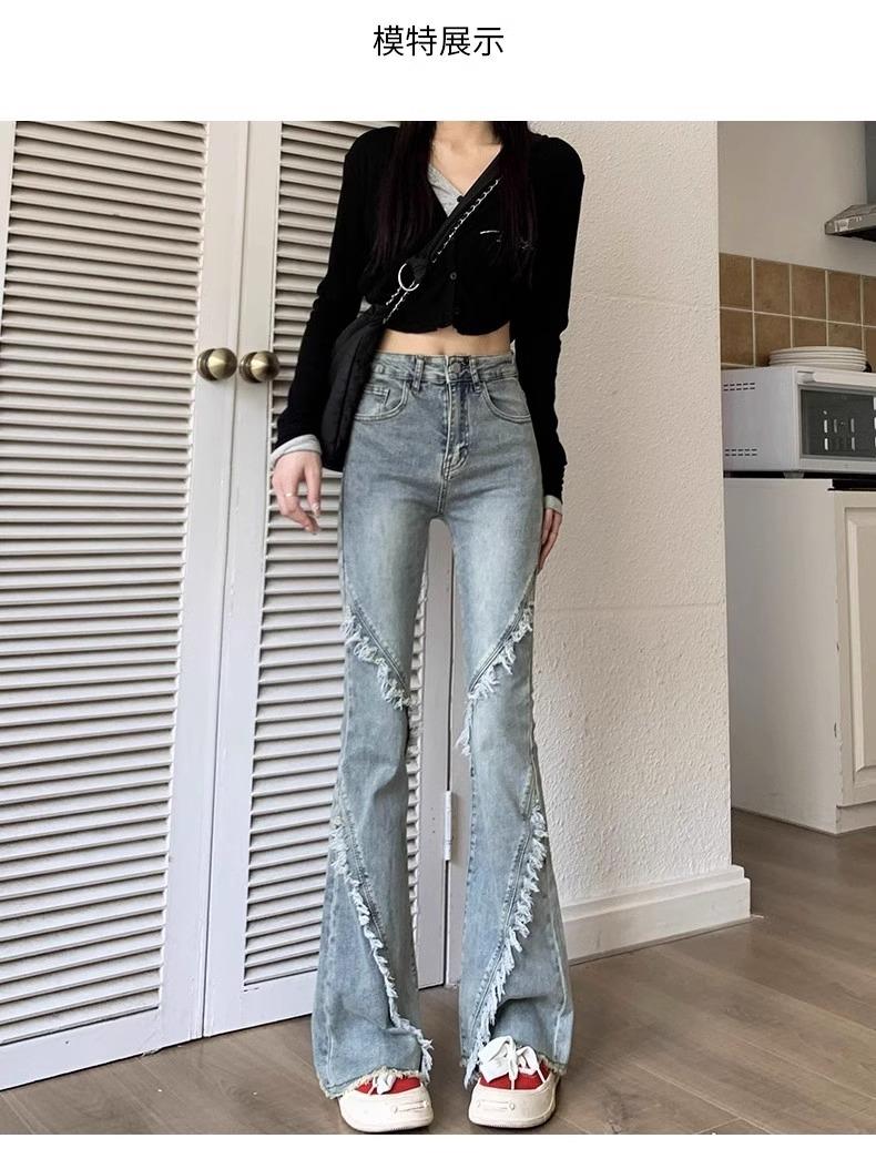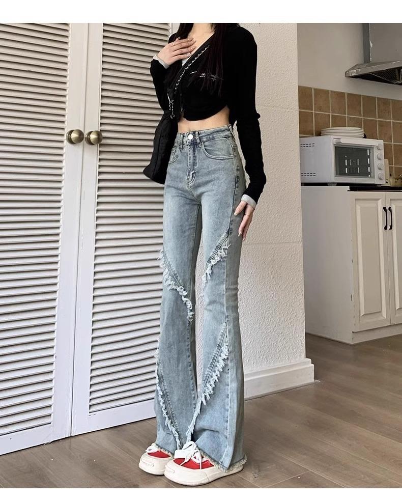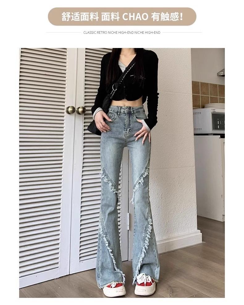 Jeans Micro-acampanados Vintage para Mujer Otoño Moderno Combinable Elástico Ajustado Pantalones de Herradura Cintura Alta con Bordes de Piel Pantalones Largos de Campana