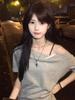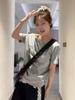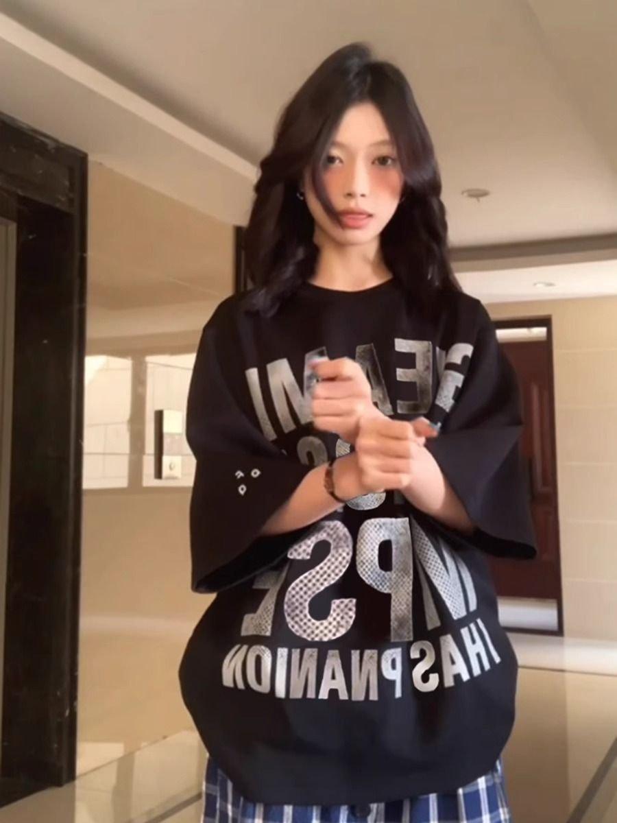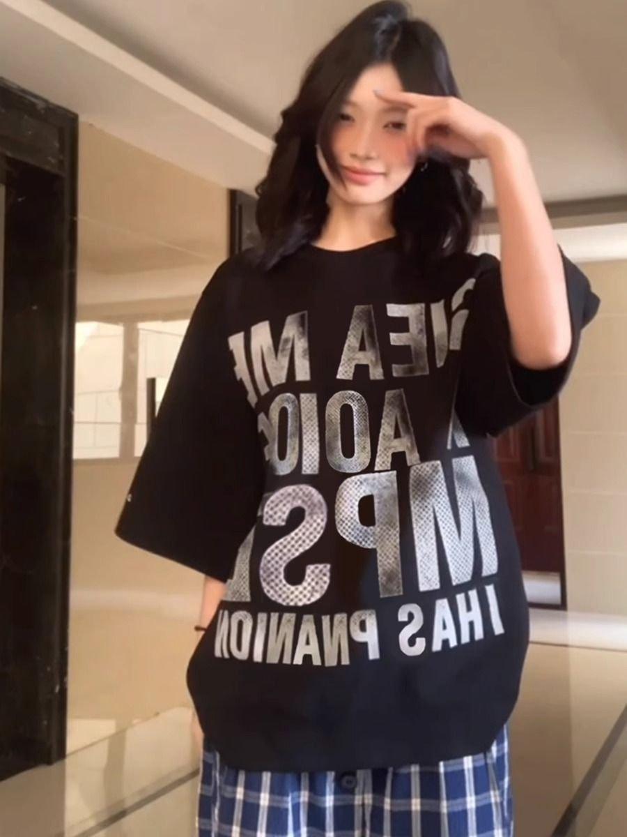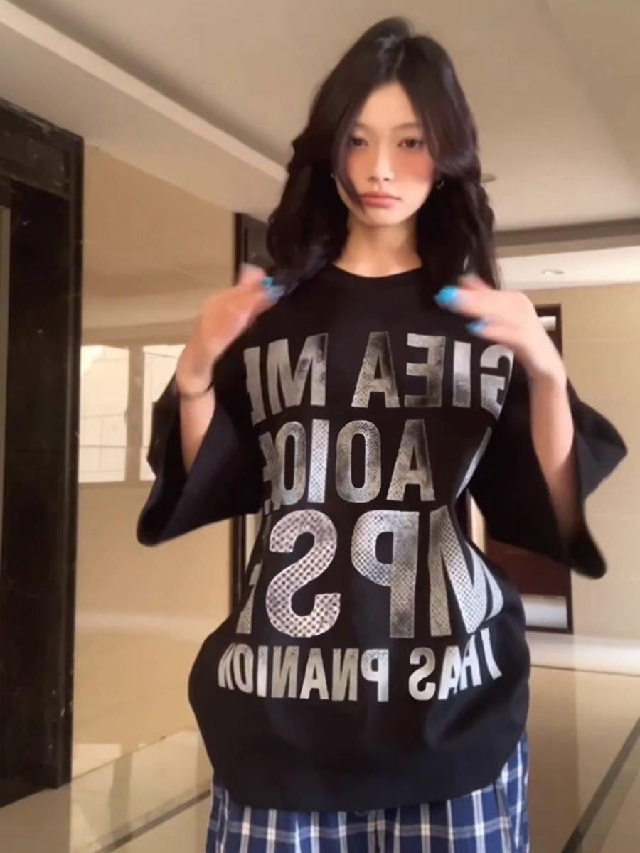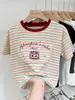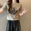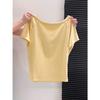 Playera de Hombro Descubierto Trendy Estampada de Media Manga Top de Algodón Puro de Manga Corta para Mujer Estilo Grueso Dopamina