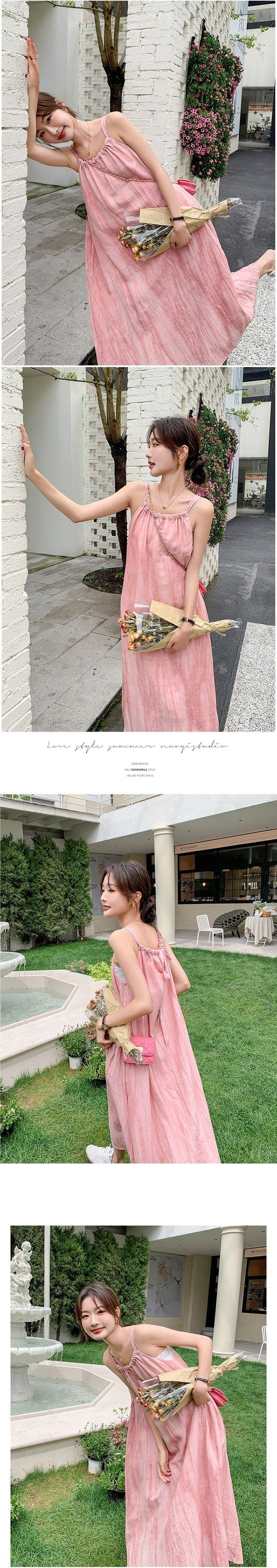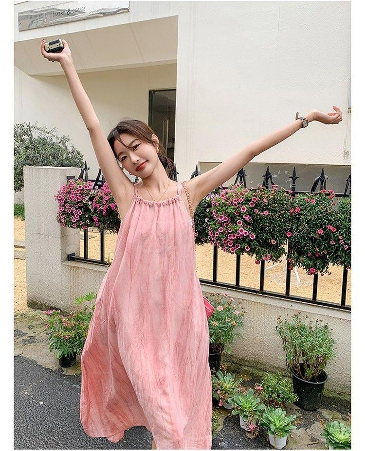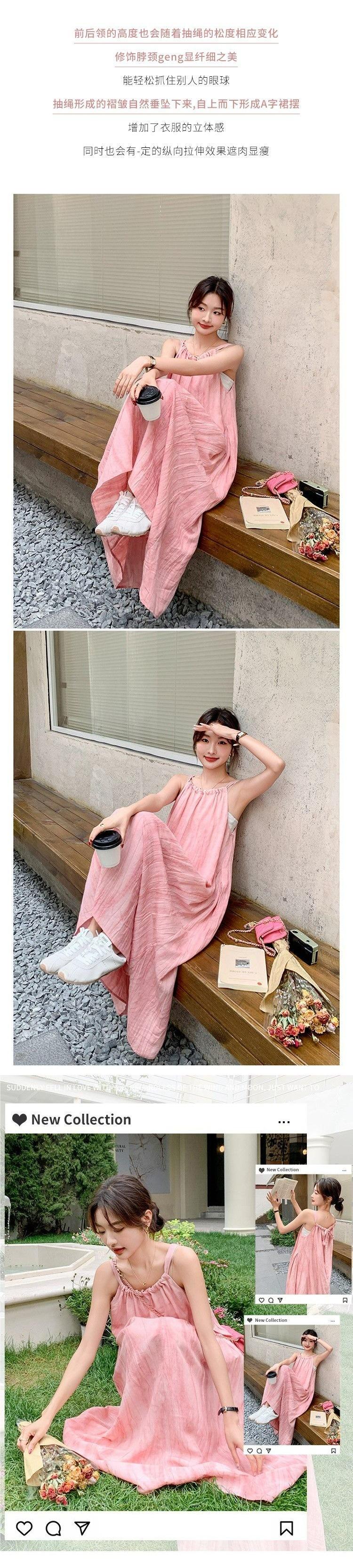 Vestido Largo de Tirantes Espagueti Rosa para Mujer Verano Nuevo Vacaciones en la Playa Vestido de Playa Sentido del Diseño Vestido Nicho