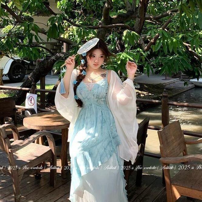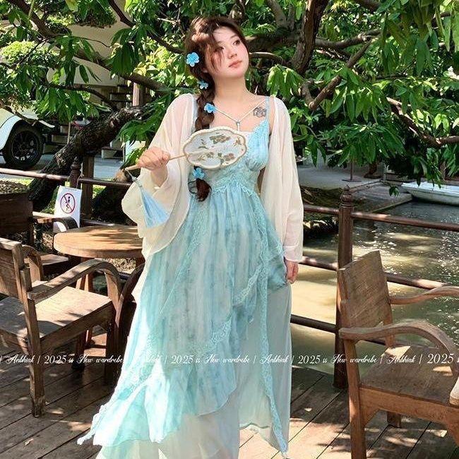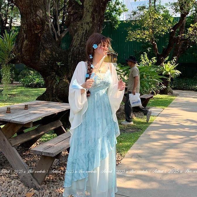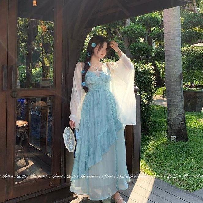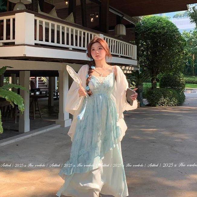 Sunscreen cardigan + slip dress, Sun protection cardigan, suspender skirt