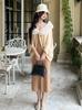 Traje de Vestido con Tirantes Rosa Tinta Estilo Perezoso para Mujer Verano Delgado Cárdigan Protección Solar Deseo Puro Falda Adelgazante