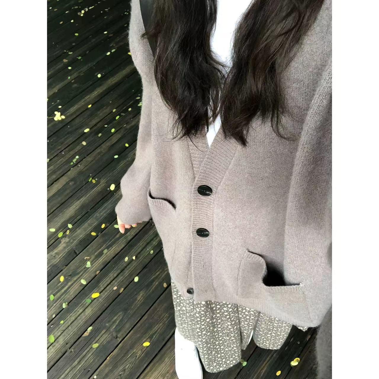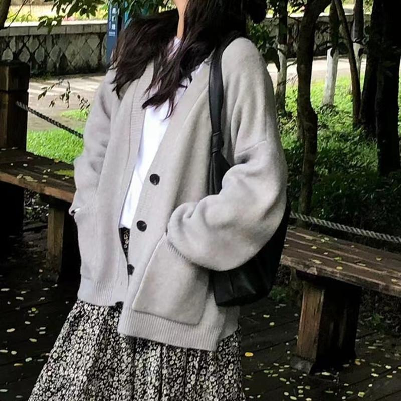 Suéter cárdigan de punto para mujer estilo coreano suave y glutinoso con cuello en V y manga larga, holgado e informal, para otoño e invierno