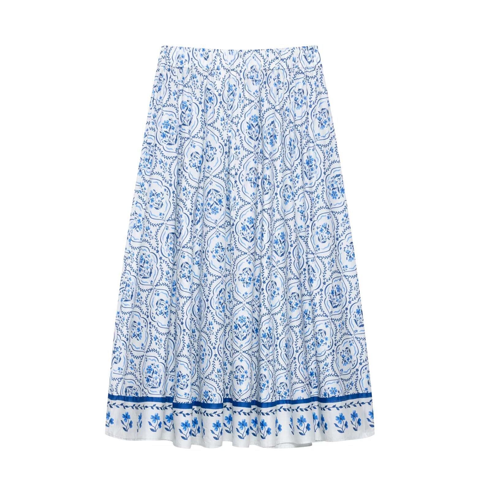 Z Transfronterizo 2025 Nueva Ropa de Verano para Mujer Estilo Europeo y Americano Moda Sencilla Versátil Algodón Casual Falda Estampada