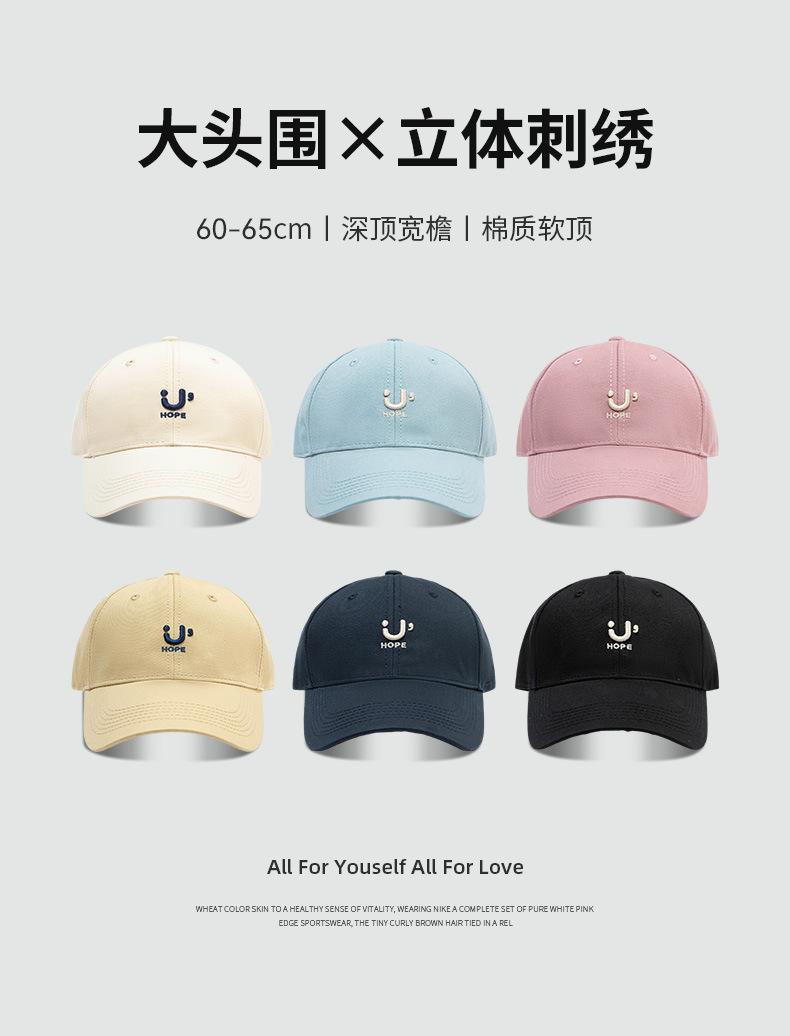 Gorra de Cabeza Grande para Mujer Estilo Coreano Moda Combinable Sencilla Bordada Gorra Estilo Japonés Estilo Fresco Parasol Gorra de Béisbol