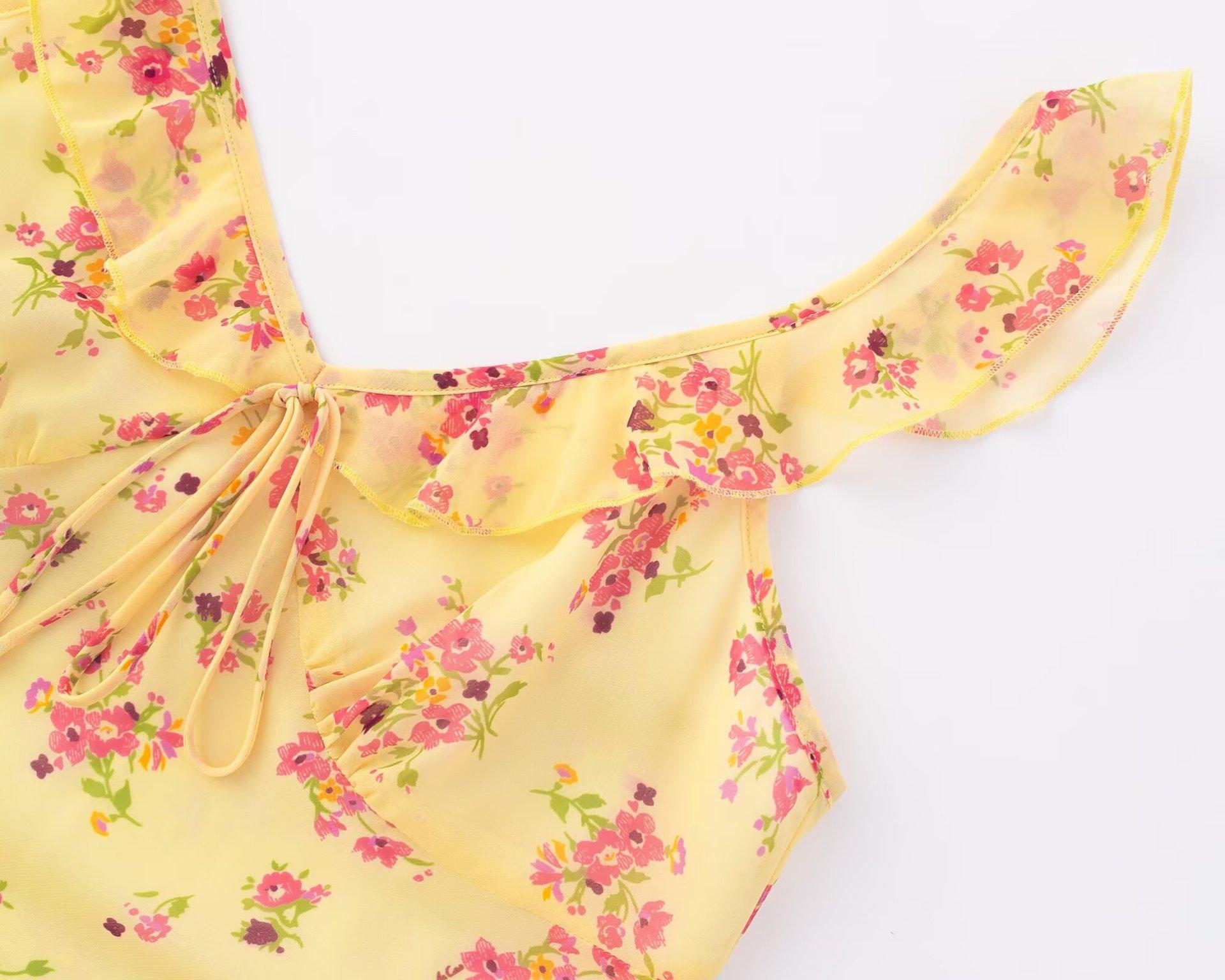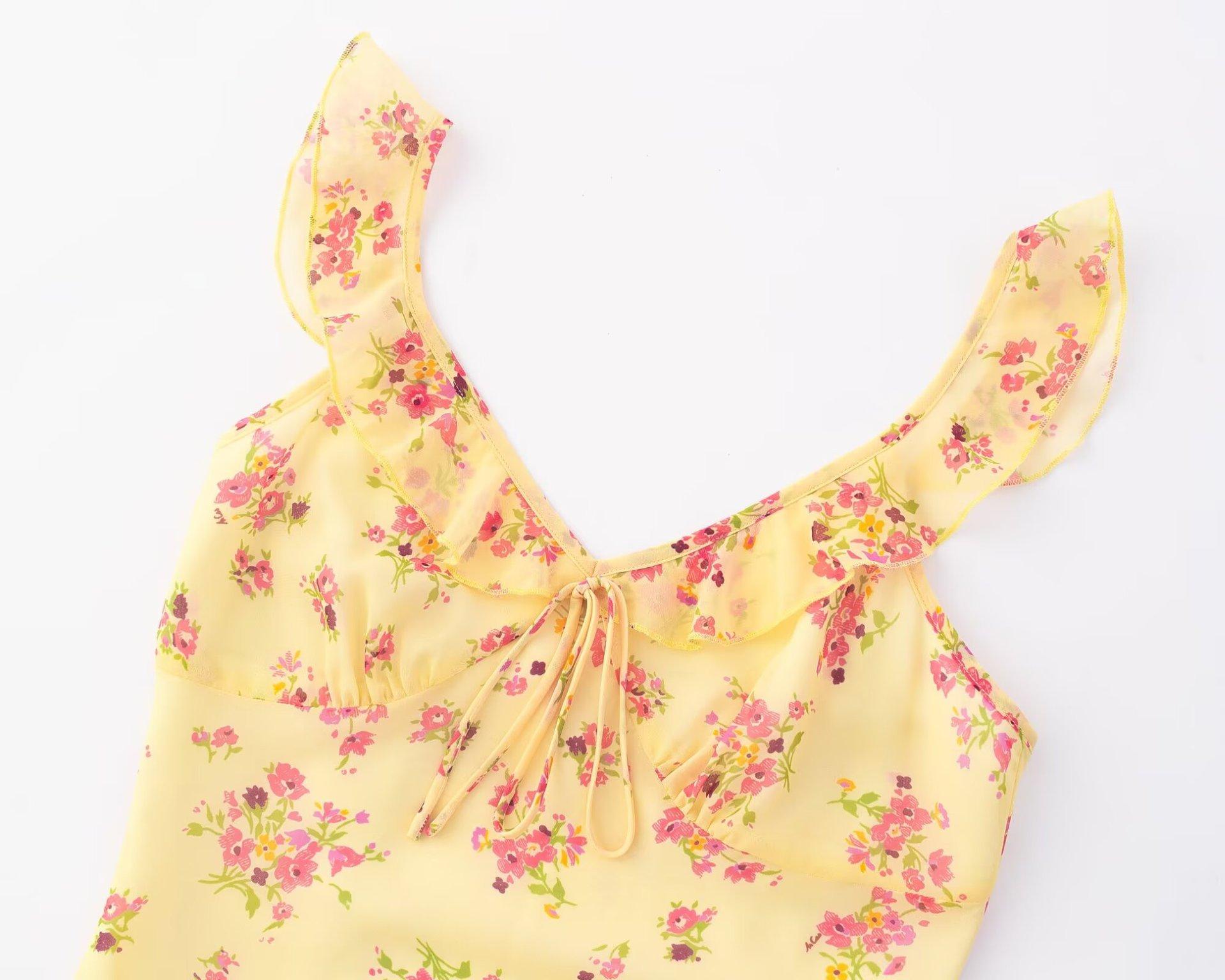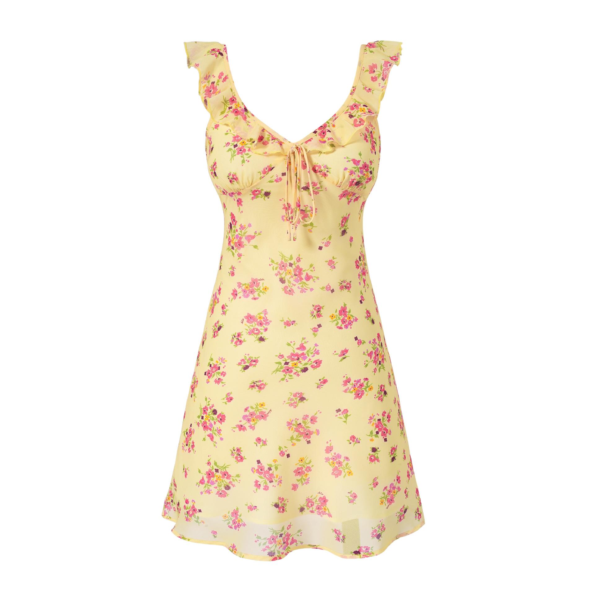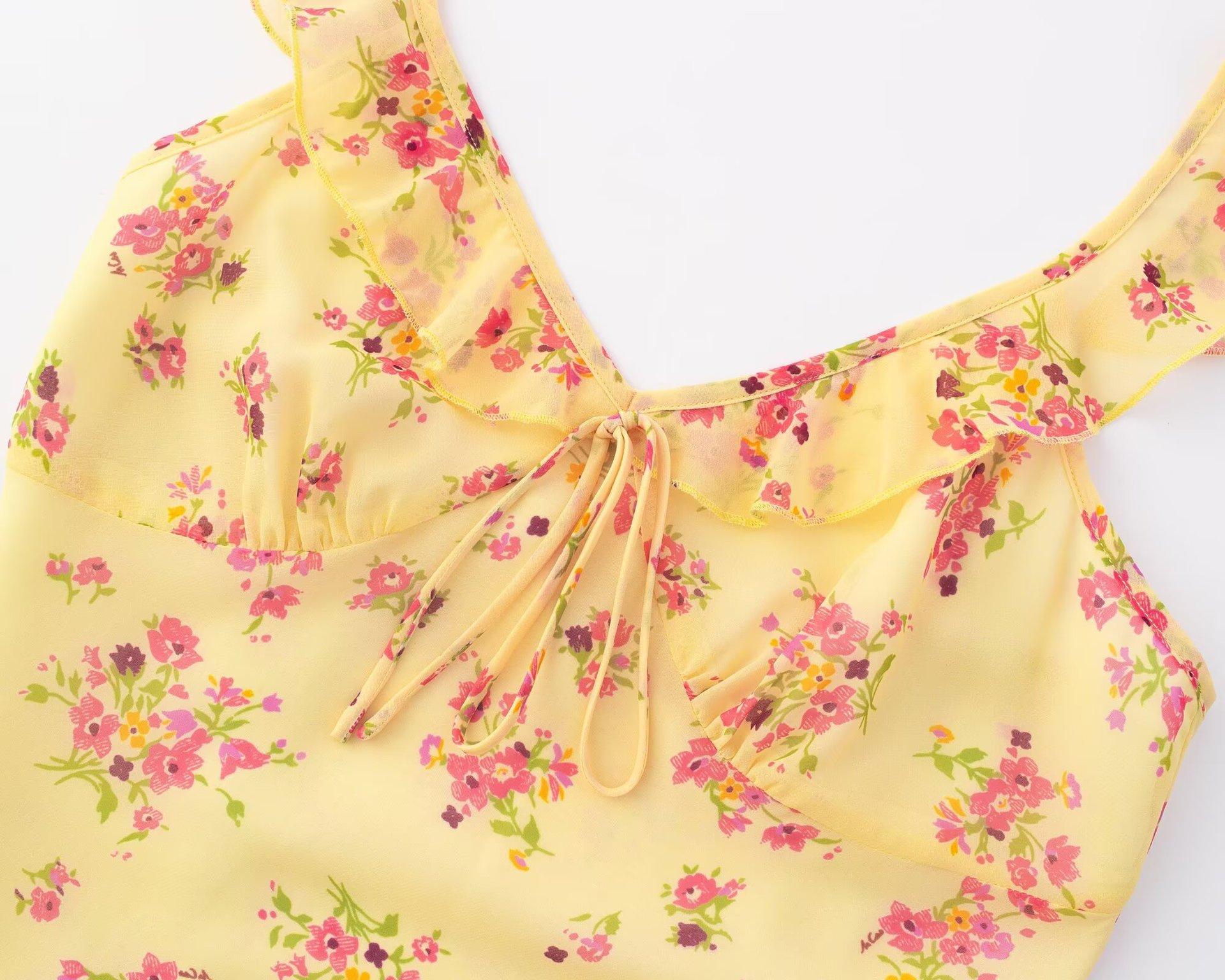 25169-Vestido Sexy Sexy sin Mangas Estilo Europeo y Americano para Mujer 2025 Nuevo Look Delgado Adelgazante Floral Falda de Cadera