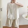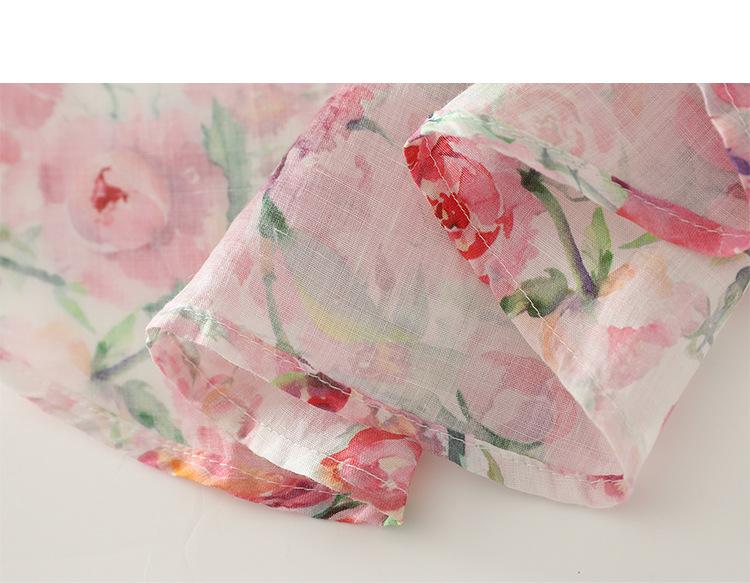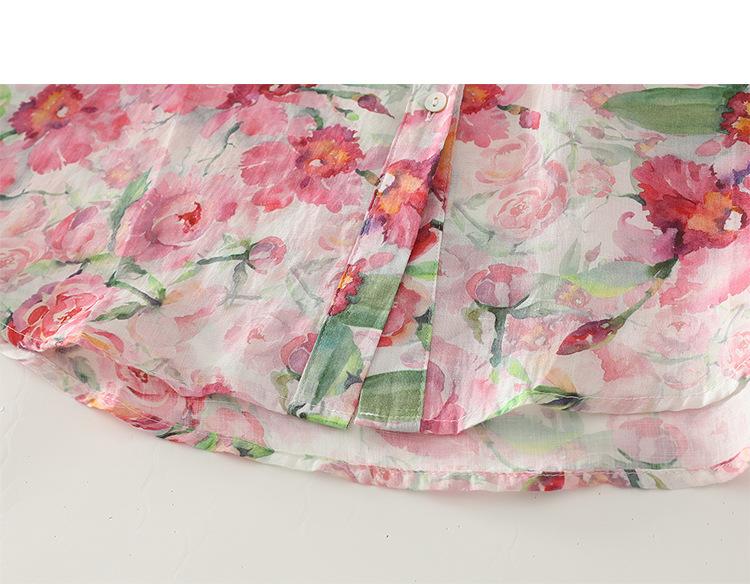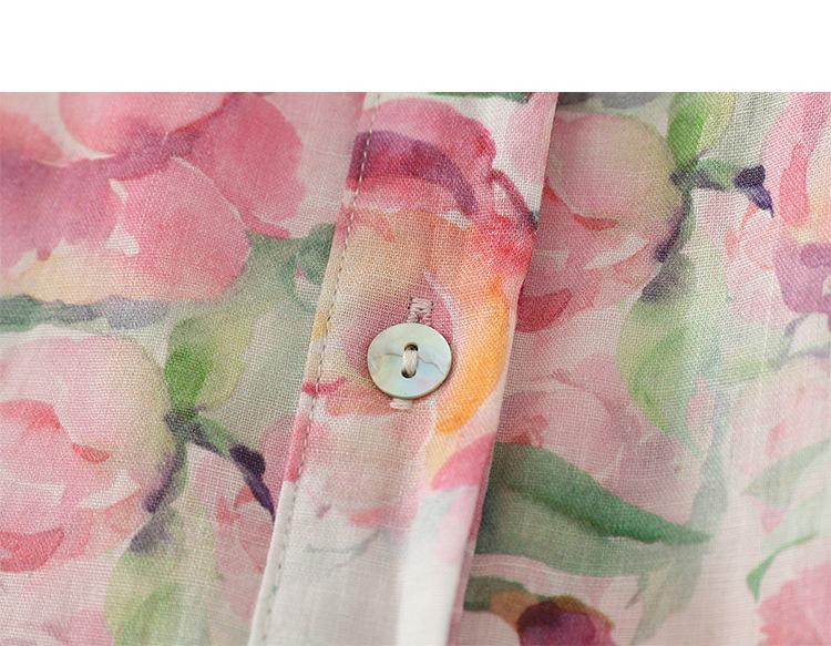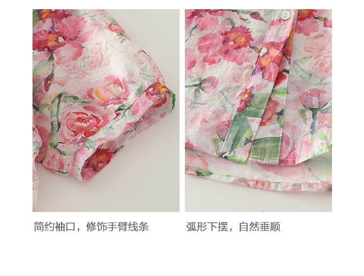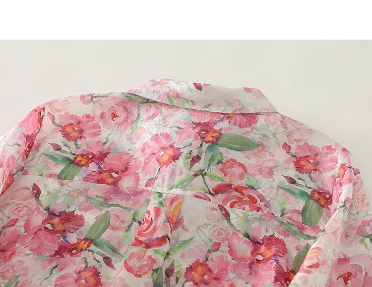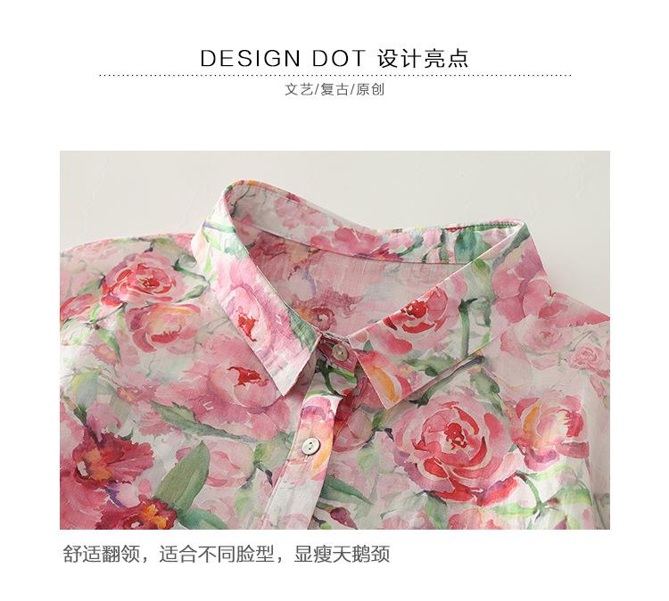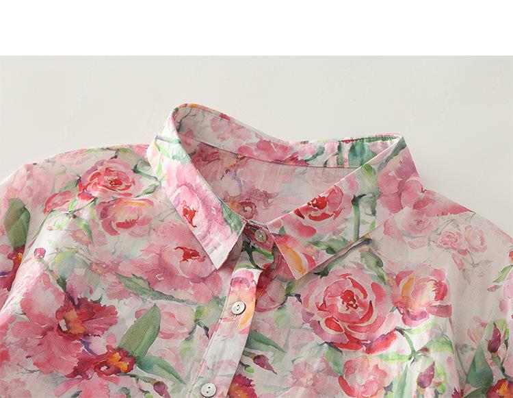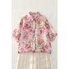Foto real de camisa delgada rosa floral lista para usar 2025, camisa estampada de manga corta, holgada y versátil para mujer
