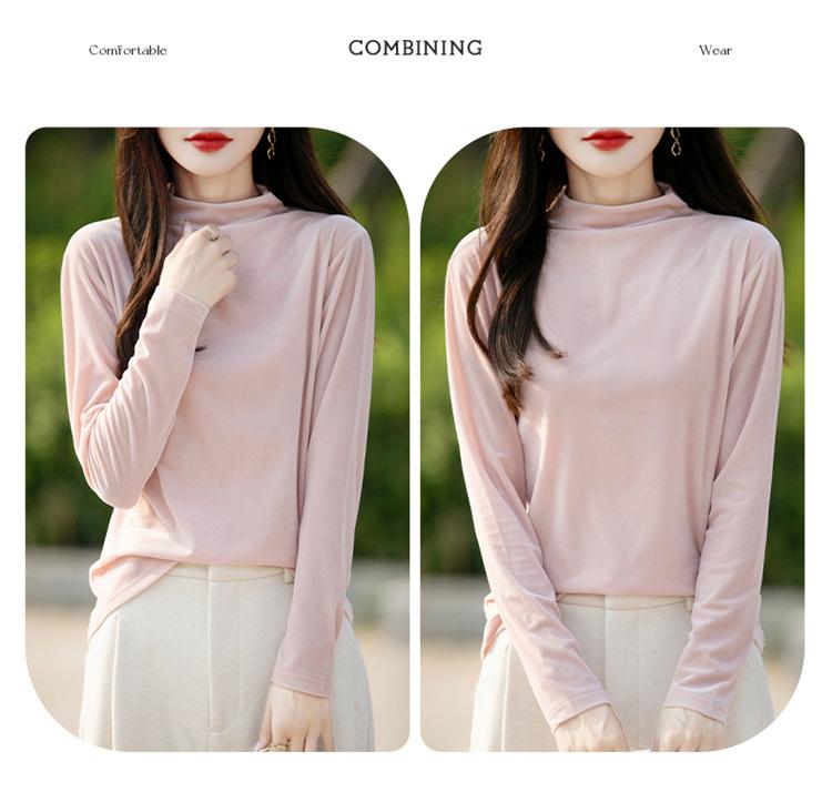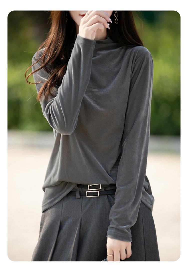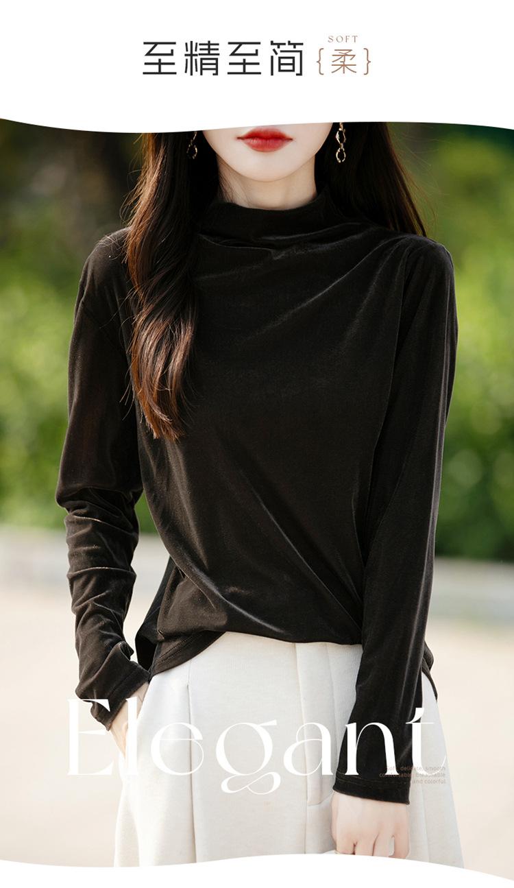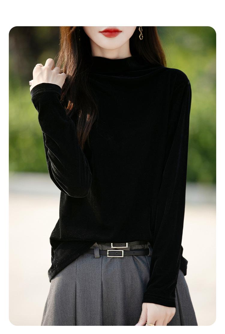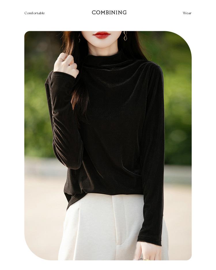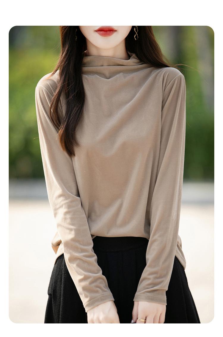 Suéter de primavera y verano 2025 nuevo de terciopelo dorado con cuello de pelo manga larga color sólido holgado jersey básico top para mujer
