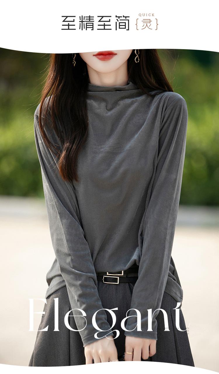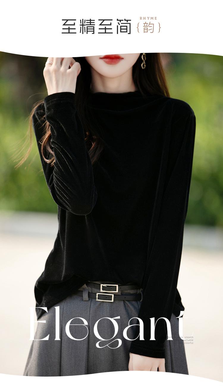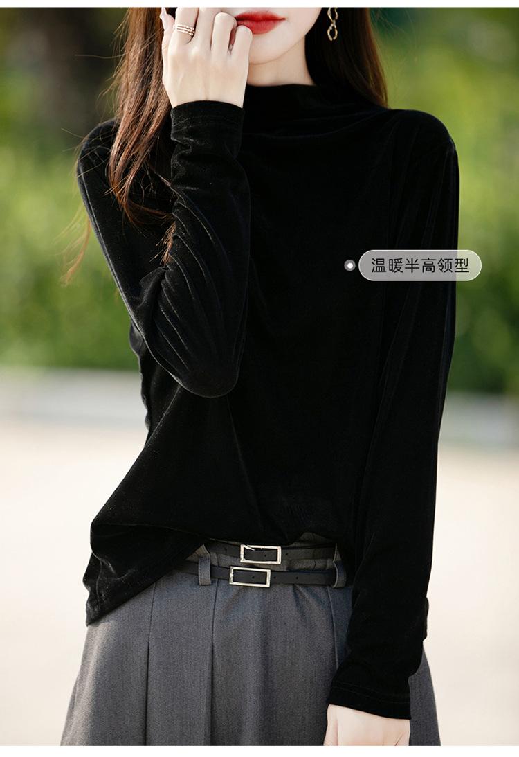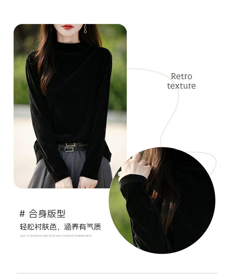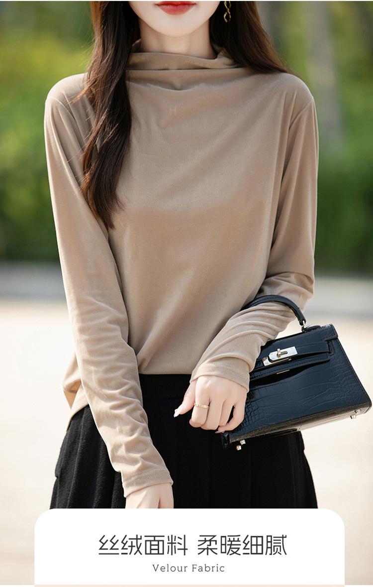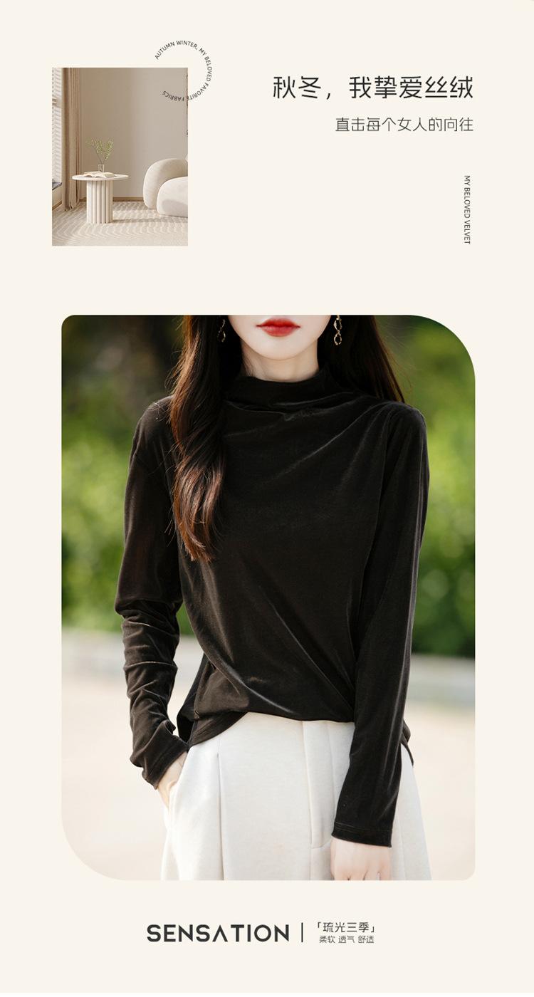 Suéter de primavera y verano 2025 nuevo de terciopelo dorado con cuello de pelo manga larga color sólido holgado jersey básico top para mujer
