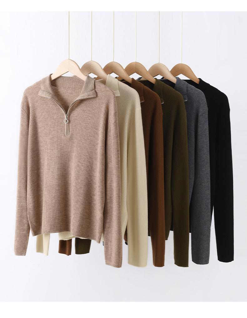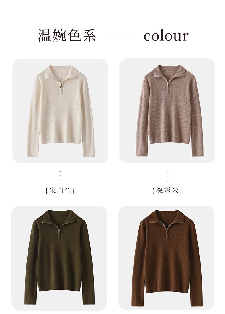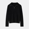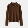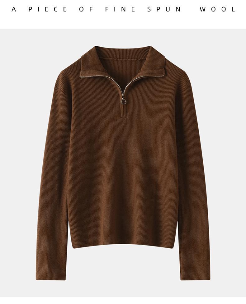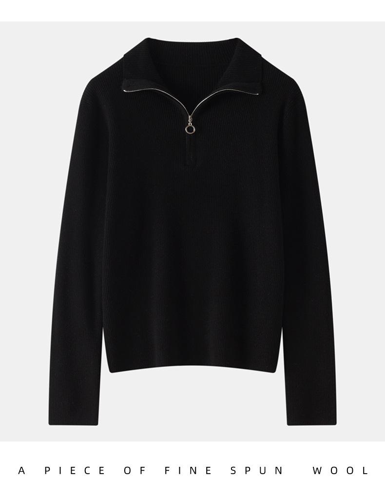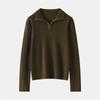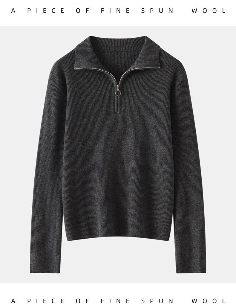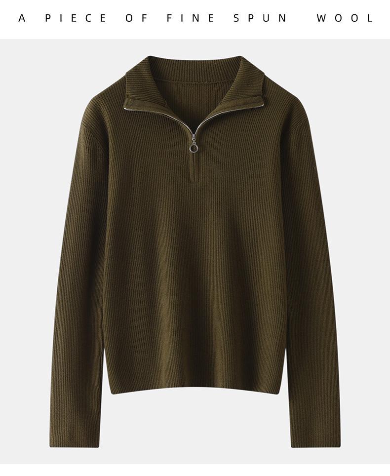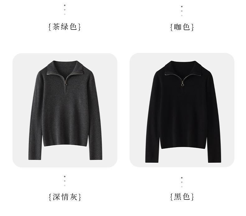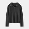 Suéter de estilo otoño e invierno 100% lana para mujer, cuello vuelto, media cremallera, suéter de cachemira grueso, tejido holgado, suéter de punto de manga larga