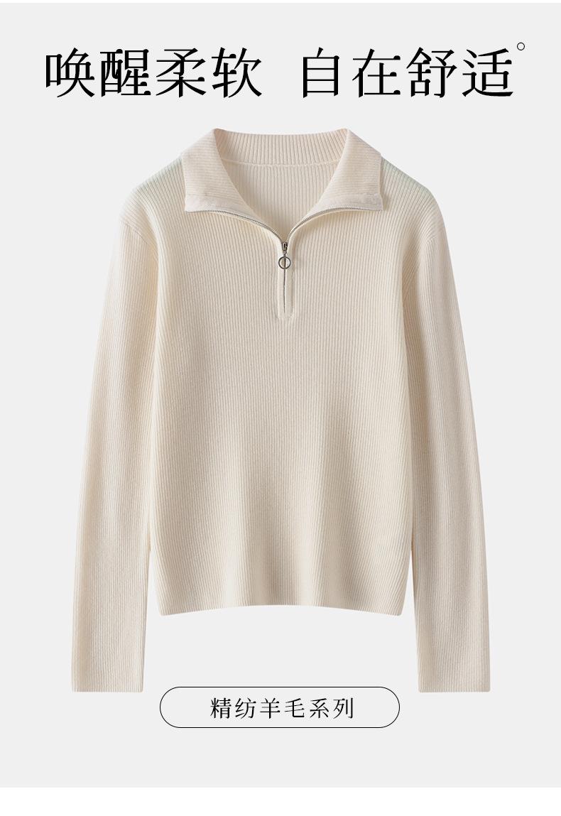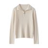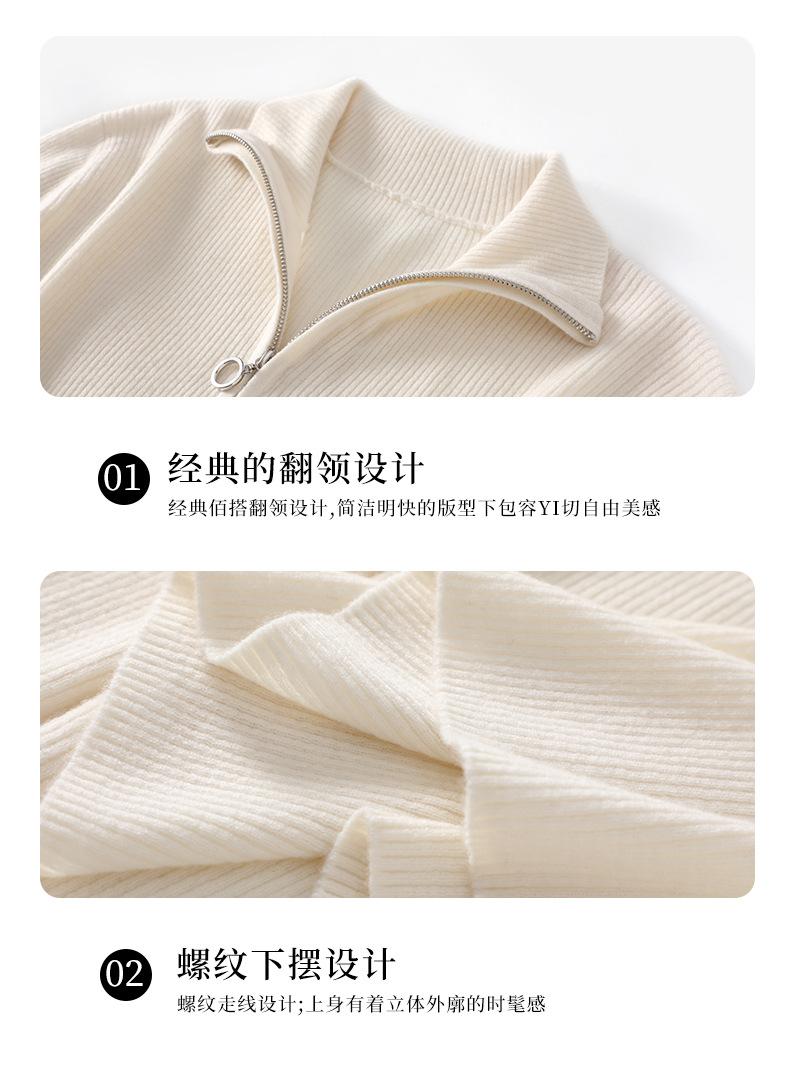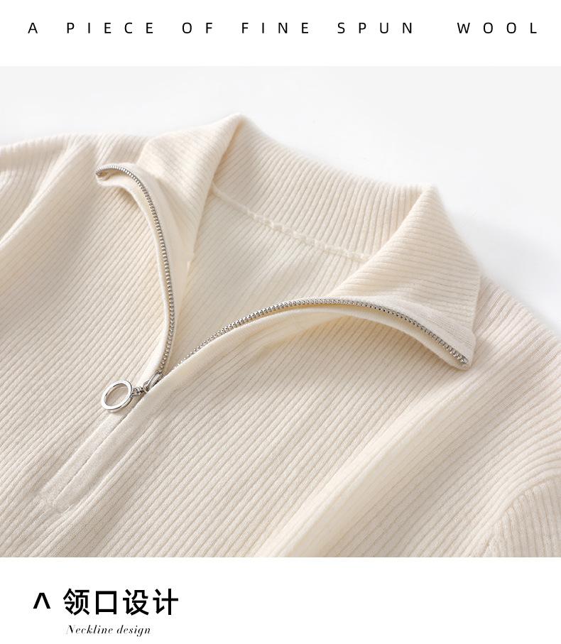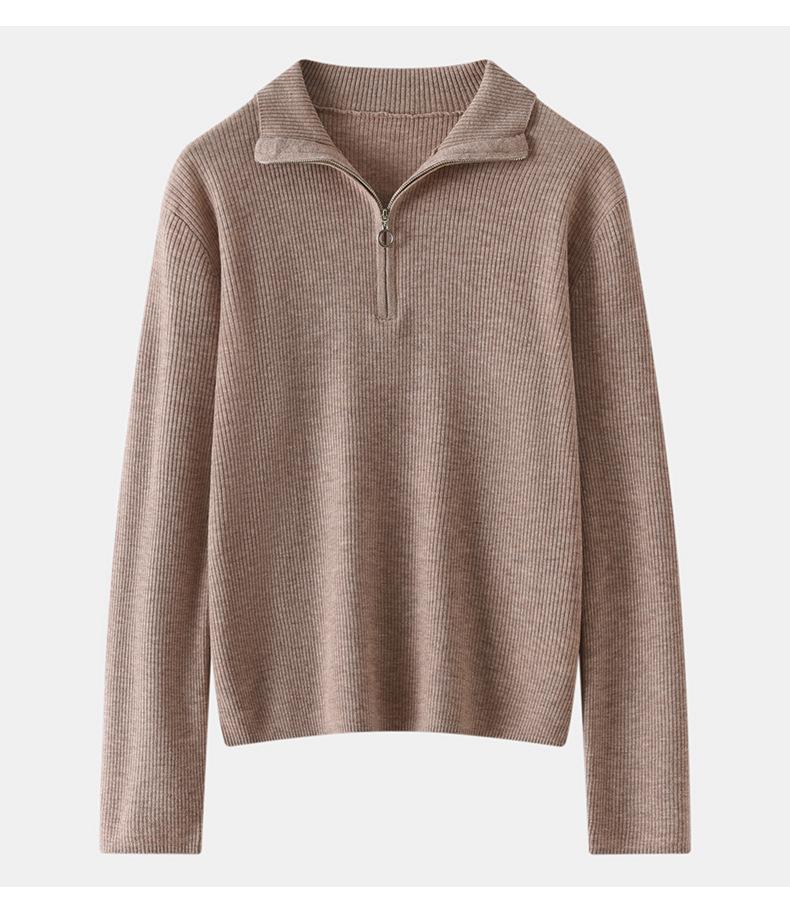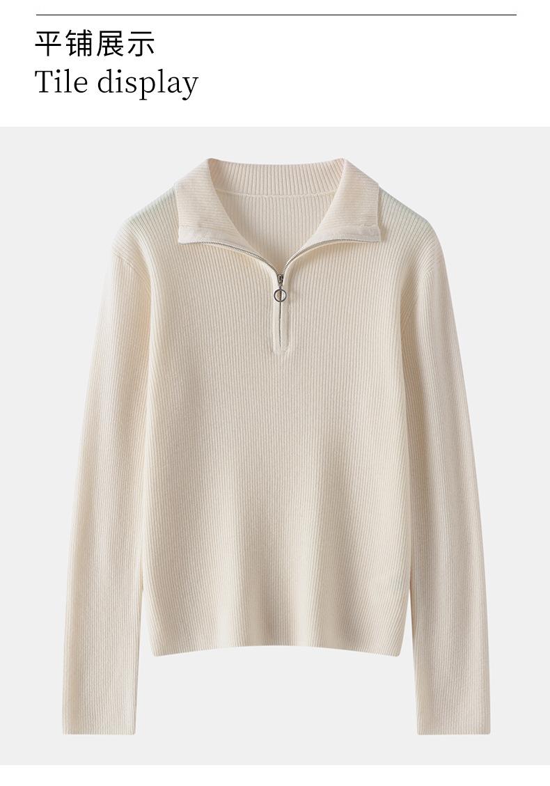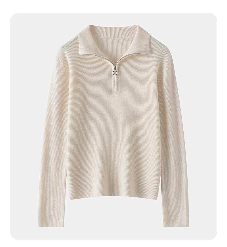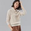 Suéter de estilo otoño e invierno 100% lana para mujer, cuello vuelto, media cremallera, suéter de cachemira grueso, tejido holgado, suéter de punto de manga larga