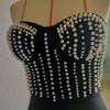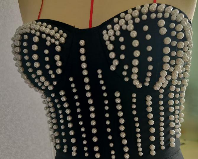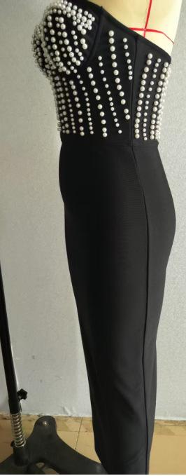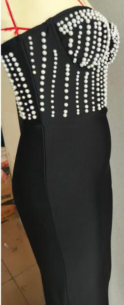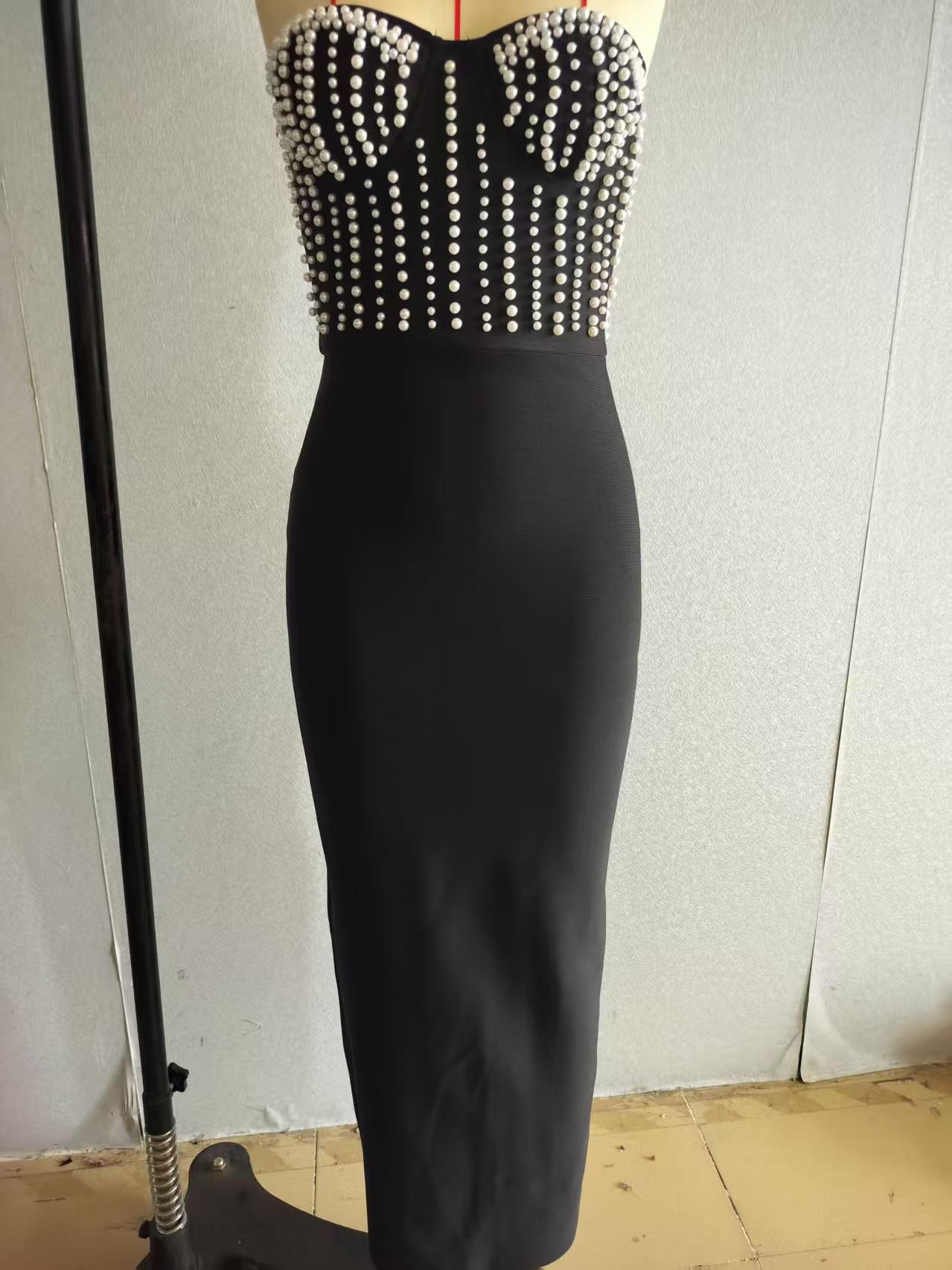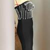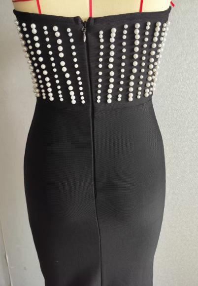 Vestido de tubo sexy con perlas de moda europea y americana transfronteriza 2025, vestido vendaje ajustado de cintura alta