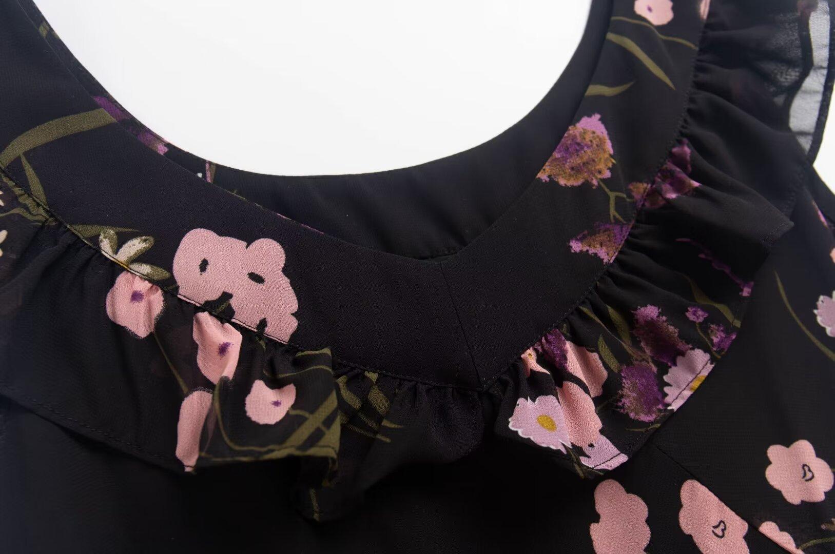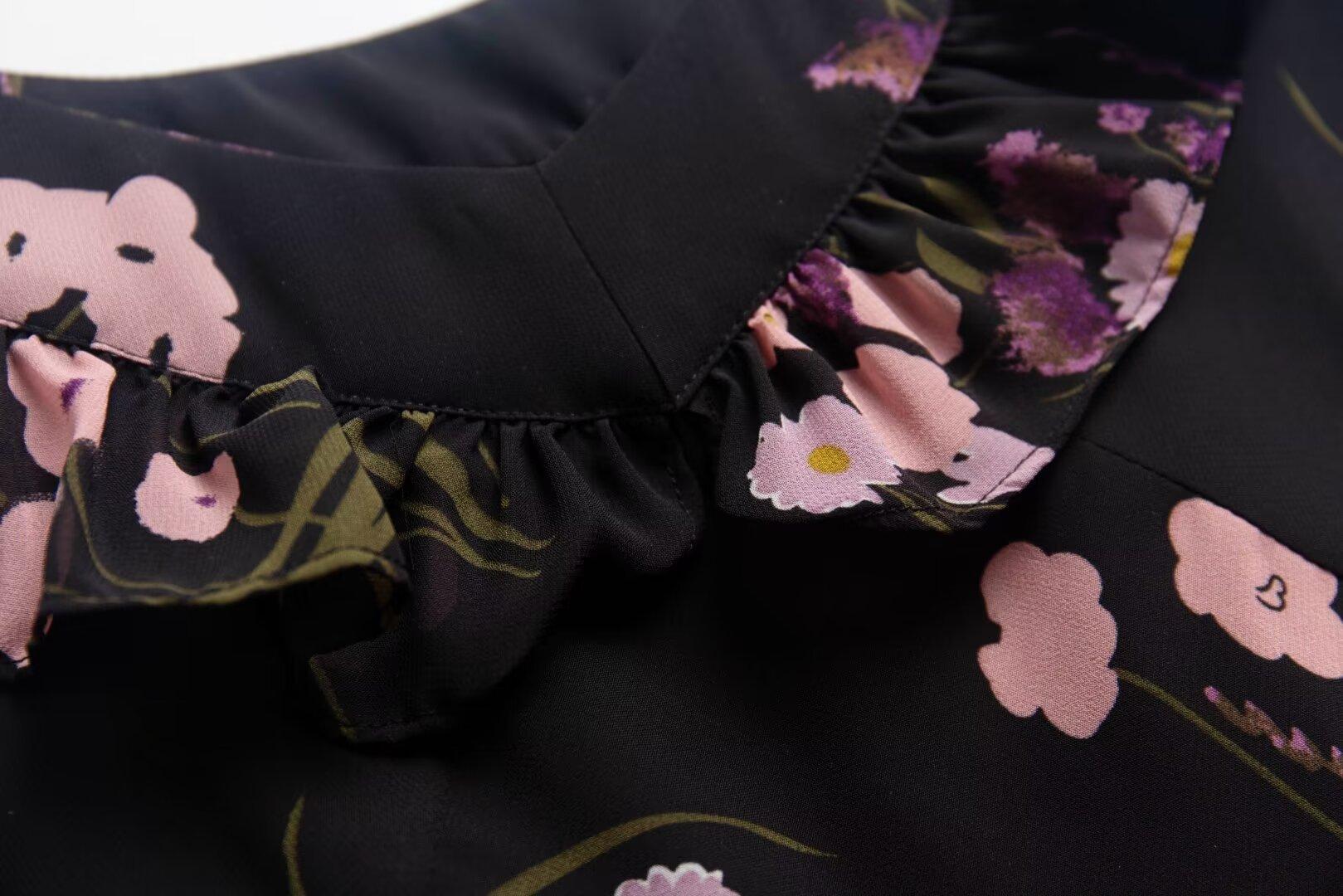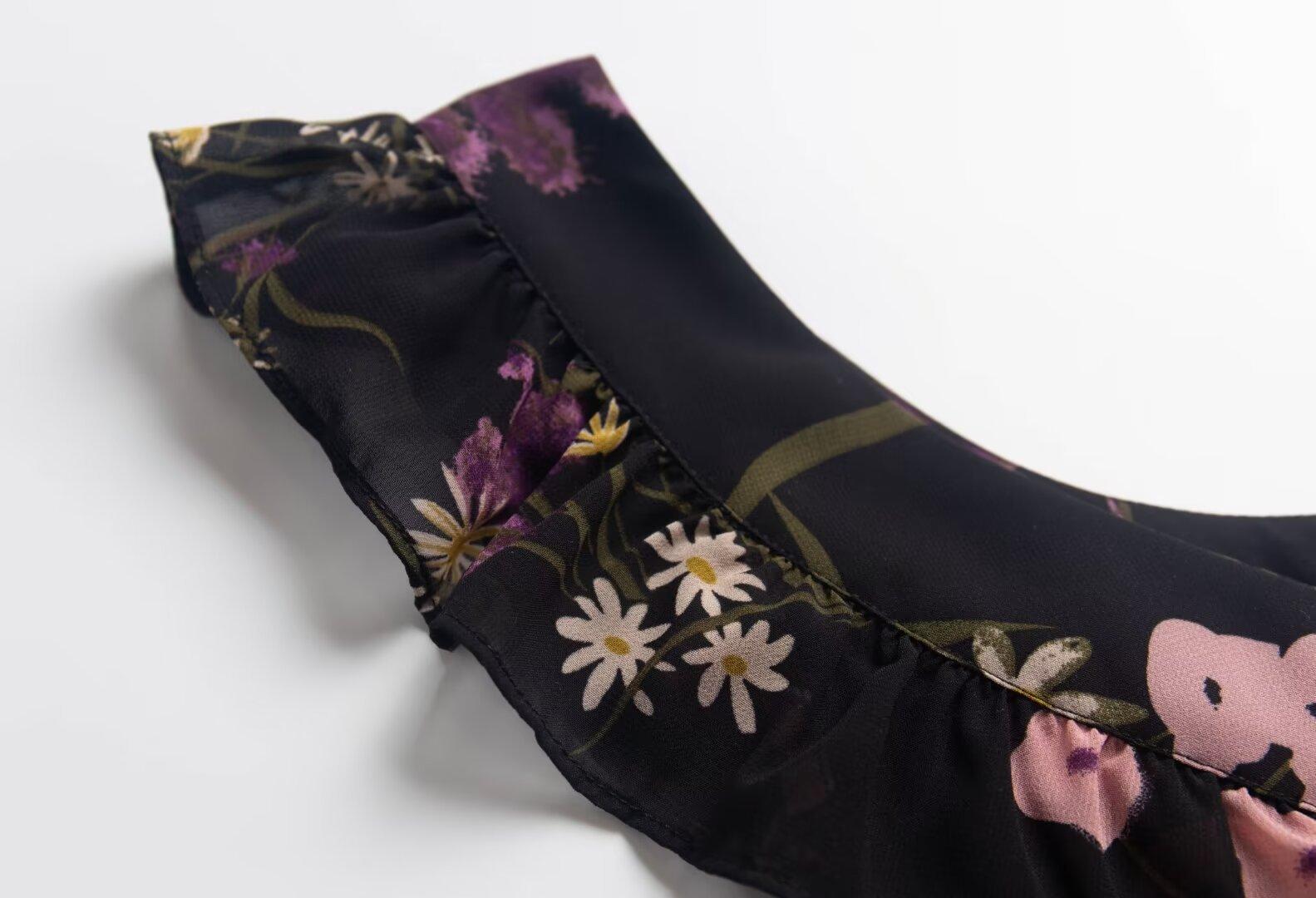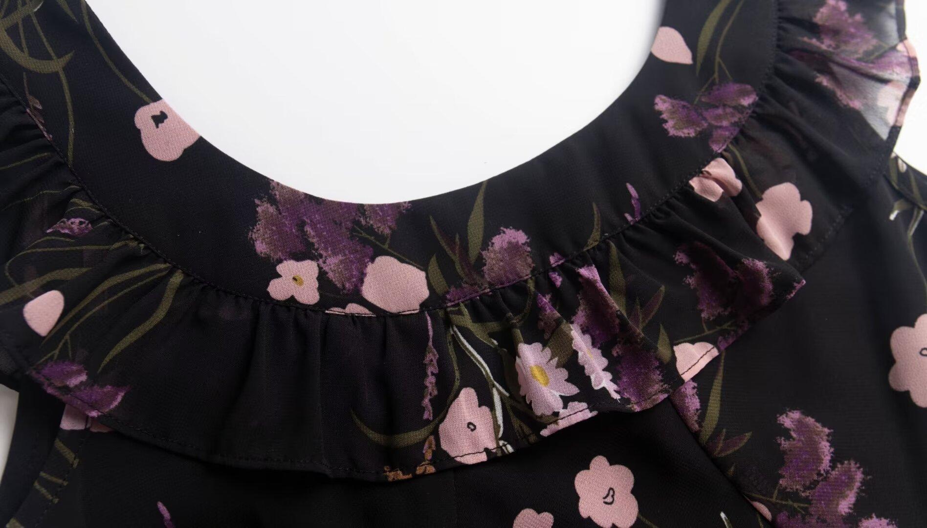 Diseño Cuello en V con Adorno de Orejas Falda Dos Usos con Fondo para vestido Mujer Estilo Francés Retro Estampada Ajustada con Cordones Falda Midi