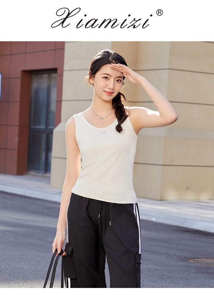 Chaleco pequeño estilo americano con tirantes para mujer Verano 2025 Nuevo estilo Espalda hermosa Interior Ajustado Ajustado Top deportivo básico para uso exterior