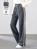 Pantalones grises de cupro de pierna ancha para mujer, estilo delgado de pierna estrecha, nuevos 2025, pantalones rectos de talle alto, pantalones deportivos casuales drapeados