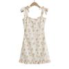 Europeo y Americano 2022 Verano Nuevo Estilo Francés Vintage Estampado Floral Ajustado Sexy Abertura Lateral Tirantes Vestido
