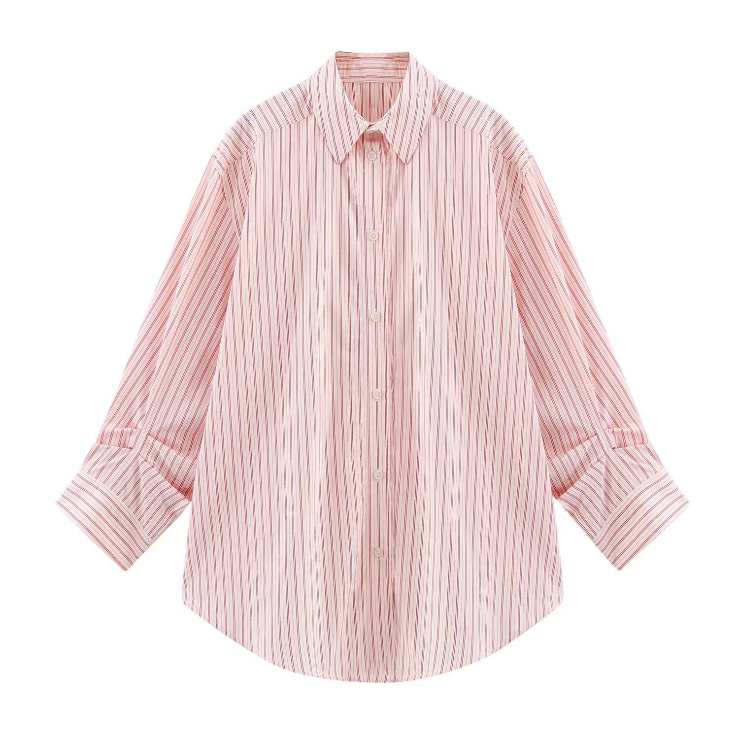 Transfronterizo Europeo y Americano Aliexpress Popular Moda Simple Casual Versátil Suelto Camisa Rayada