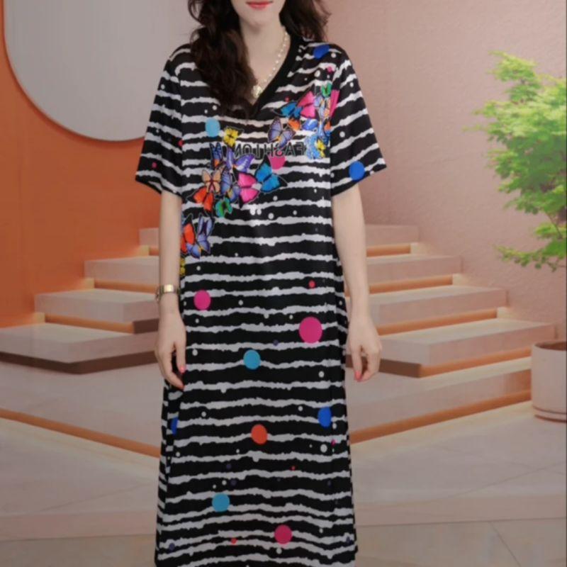 Vestido Largo de Verano 2025 Versátil con Corte Slim y Cuello en V