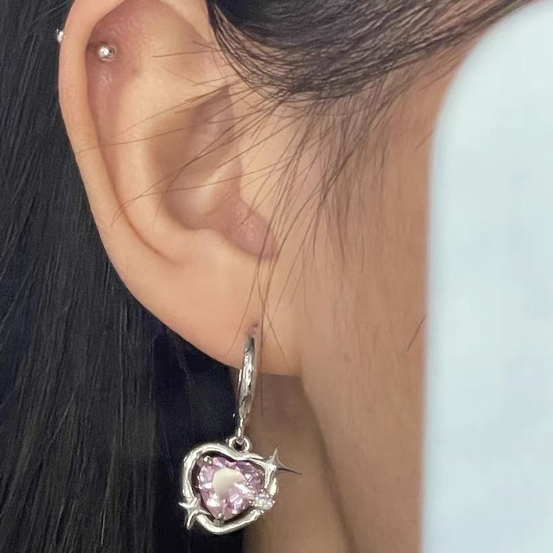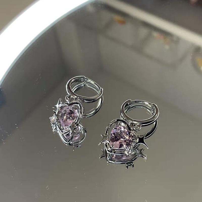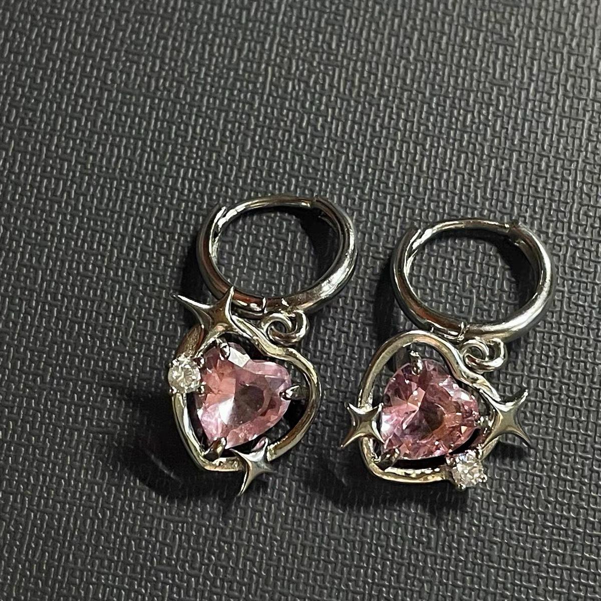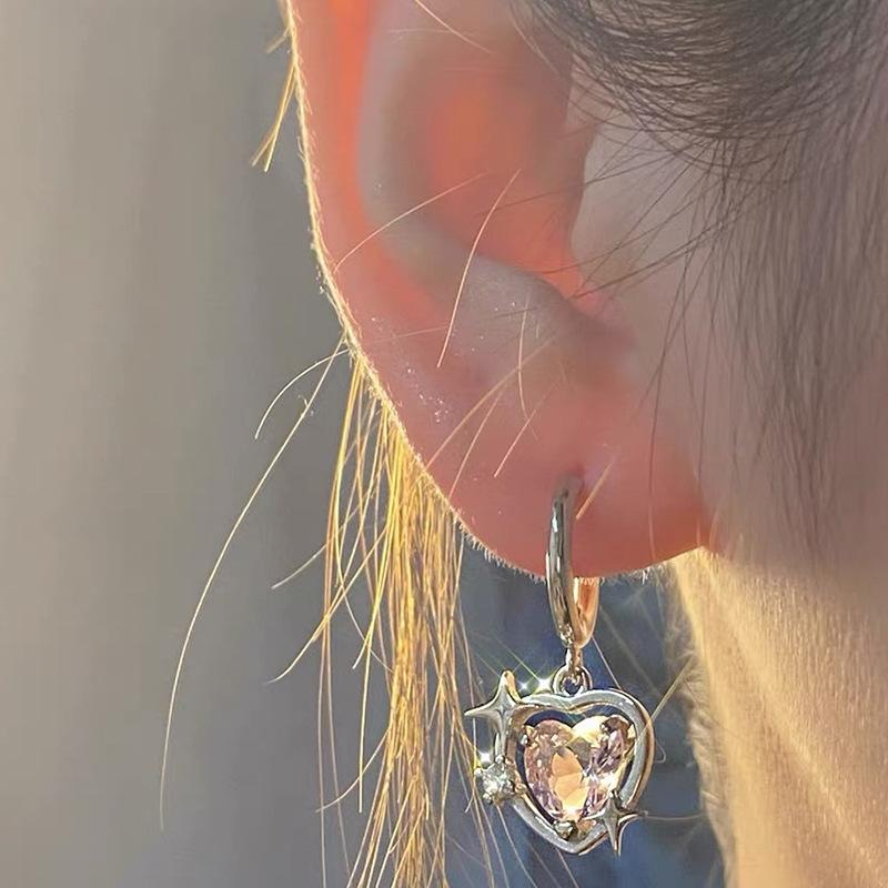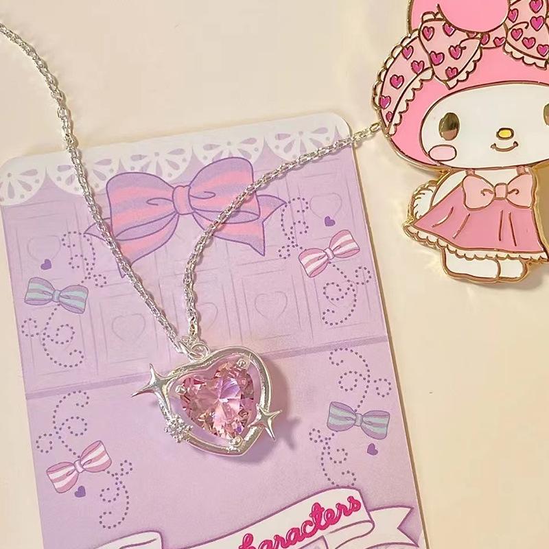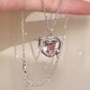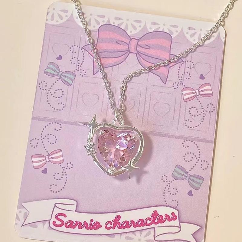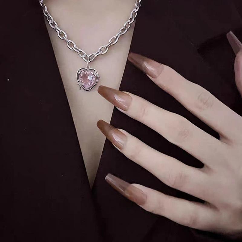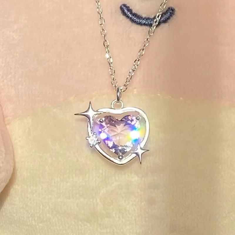 Collar Corazón Galaxia Durazno Transfronterizo para Mujer, Estilo Nicho de Lujo Ligero con Incrustaciones de Zirconia, Cadena Barbie para Clavícula, Mismo Estilo que en Xiaohongshu
