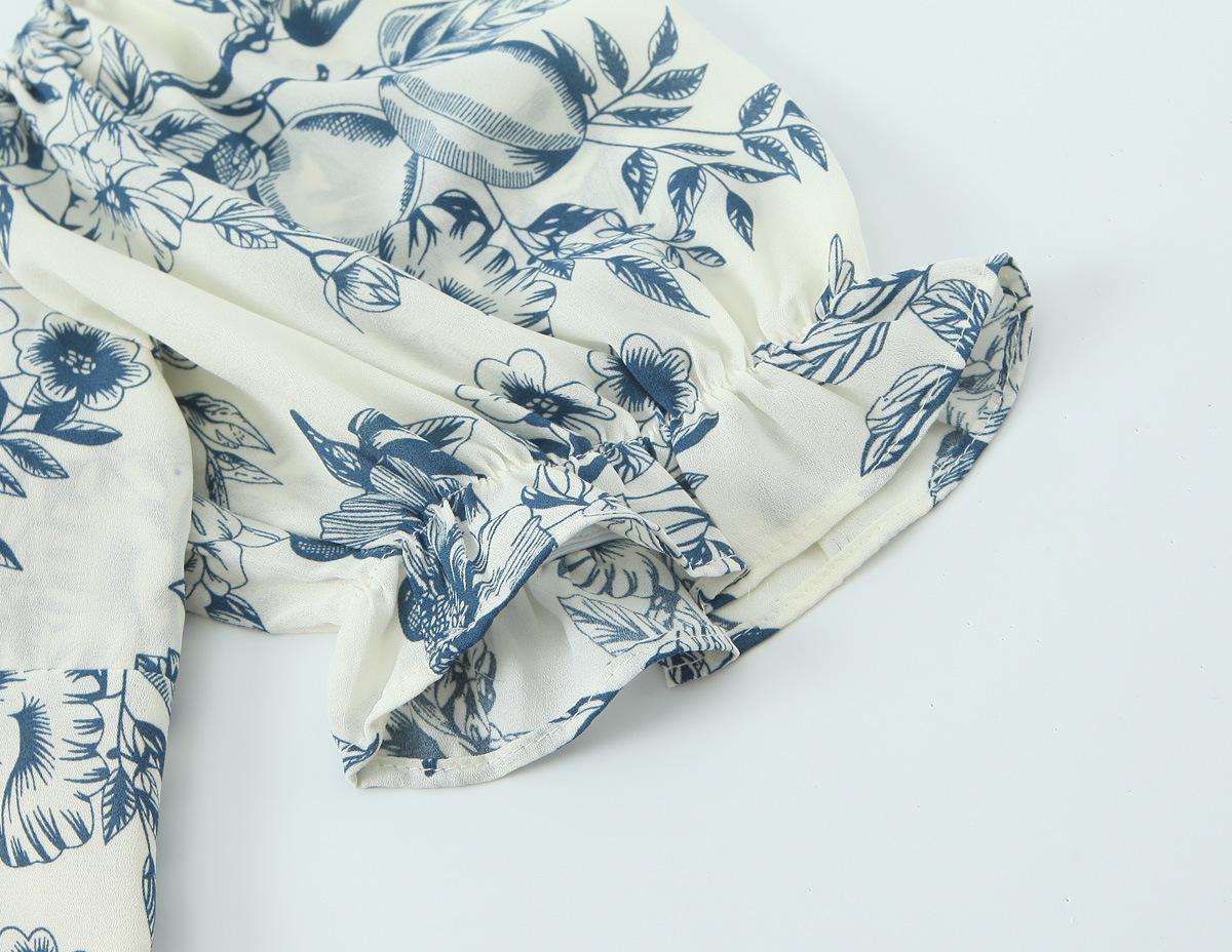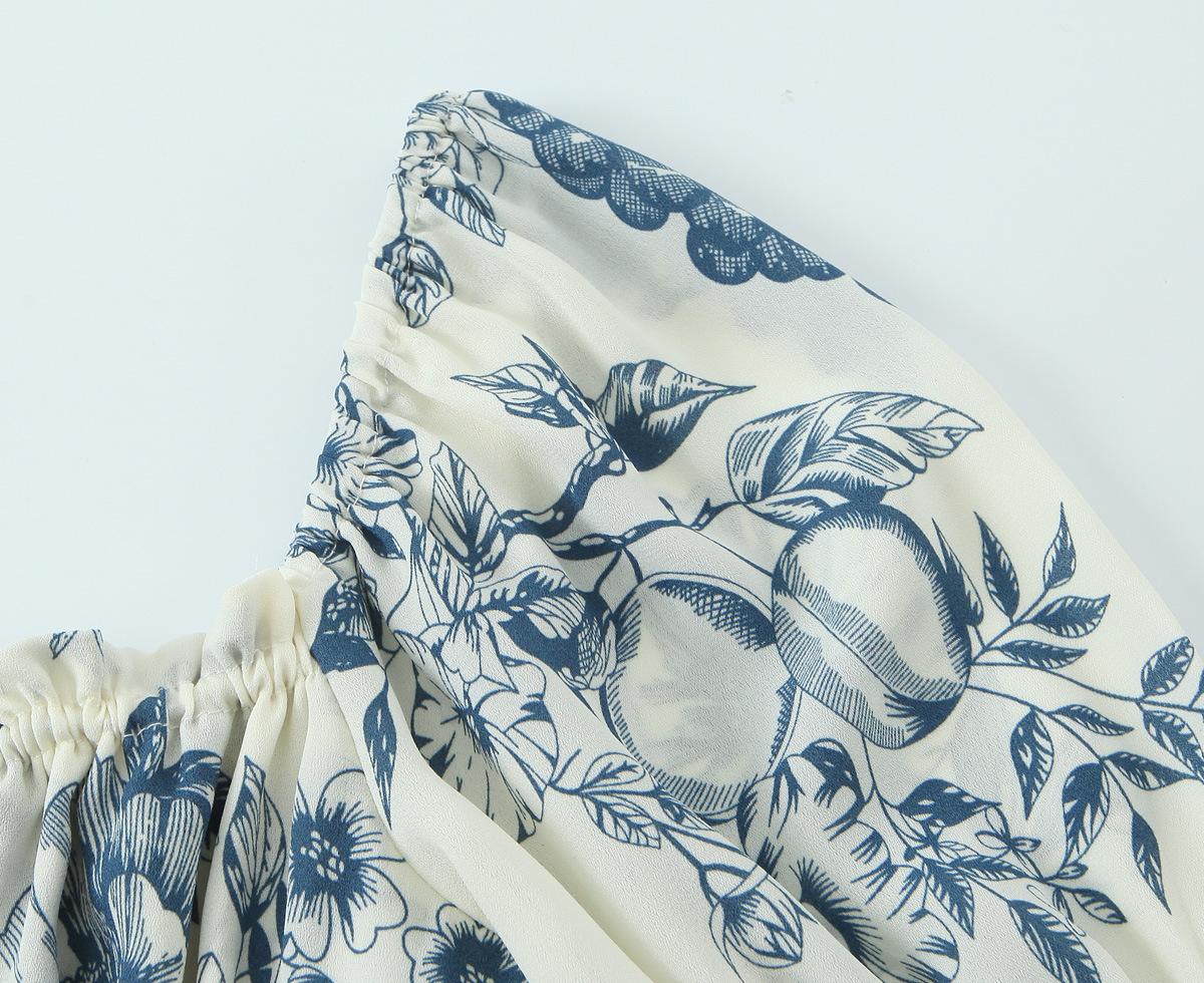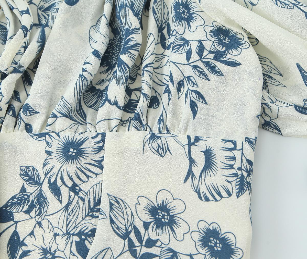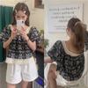 7700-25 Nuevo Estilo de Verano Retro Francés Estampado Floral Lazada con Cordones Sexy Dos Usos Camisa Manga Abullonada