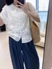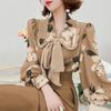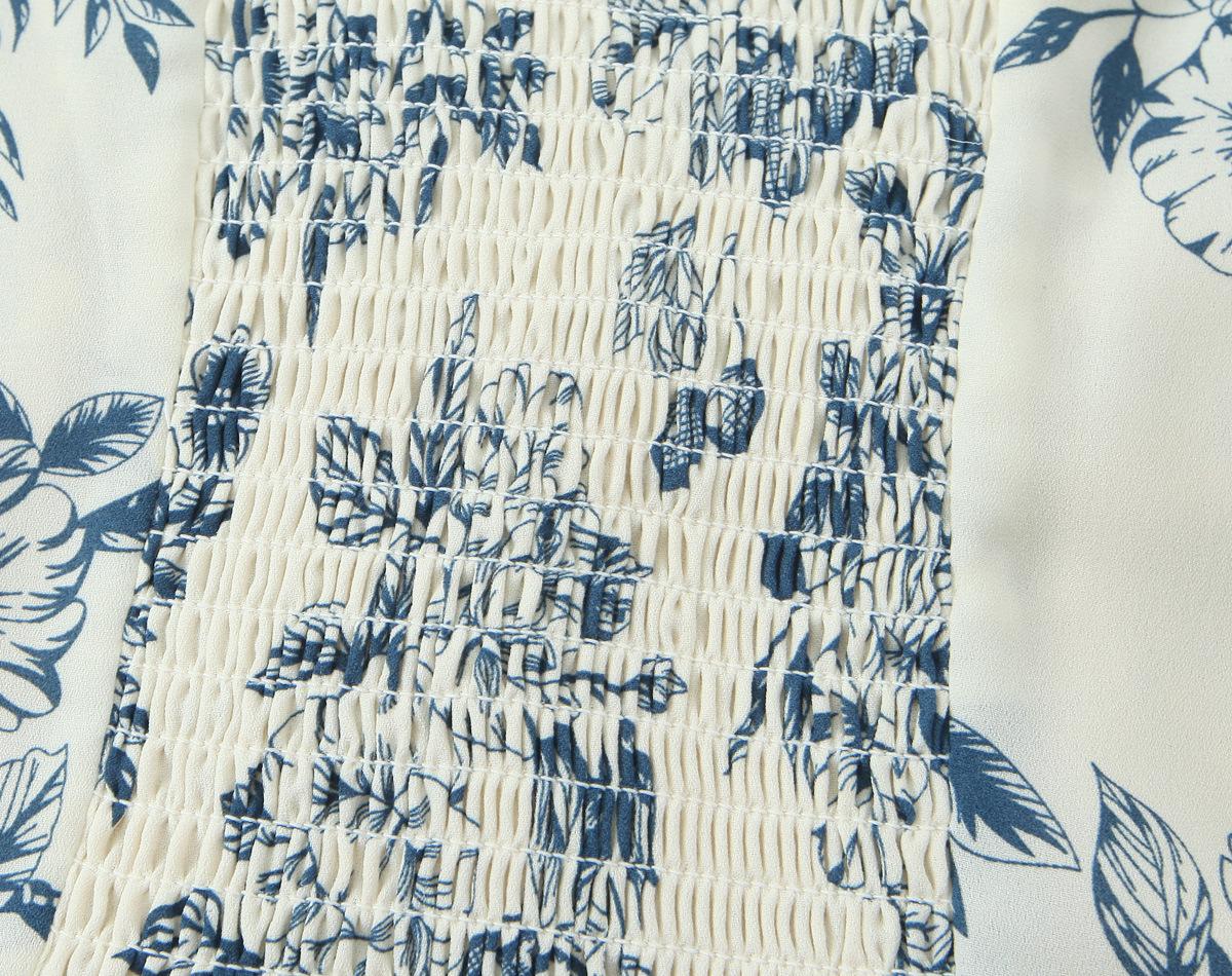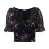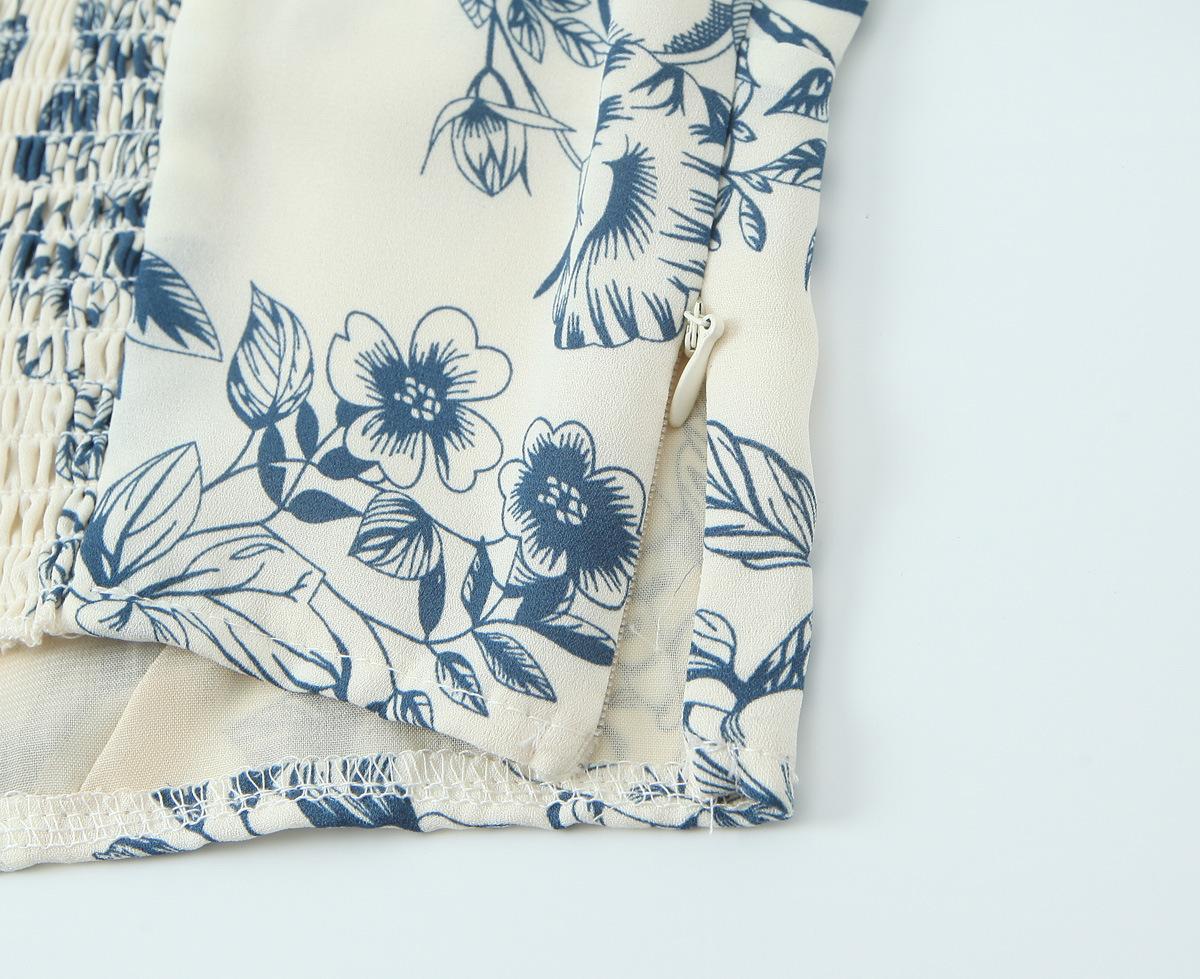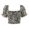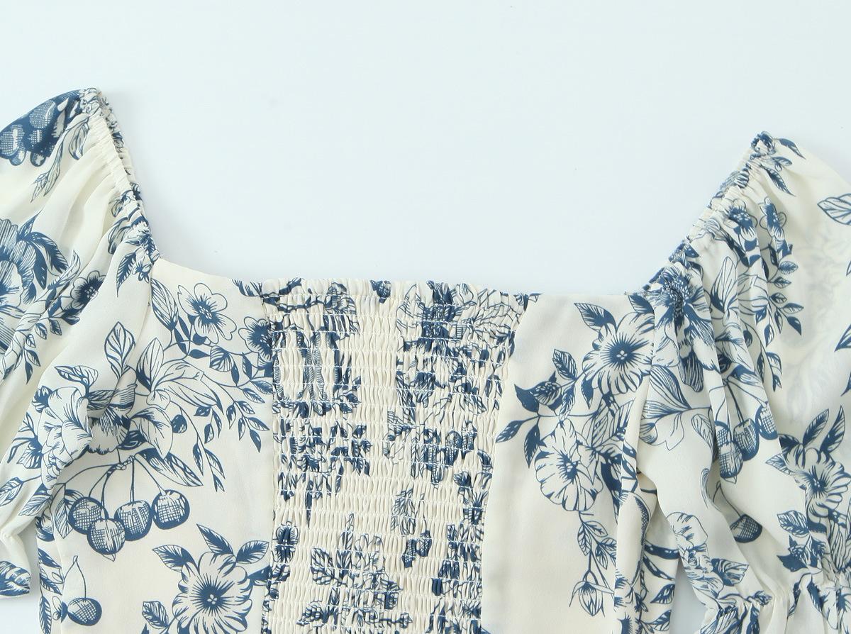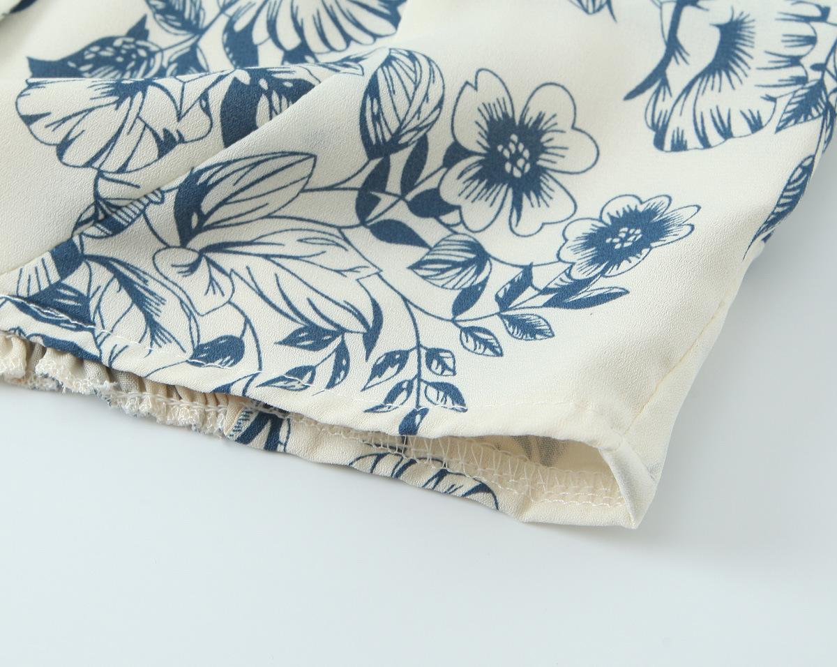 7700-25 Nuevo Estilo de Verano Retro Francés Estampado Floral Lazada con Cordones Sexy Dos Usos Camisa Manga Abullonada