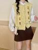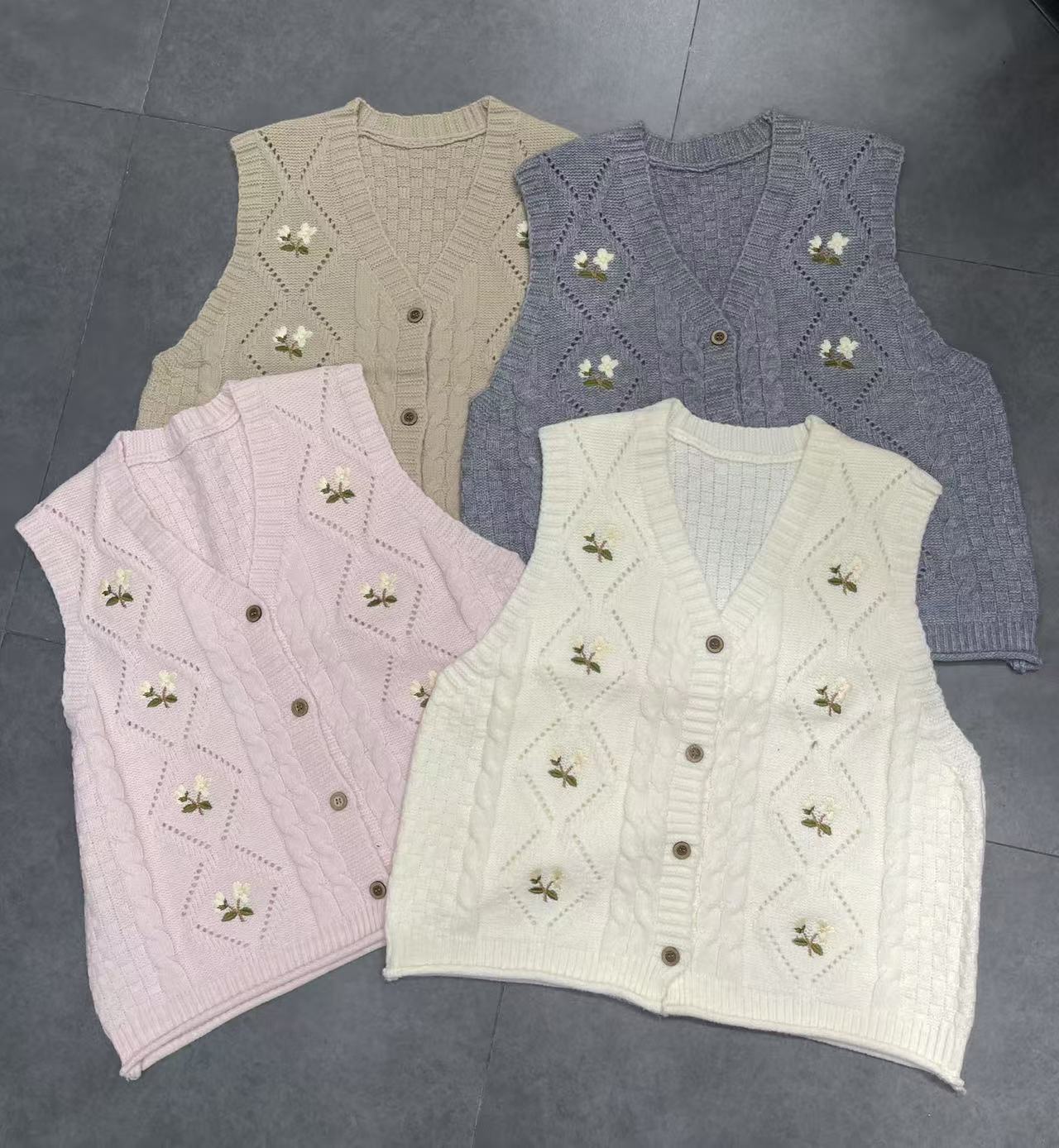 Cárdigan de Punto Retro con Cuello en V Otoño 2025 Nuevo Chaleco Suéter de Hilo de Algodón Bordado Literario Chaleco sin Mangas