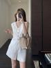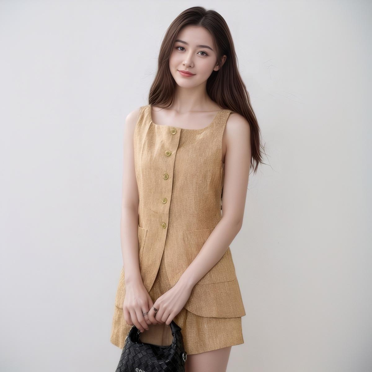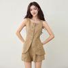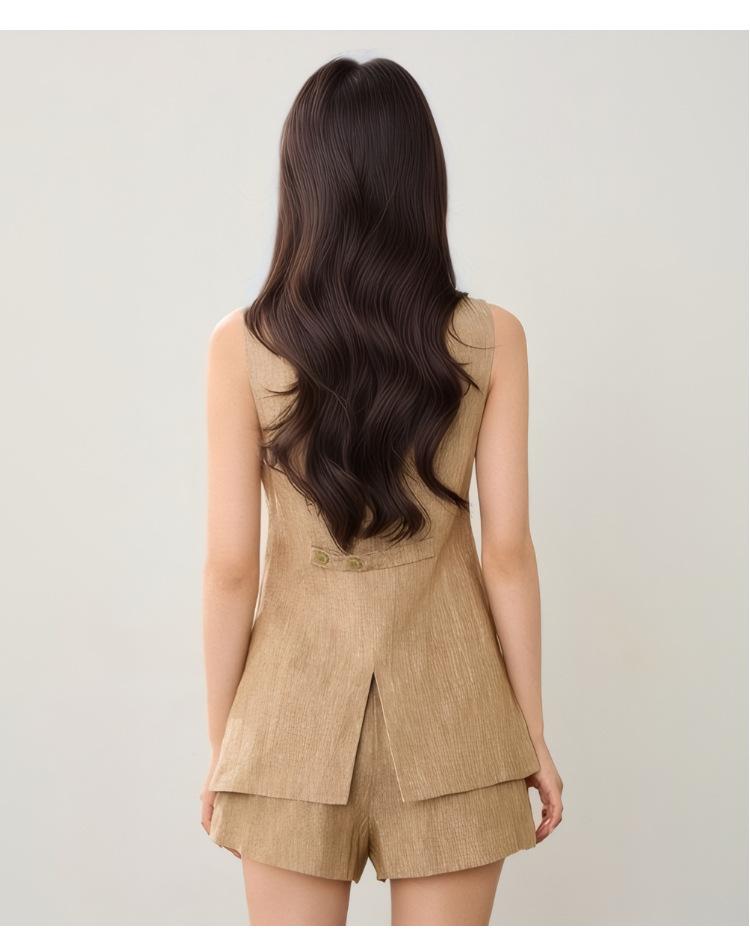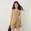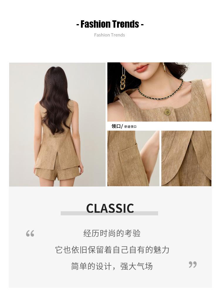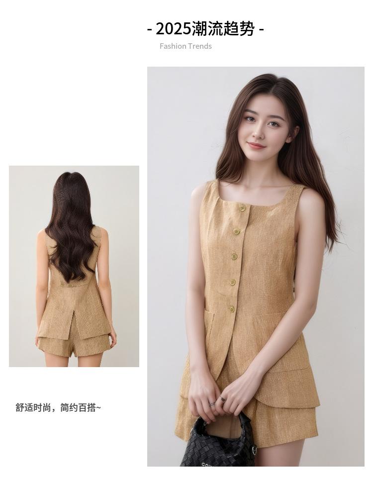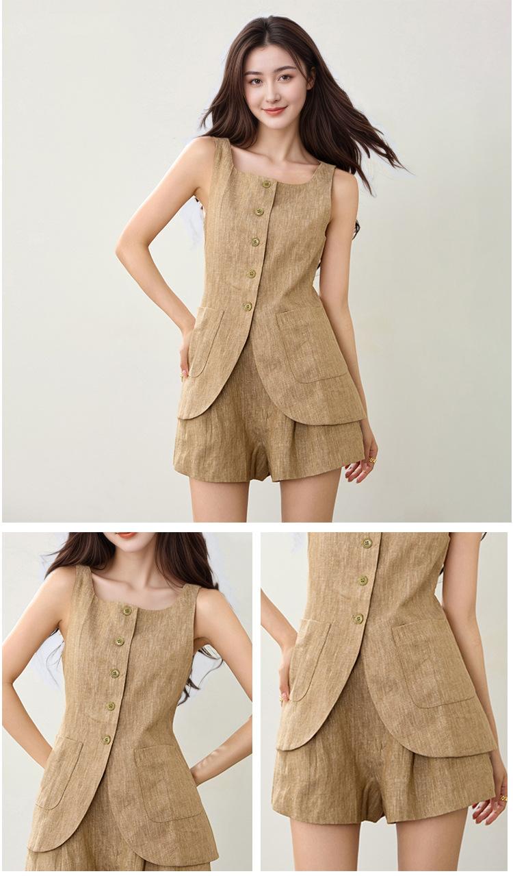 2025 Verano Nuevo Estilo Old Money Commuter Secado Rápido Transpirable Lino Sin Mangas Cuello Cuadrado Chaleco Shorts Traje de Dos Piezas para Mujer