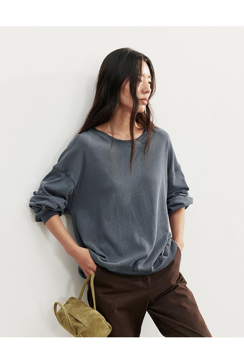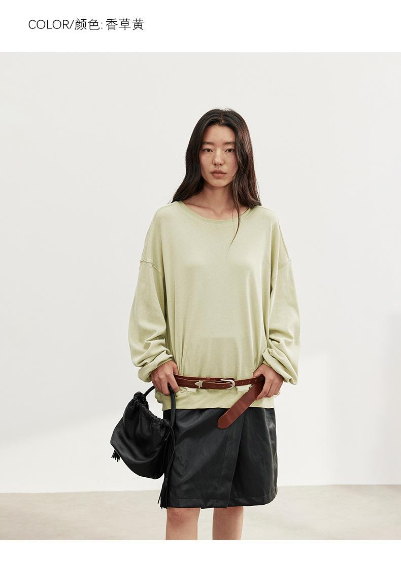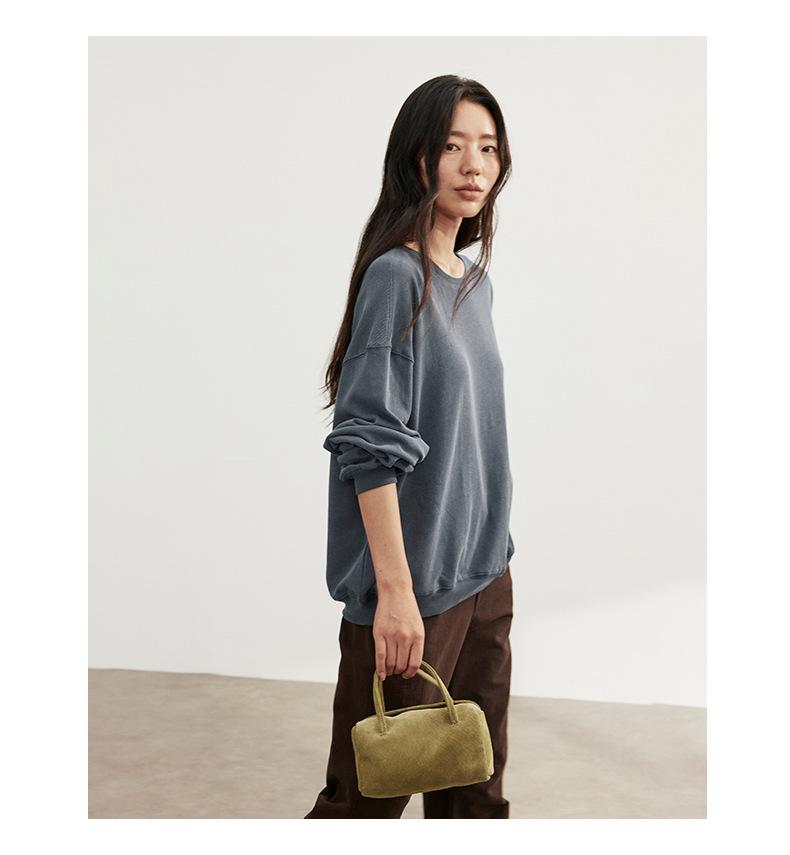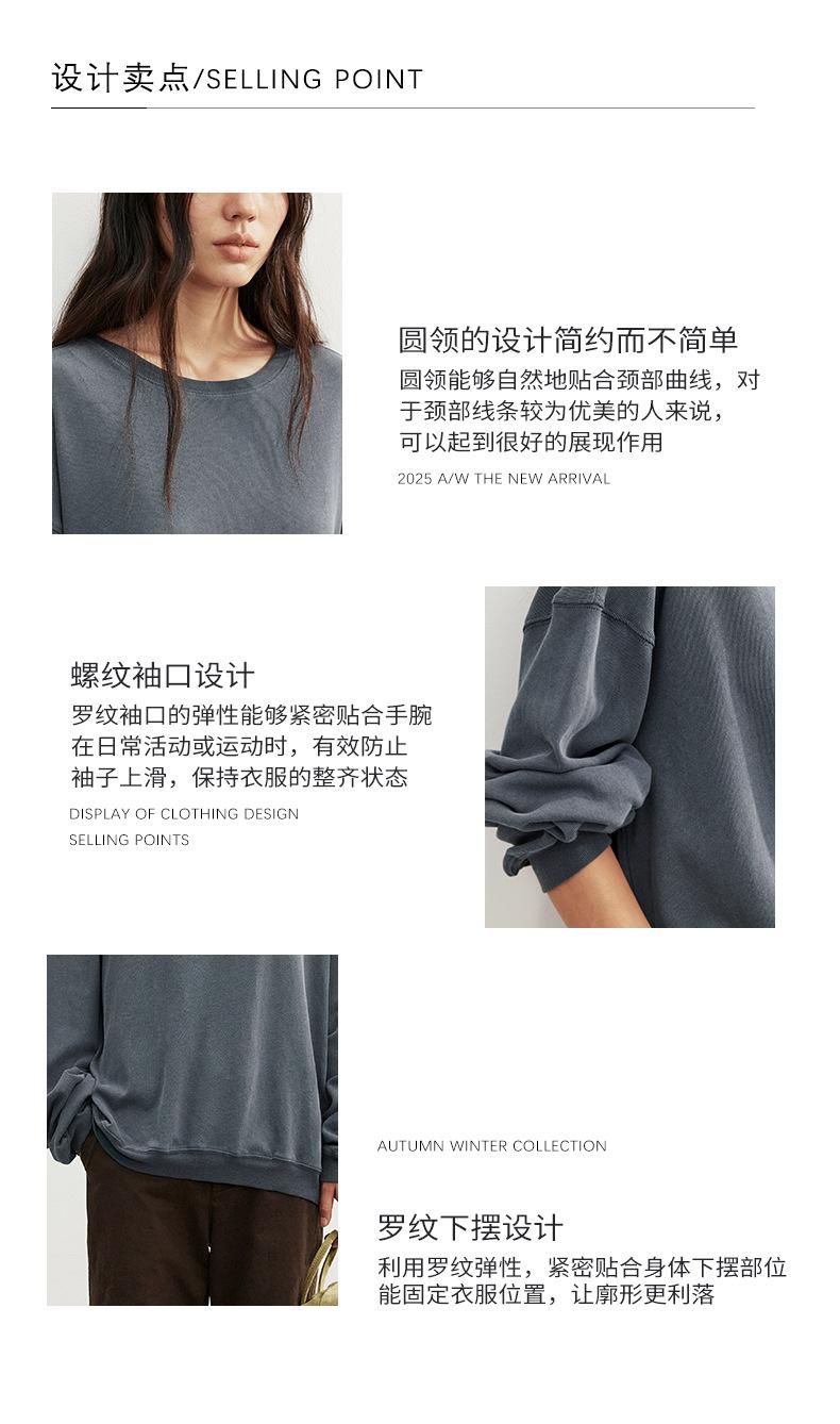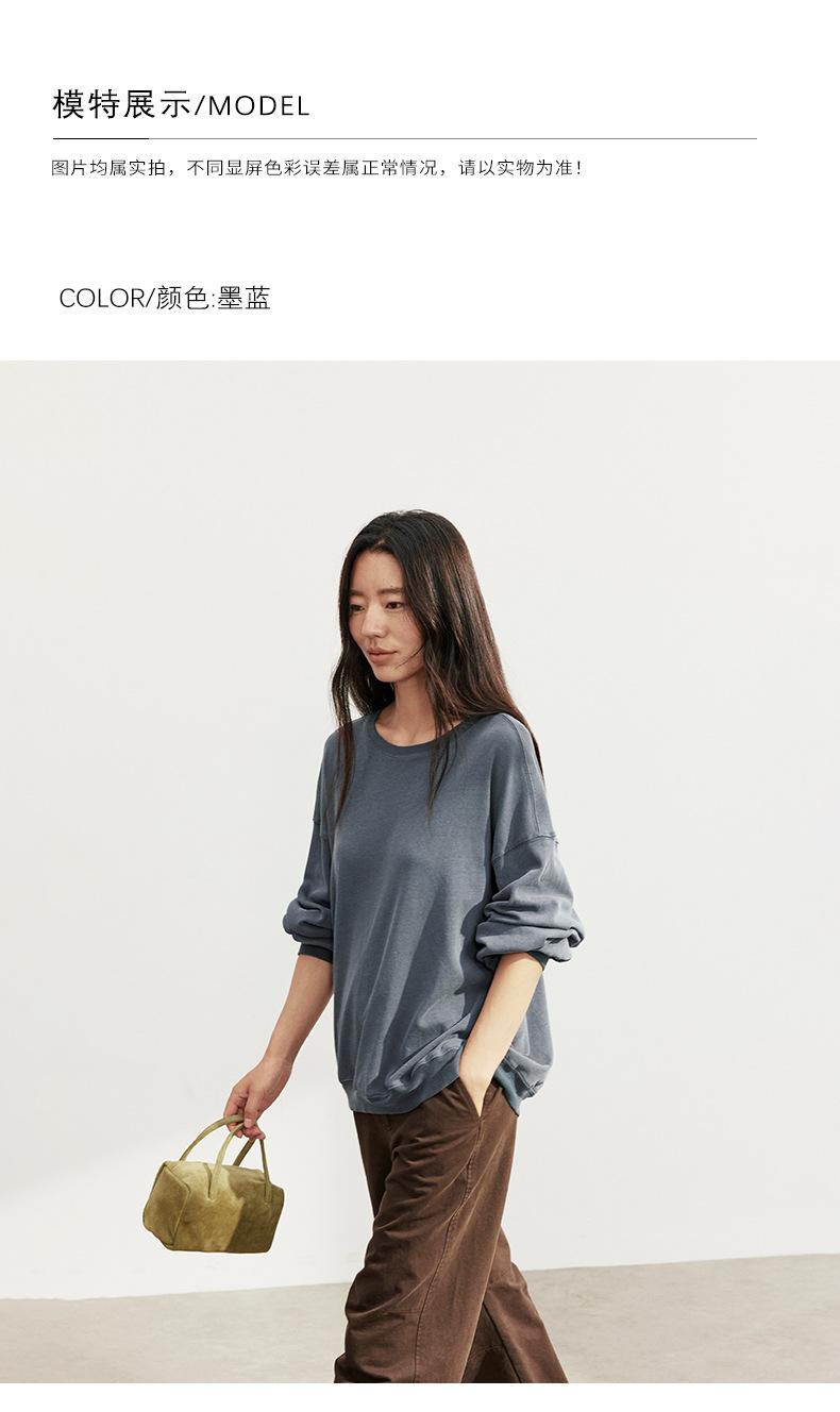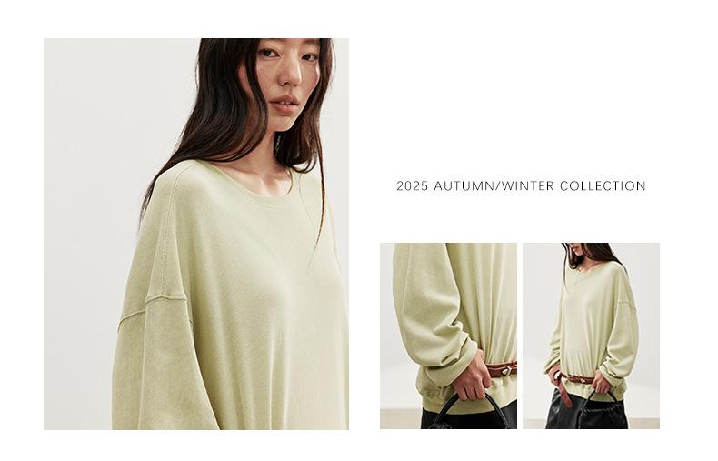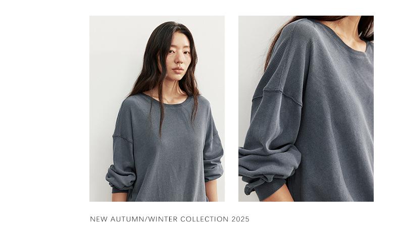 Love and Nancy Trece Líneas 2025 Otoño/Invierno Estilo Coreano Color Sólido Cuello Redondo Algodón Puro Jersey Suelto Manga Larga Sudadera 02647