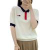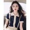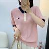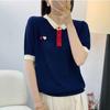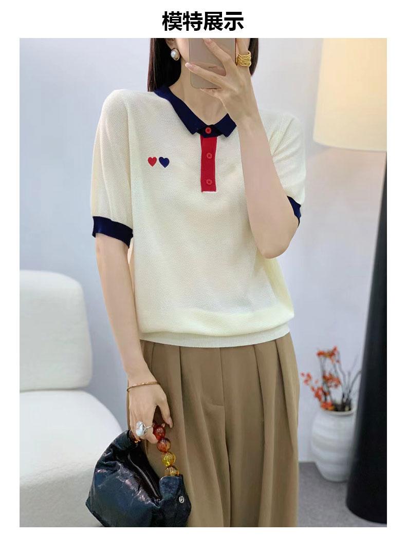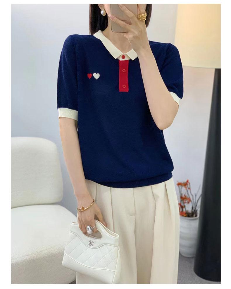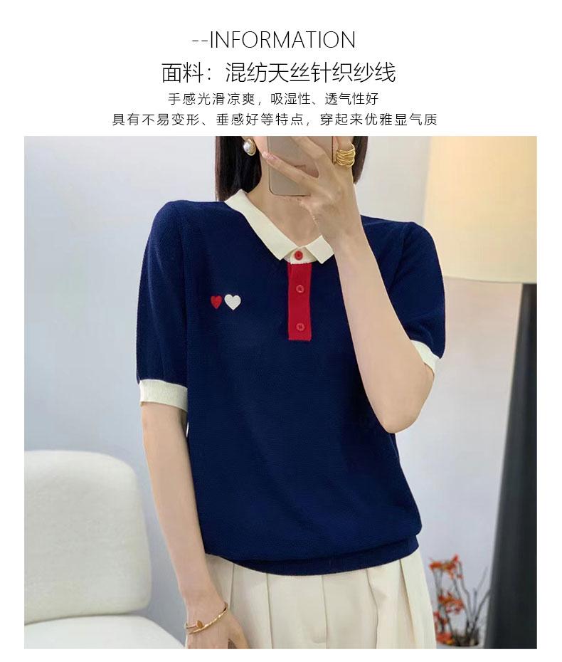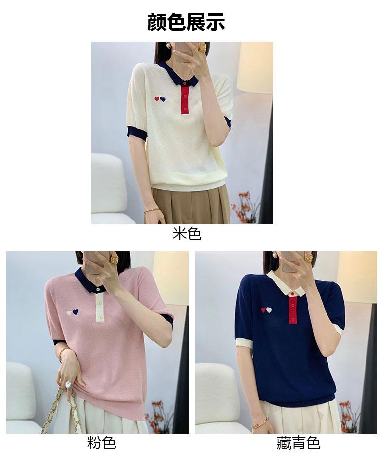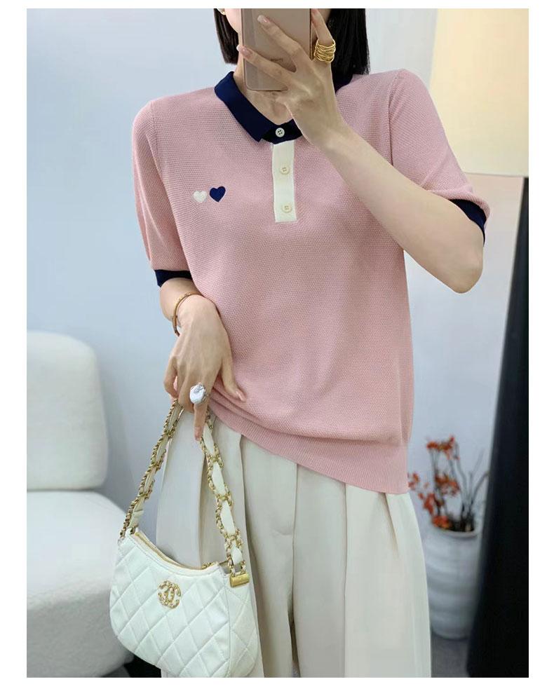 Playera de Manga Corta con Cuello Polo para Mujer Verano 2025 Nuevo Estilo Pequeño Corazón Bordado Fragancia Tejido de Tencel Top Delgado