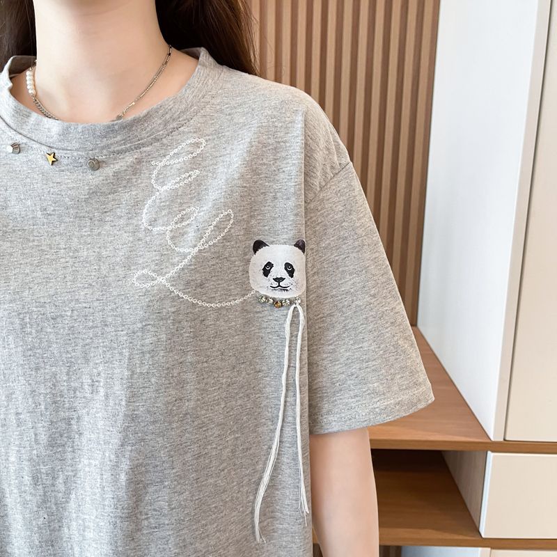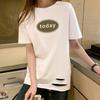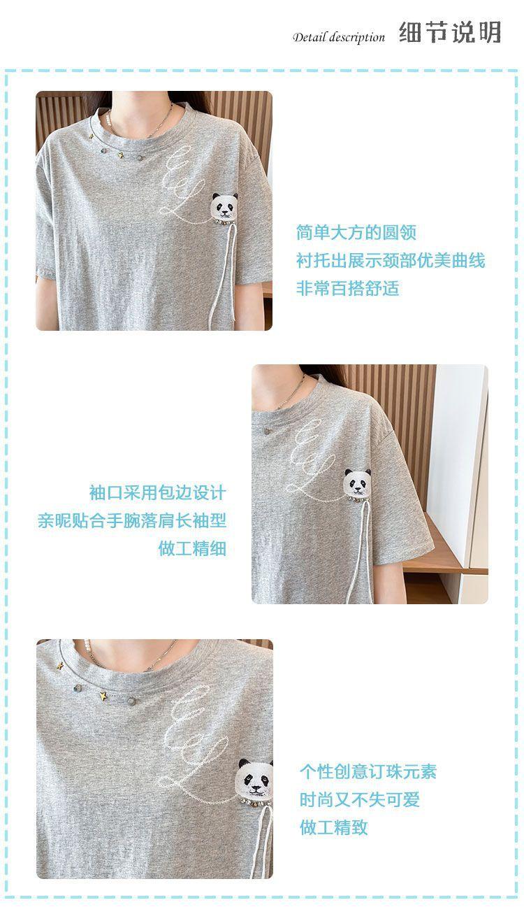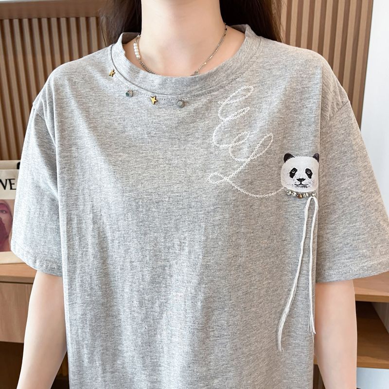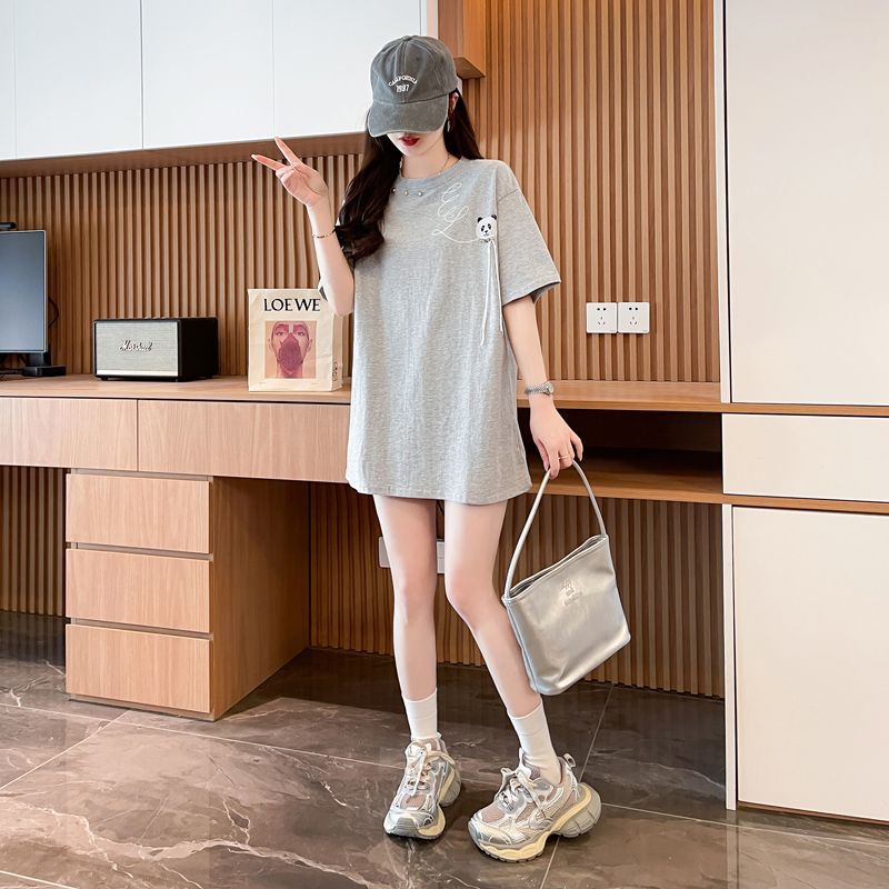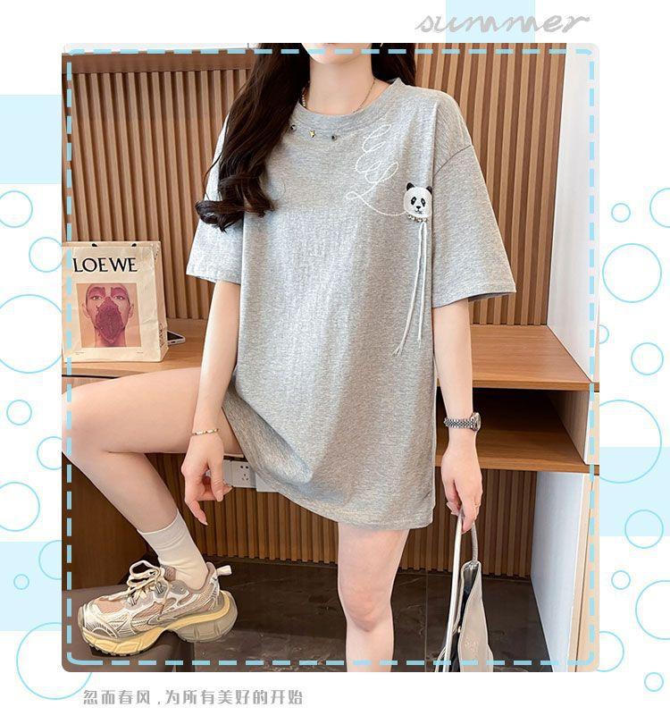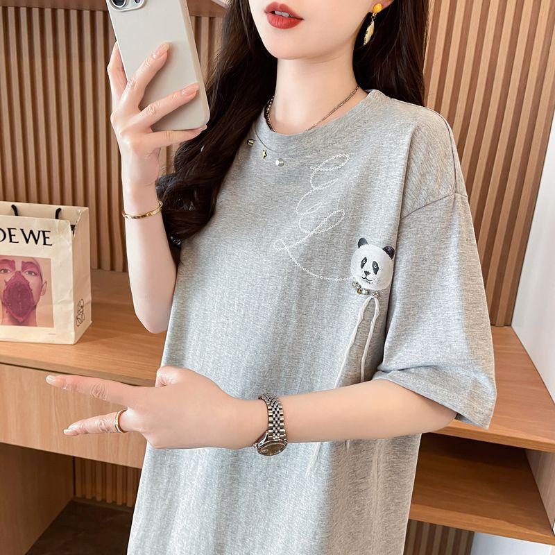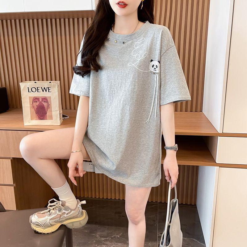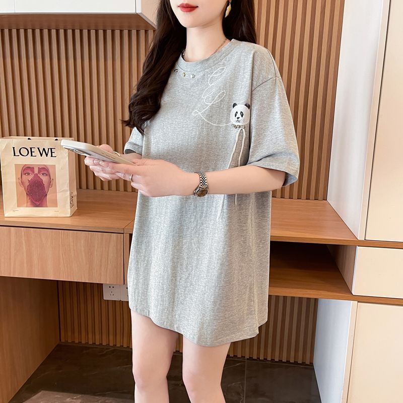 Playera de Algodón Puro de Manga Corta Estilo Harajuku para Mujer de Largo Medio Estilo Coreano Holgada Verano Nuevo Estilo Sencilla Versátil Top de Cuello Redondo Ins