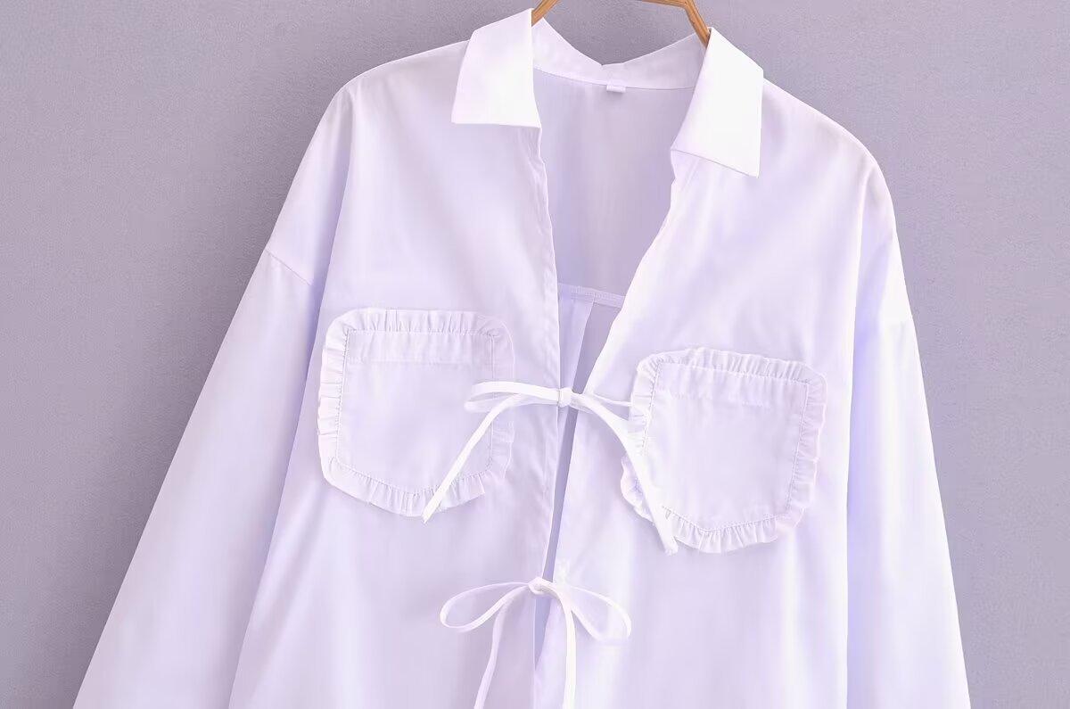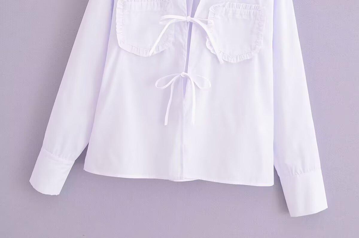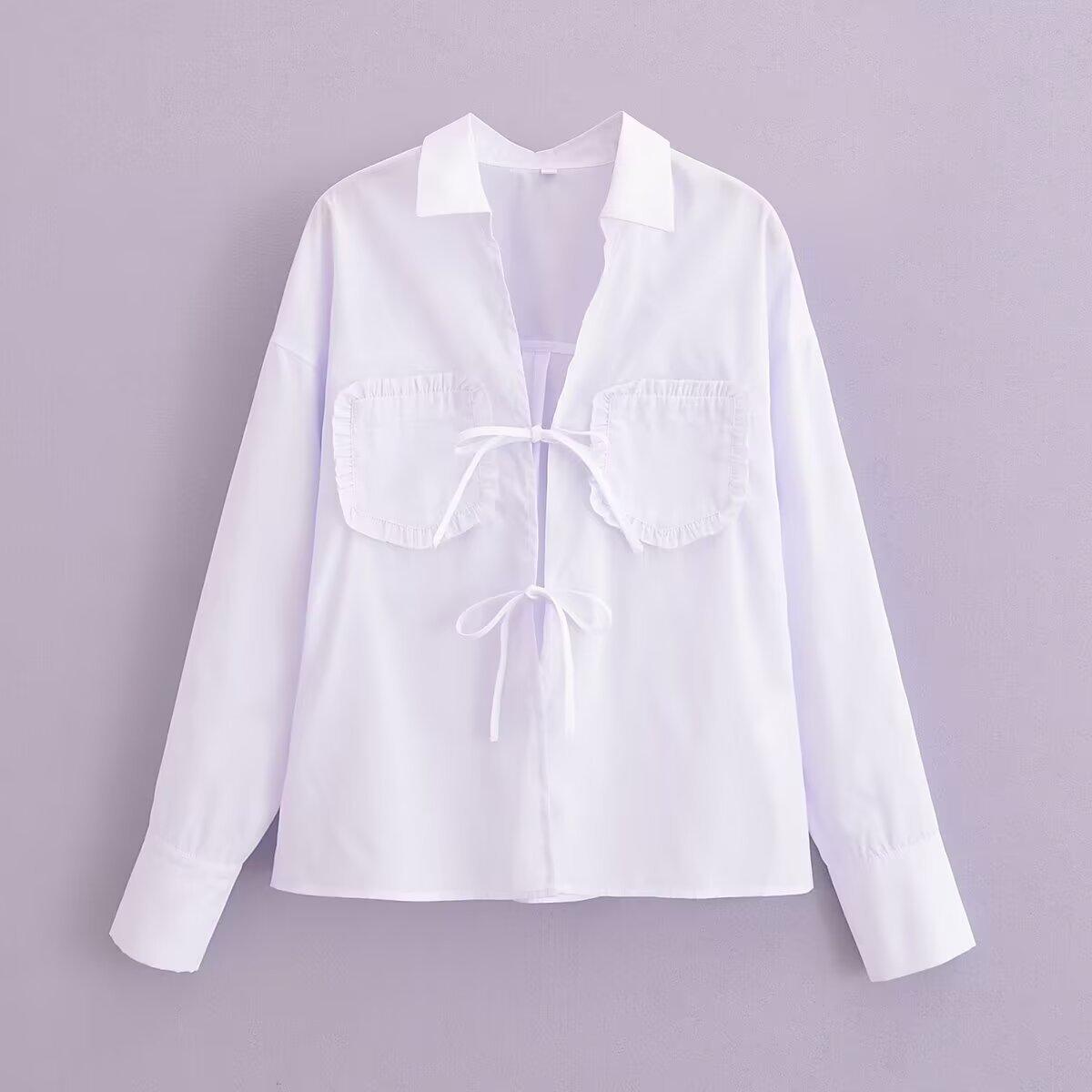 Exportación Transfronteriza Ropa de Mujer 2025 Verano Estilo Europeo y Americano Solapa Manga Larga Lazo Camisa de Color Puro para Mujer A26465