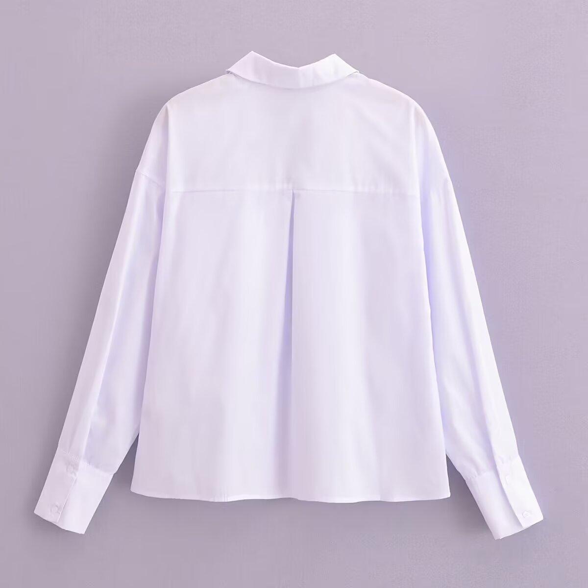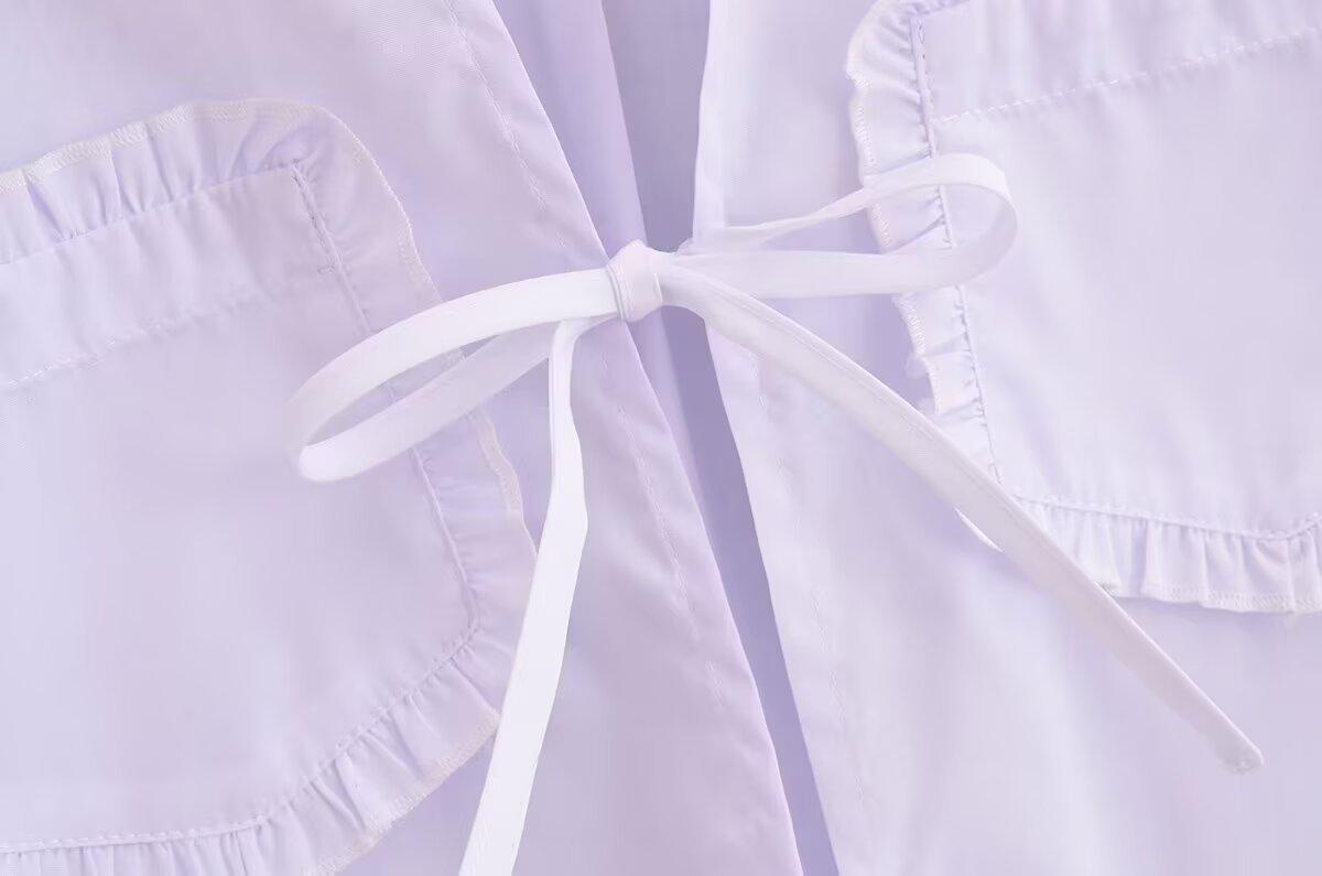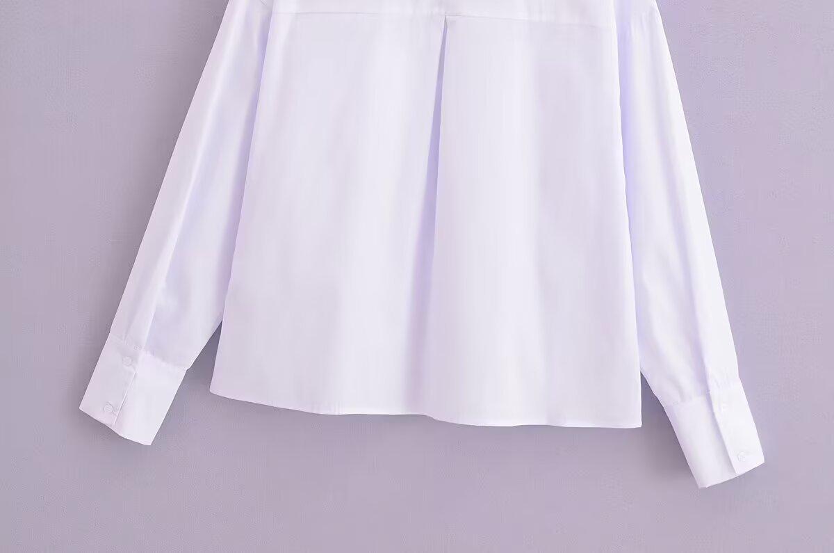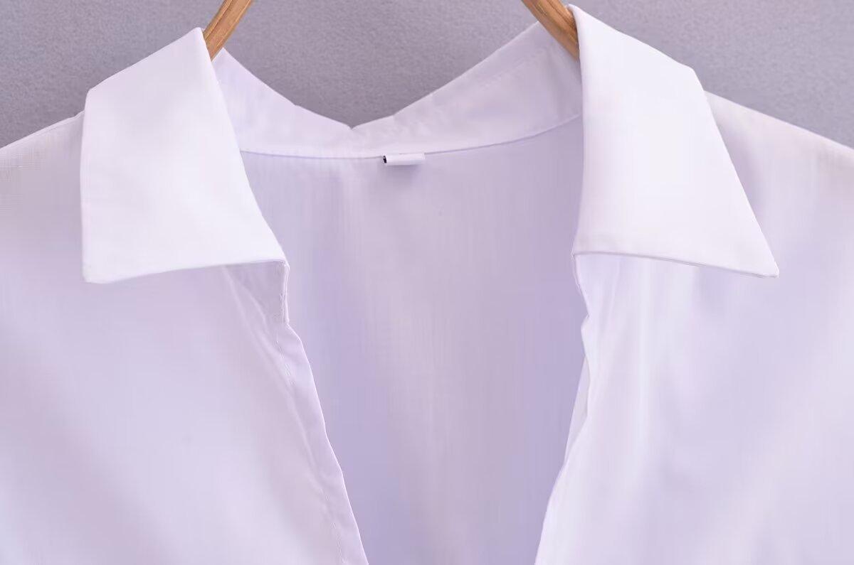 Exportación Transfronteriza Ropa de Mujer 2025 Verano Estilo Europeo y Americano Solapa Manga Larga Lazo Camisa de Color Puro para Mujer A26465