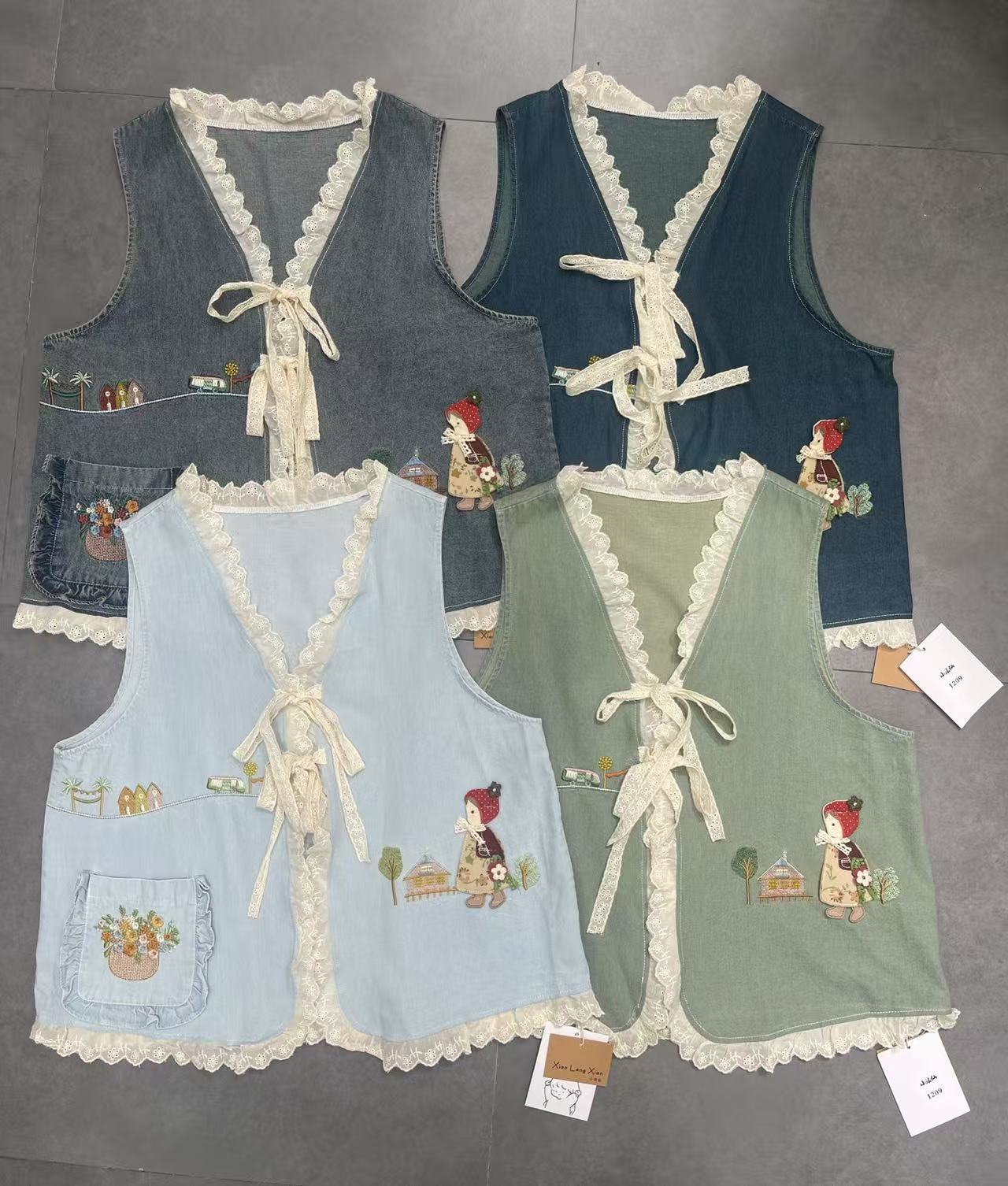 Otoño 2025 Bordado Infantil Chaleco Niña Estilo Mori Ropa Exterior Literario Fresco Dulce Holgado